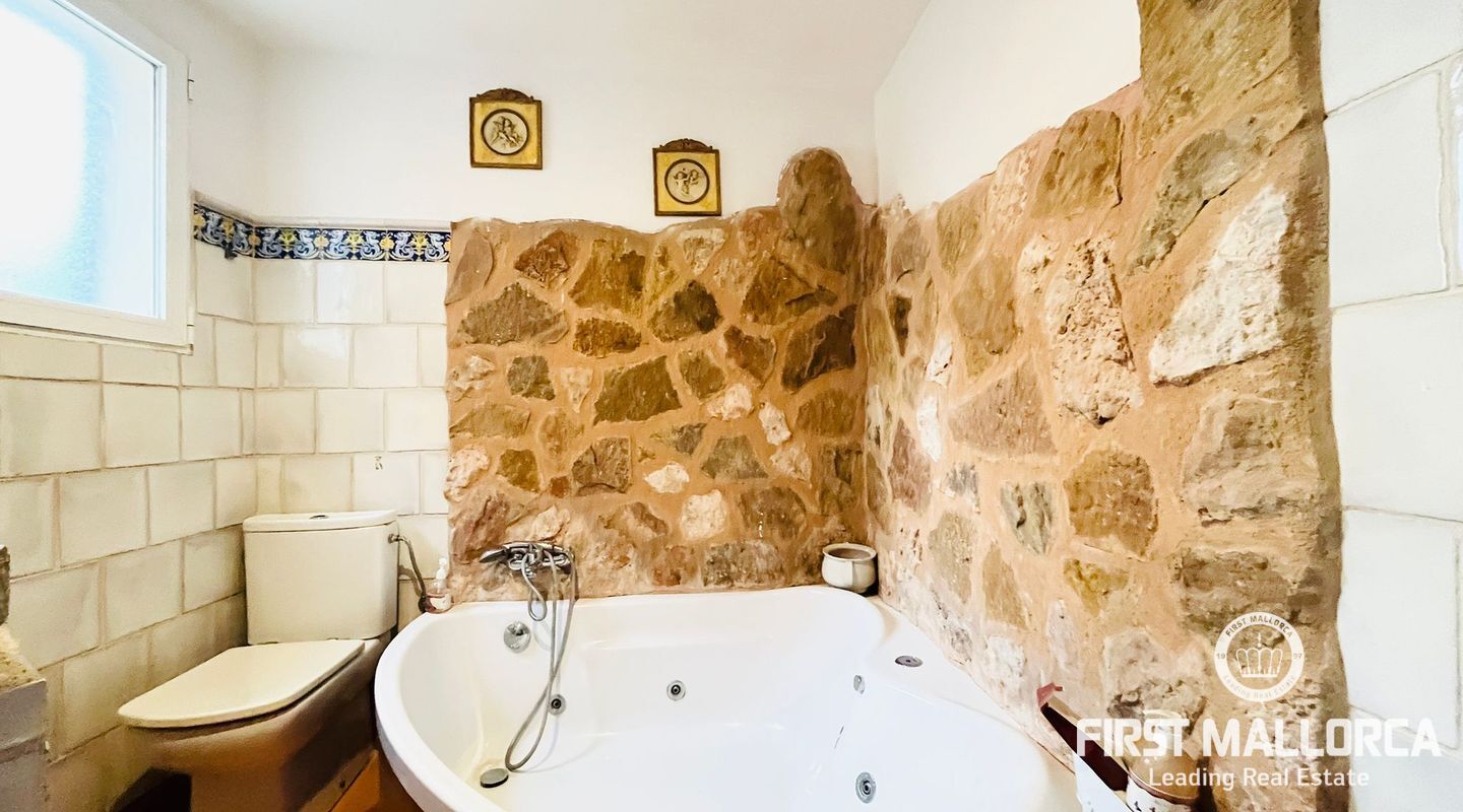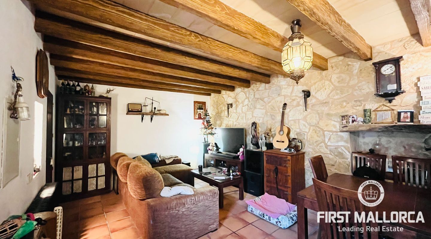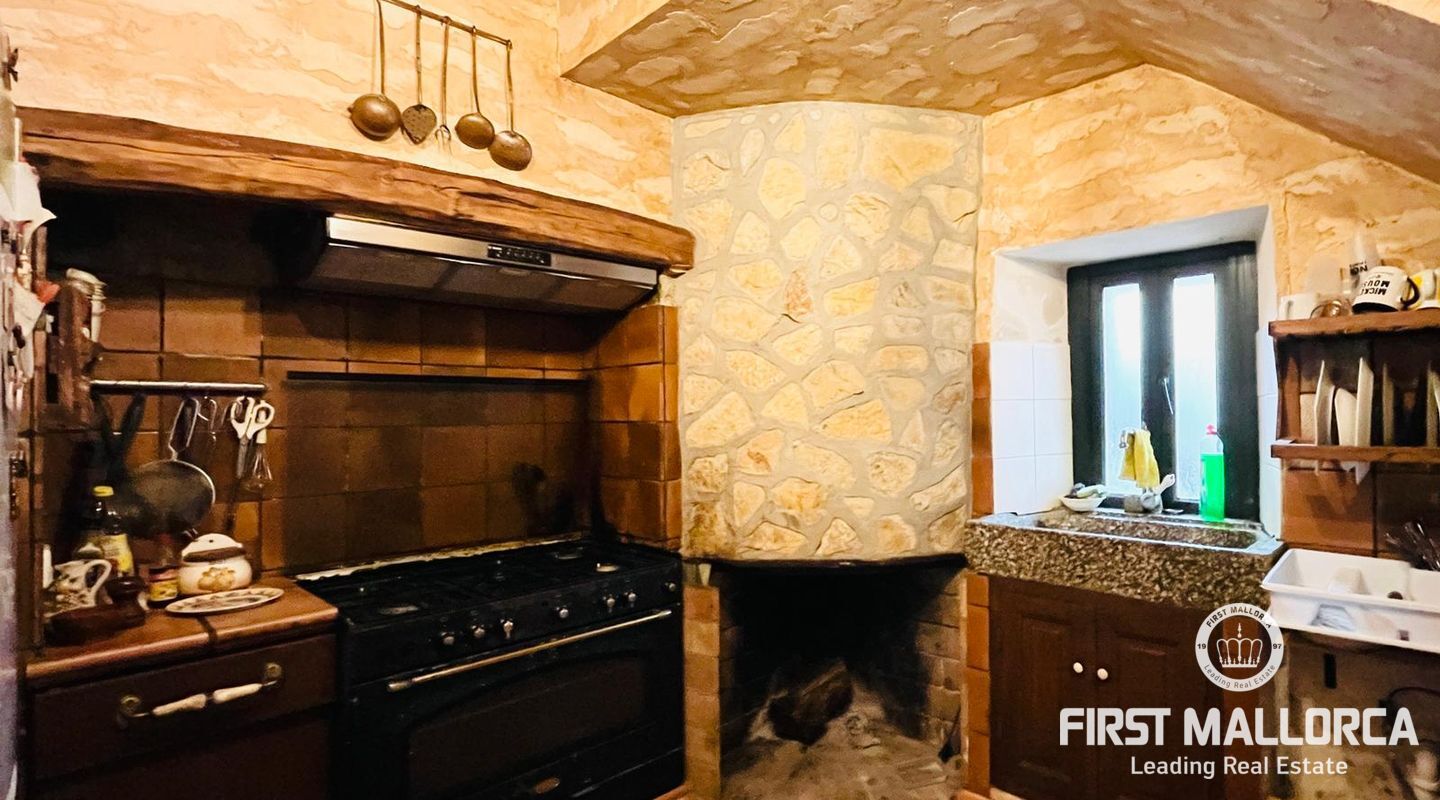 Pretty Mallorcan village house with the typical style elements which were preserved during the reform in 2004/2005, exposed beams, stone walls, fireplace in the kitchen, well for rain water. The house has a spacious living area from which you can reach the kitchen, there is room to open the kitchen to the living room. From the living area there is another room which could be used as a study and a full bathroom with bath. On the first floor there are two more bedrooms, one of which leads to a terrace and another bathroom with shower. From the first floor there is an internal staircase leading to the large roof terrace with panoramic views of the Tramuntana landscape.