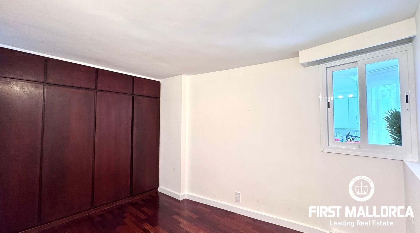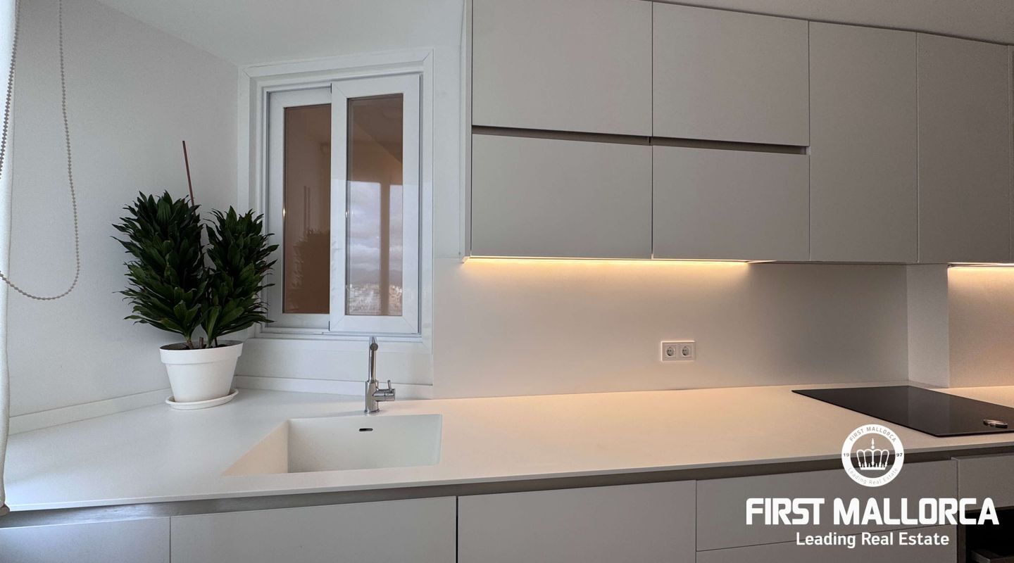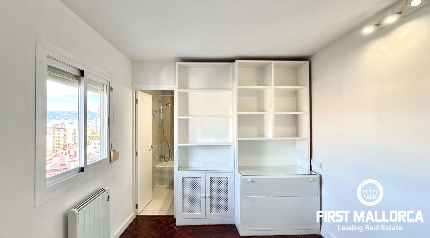 Con una cocina completamente nueva, el apartamento cuenta con dos dormitorios y dos baños, siendo el principal en suite. El segundo dormitorio, aunque compacto, ofrece unas hermosas vistas al Castillo de Bellver.