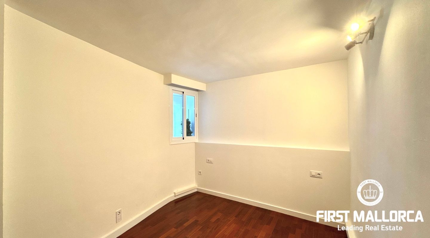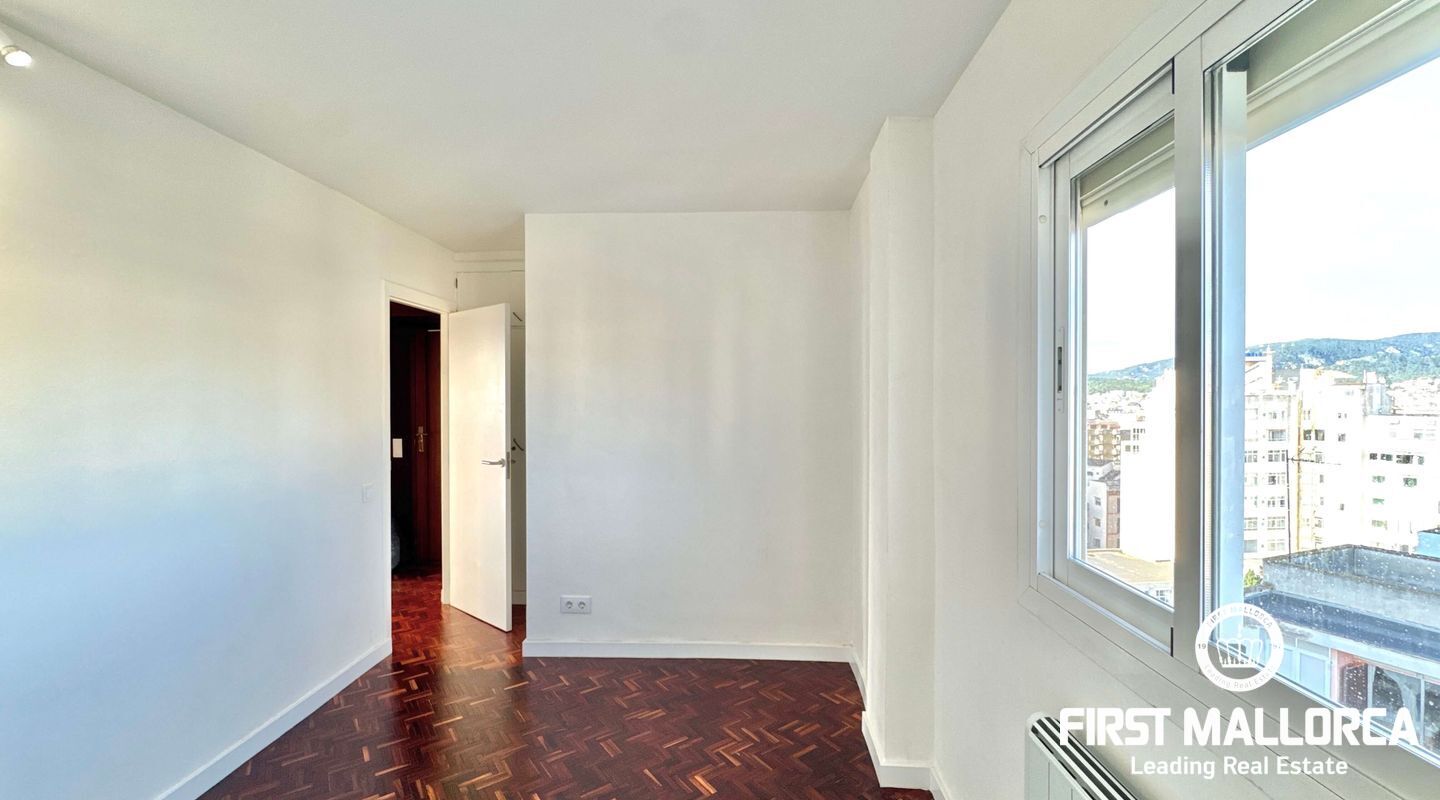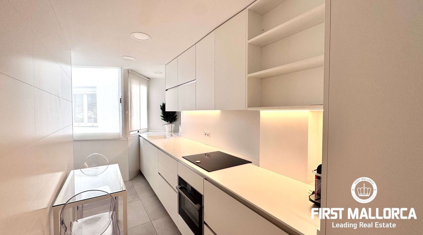 Con una cocina completamente nueva, el apartamento cuenta con dos dormitorios y dos baños, siendo el principal en suite. El segundo dormitorio, aunque compacto, ofrece unas hermosas vistas al Castillo de Bellver.