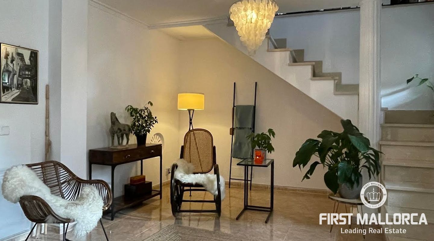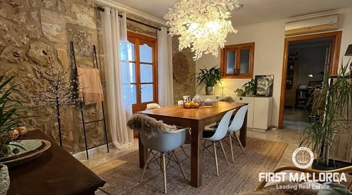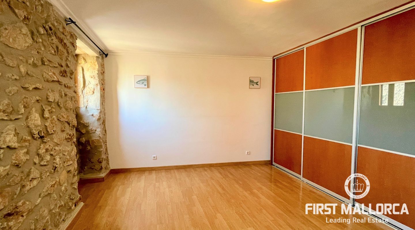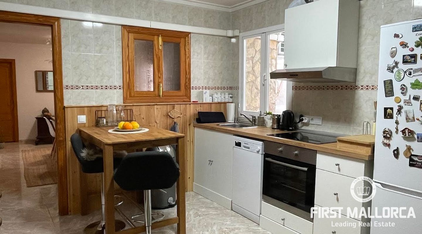 Esta casa de pueblo abierta y espaciosa, situada cerca de la Plaza Mayor y del ayuntamiento de Pollença, destaca por sus auténticas características originales, como su interior de piedra y sus vigas de madera. El local, que tiene una superficie total construida de 300m2, se distribuye entre 5 dormitorios y 2 baños. Complementado por una cocina equipada y un acogedor salón con chimenea, crea el escenario ideal para disfrutar de las noches con la familia y los amigos. Este hermoso adosado también ofrece 20m2 de terraza para pasar las encantadoras tardes mallorquinas, así como un garaje con espacio para dos coches. Proporcionando una oportunidad deseable para vivir en el corazón de Pollença, donde se puede disfrutar de pintorescas callejuelas y una gran selección de restaurantes y cafés. Además de estar rodeado de historia y cultura, esta perfecta ubicación también garantiza el acceso a todas las comodidades y servicios esenciales. La casa se alquila sin muebles, pero hay algunos muebles que se pueden comprar a los antiguos inquilinos. No dude en contactar con nuestro equipo de FIRST MALLORCA para obtener más información y concertar una visita.