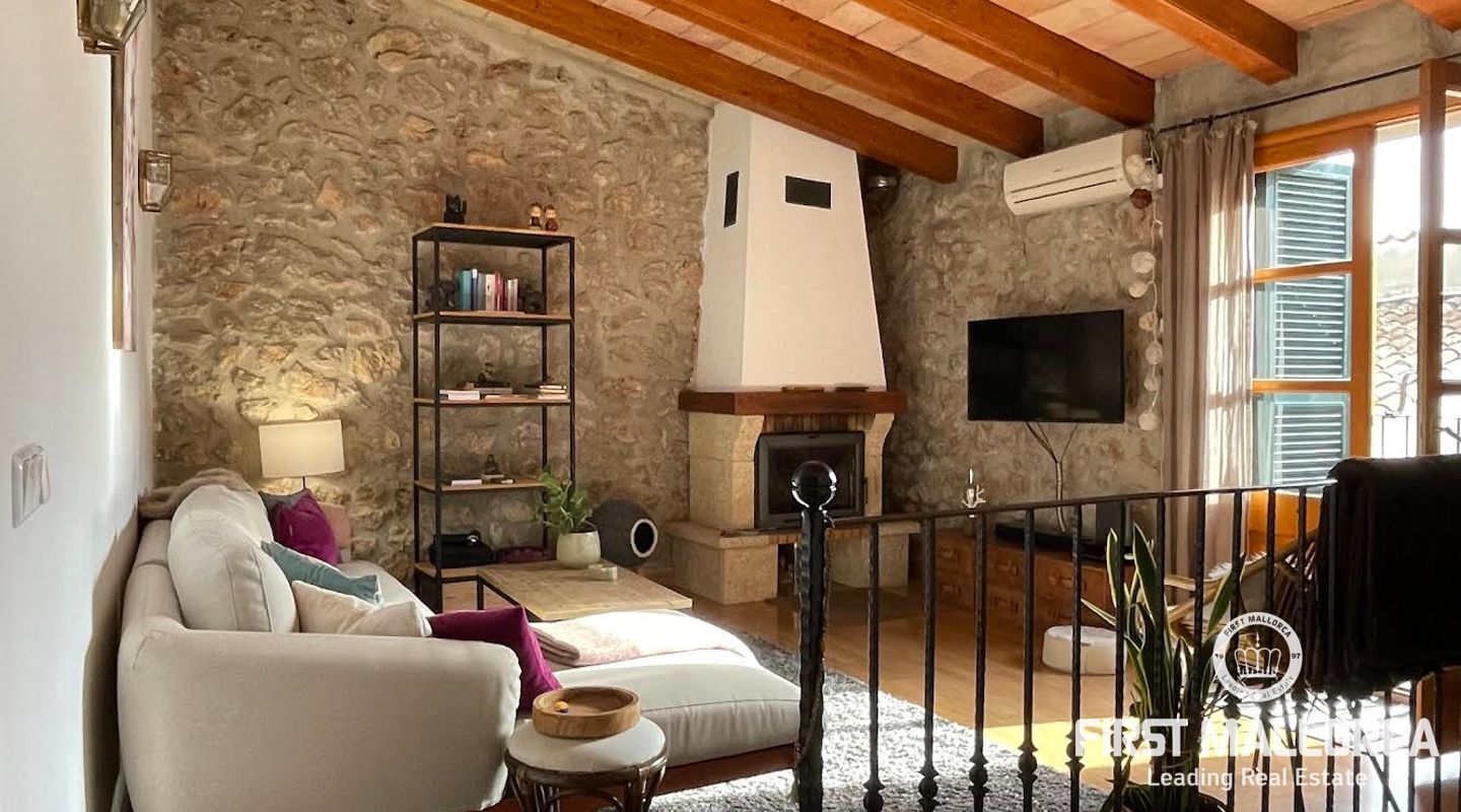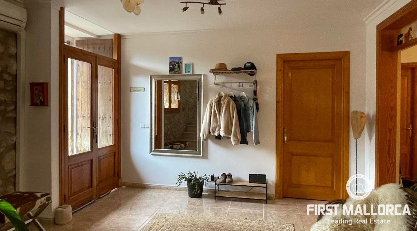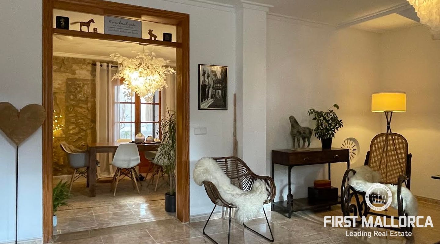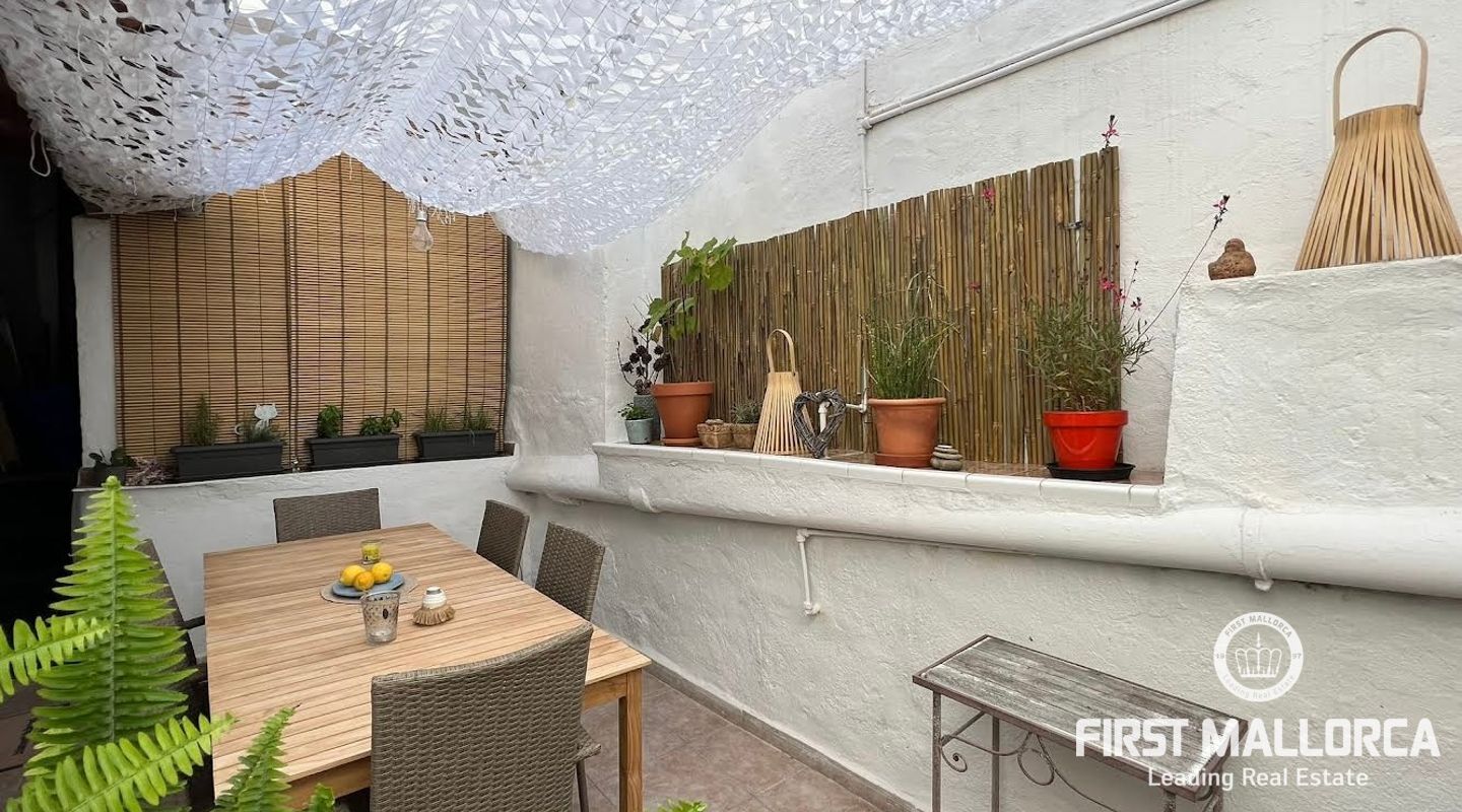 Esta casa de pueblo abierta y espaciosa, situada cerca de la Plaza Mayor y del ayuntamiento de Pollença, destaca por sus auténticas características originales, como su interior de piedra y sus vigas de madera. El local, que tiene una superficie total construida de 300m2, se distribuye entre 5 dormitorios y 2 baños. Complementado por una cocina equipada y un acogedor salón con chimenea, crea el escenario ideal para disfrutar de las noches con la familia y los amigos. Este hermoso adosado también ofrece 20m2 de terraza para pasar las encantadoras tardes mallorquinas, así como un garaje con espacio para dos coches. Proporcionando una oportunidad deseable para vivir en el corazón de Pollença, donde se puede disfrutar de pintorescas callejuelas y una gran selección de restaurantes y cafés. Además de estar rodeado de historia y cultura, esta perfecta ubicación también garantiza el acceso a todas las comodidades y servicios esenciales. La casa se alquila sin muebles, pero hay algunos muebles que se pueden comprar a los antiguos inquilinos. No dude en contactar con nuestro equipo de FIRST MALLORCA para obtener más información y concertar una visita.