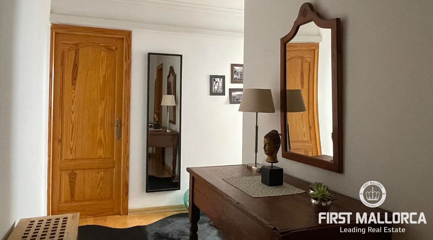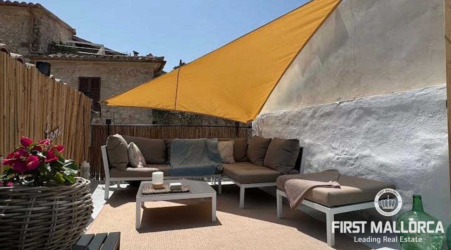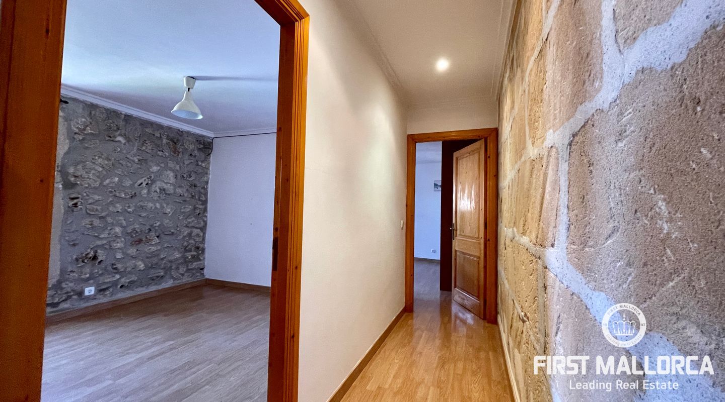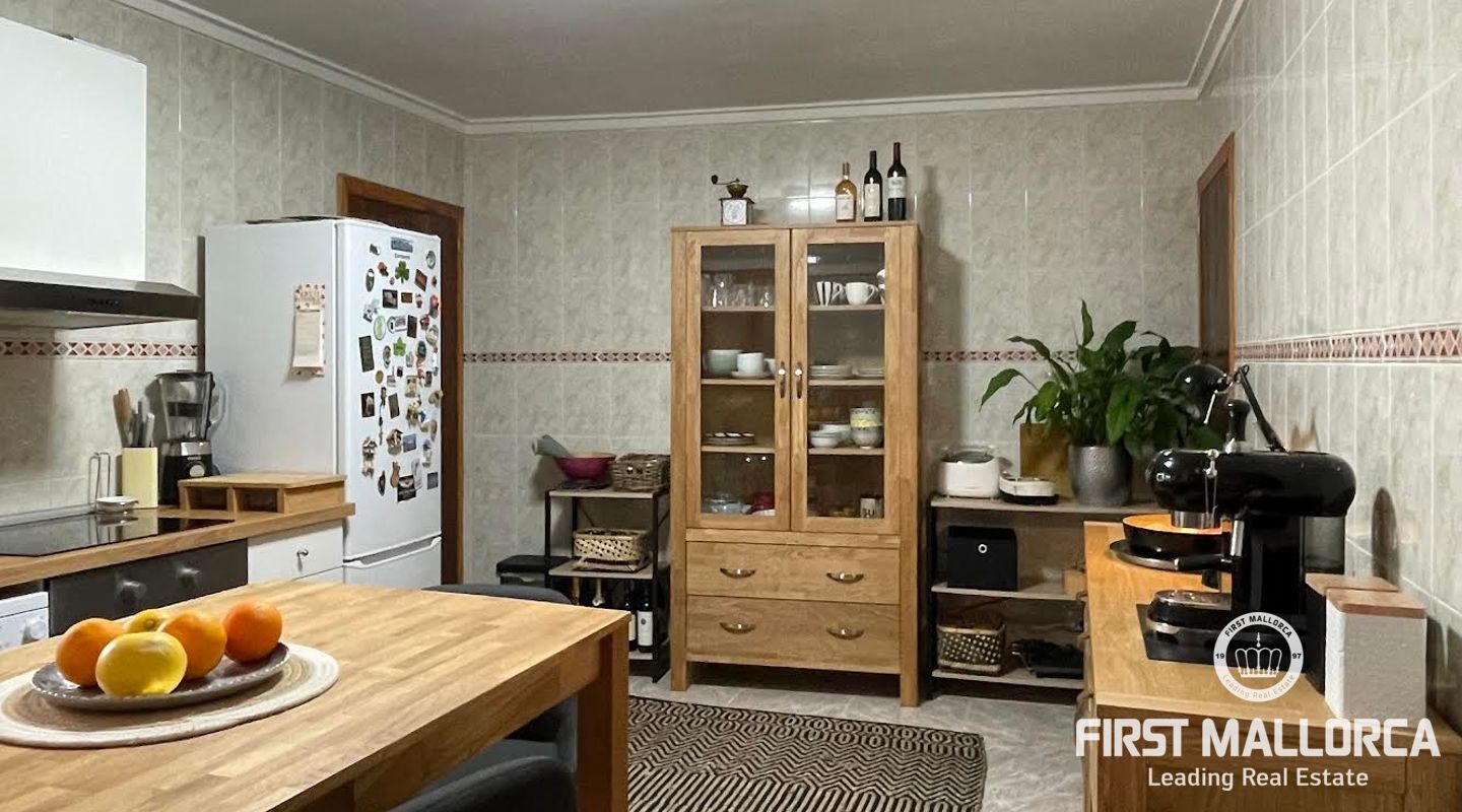 Esta casa de pueblo abierta y espaciosa, situada cerca de la Plaza Mayor y del ayuntamiento de Pollença, destaca por sus auténticas características originales, como su interior de piedra y sus vigas de madera. El local, que tiene una superficie total construida de 300m2, se distribuye entre 5 dormitorios y 2 baños. Complementado por una cocina equipada y un acogedor salón con chimenea, crea el escenario ideal para disfrutar de las noches con la familia y los amigos. Este hermoso adosado también ofrece 20m2 de terraza para pasar las encantadoras tardes mallorquinas, así como un garaje con espacio para dos coches. Proporcionando una oportunidad deseable para vivir en el corazón de Pollença, donde se puede disfrutar de pintorescas callejuelas y una gran selección de restaurantes y cafés. Además de estar rodeado de historia y cultura, esta perfecta ubicación también garantiza el acceso a todas las comodidades y servicios esenciales. La casa se alquila sin muebles, pero hay algunos muebles que se pueden comprar a los antiguos inquilinos. No dude en contactar con nuestro equipo de FIRST MALLORCA para obtener más información y concertar una visita.