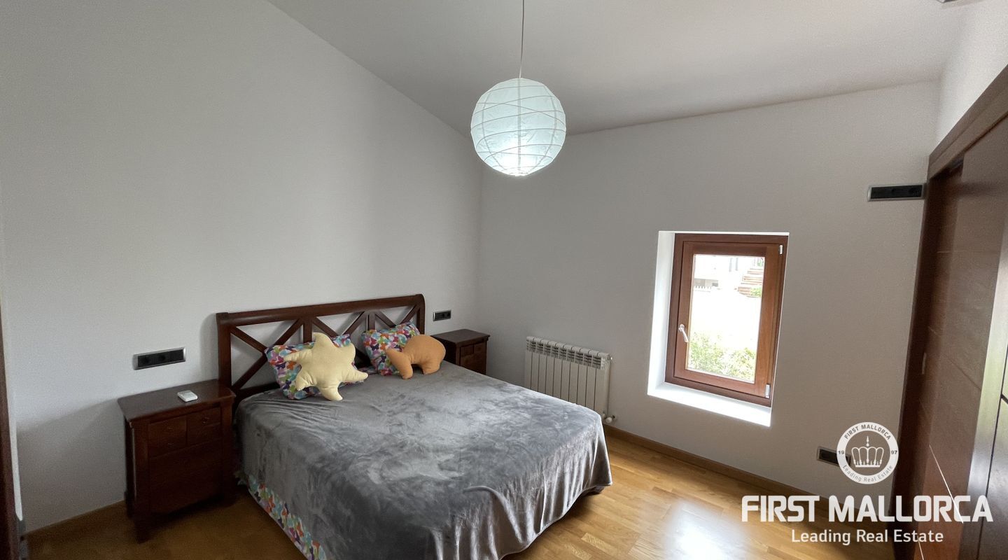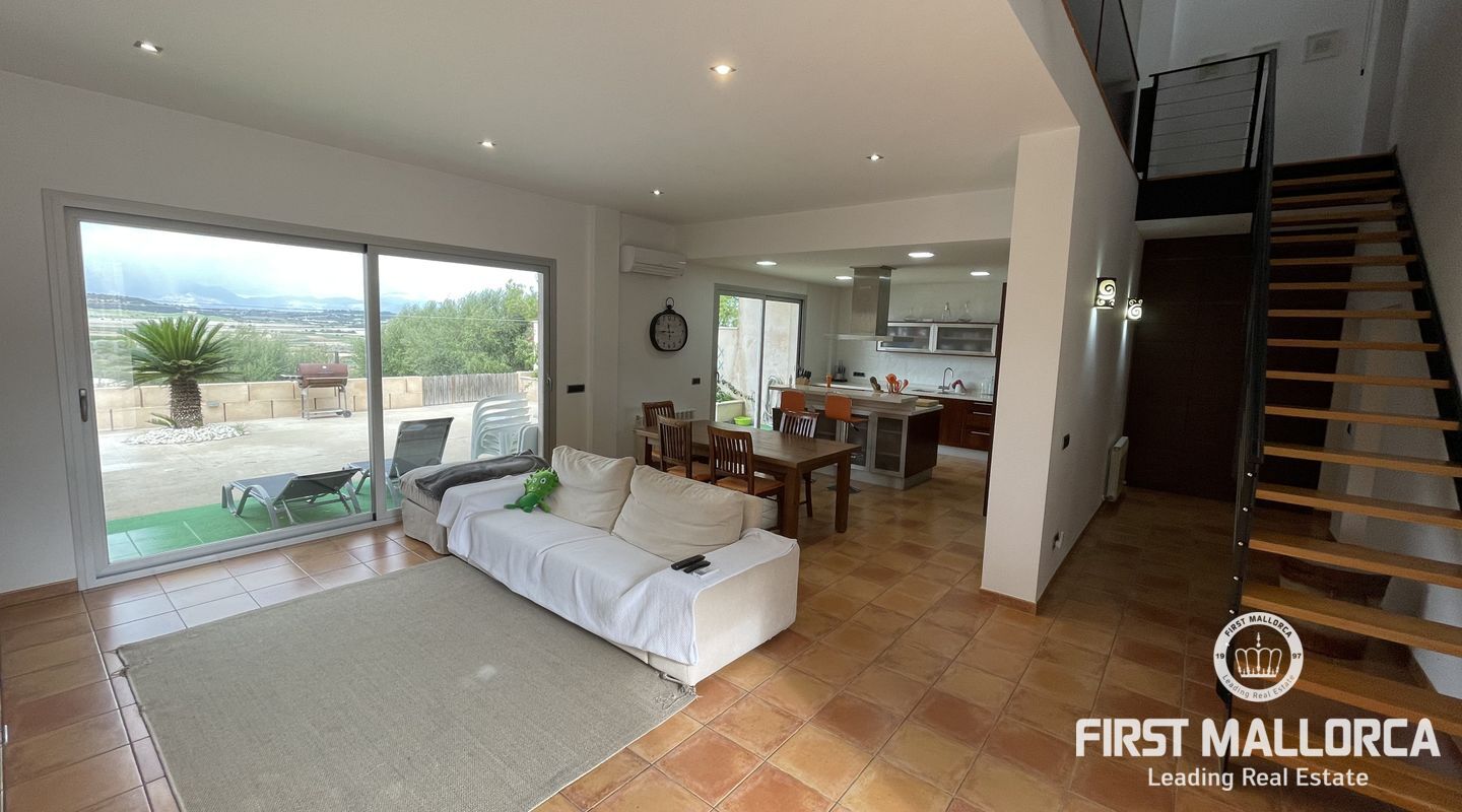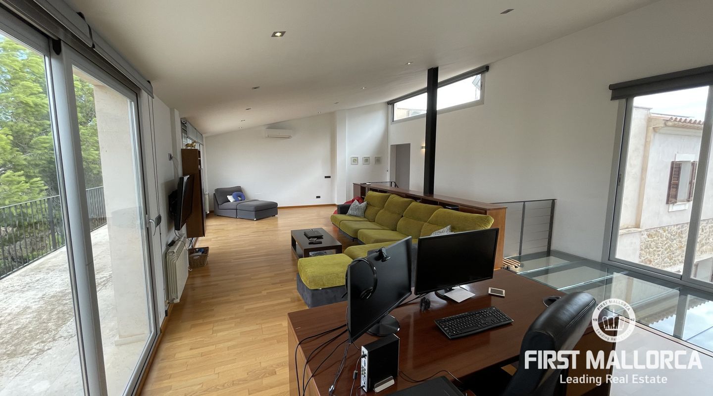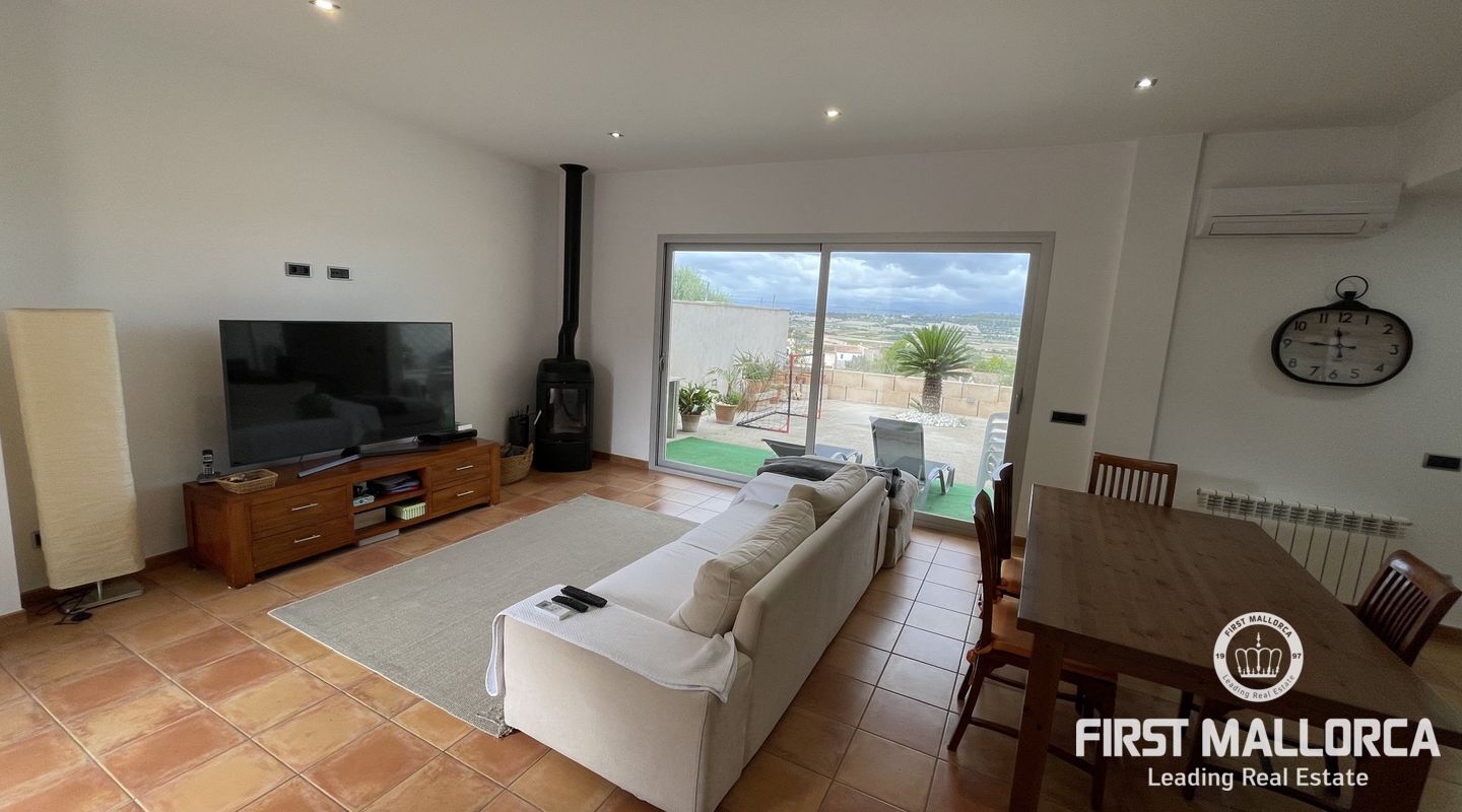 Al entrar le recibe un amplio y luminoso salón con cocina de concepto abierto e isla con zona de cocción por inducción, todo ello con vistas a las montañas del interior de Mallorca.