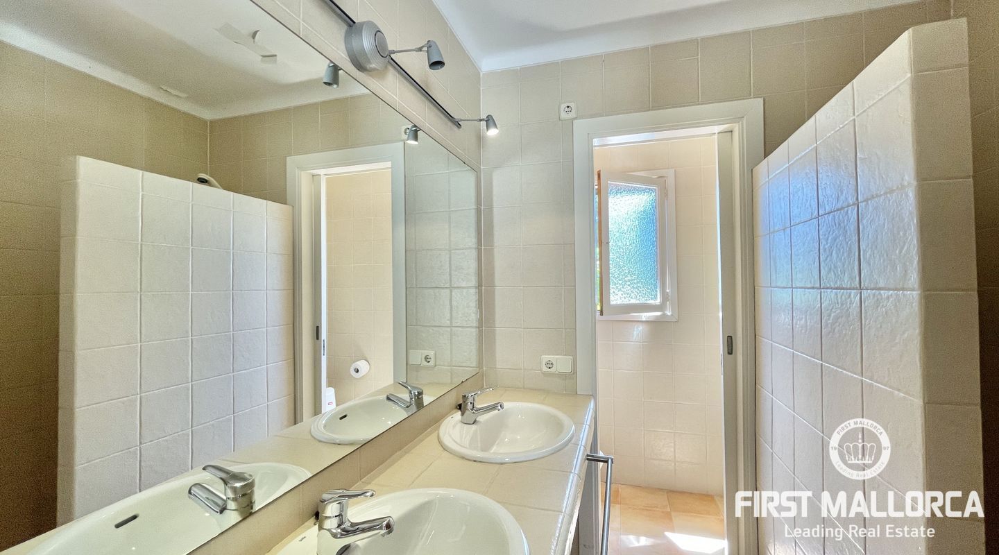 Consta de un total de seis habitaciones, de la las cuáles una de ellas está en la parte superior de la casa, totalmente independiente con un baño en suite y dos terrazas. En planta inferior, donde encontramos el salón comedor, se puede salir directamente al jardín privado con piscina. Zona inmejorable para pasar el invierno en Mallorca y escapar del frio y la lluvia del norte. Se puede aparcar directamente delante de la propiedad. Además de mucho sitio para estacionar en los alrededores.