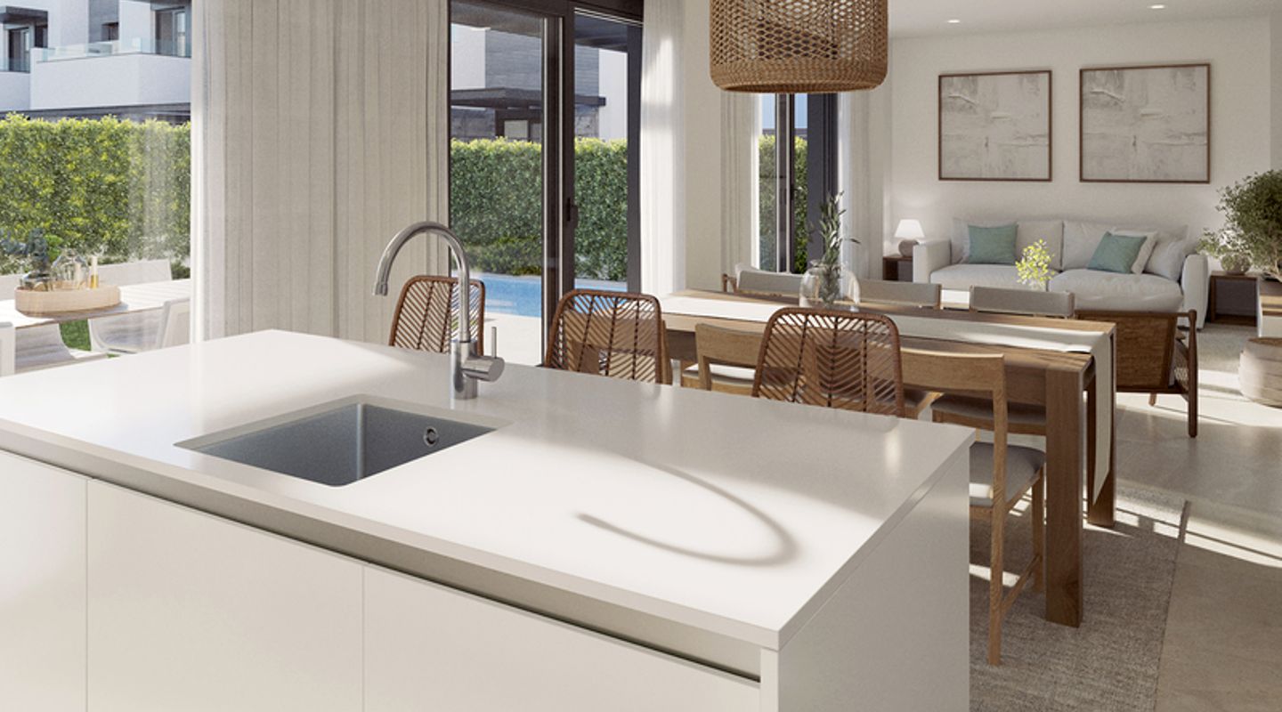 La arquitectura de tu nueva casa está cuidada al detalle para conjugar la máxima funcionalidad con el más exquisito diseño. Interior y exterior establecen un ‘diálogo’ en el que cobra un gran protagonismo la luz natural y la integración de las zonas verdes en las estancias principales.