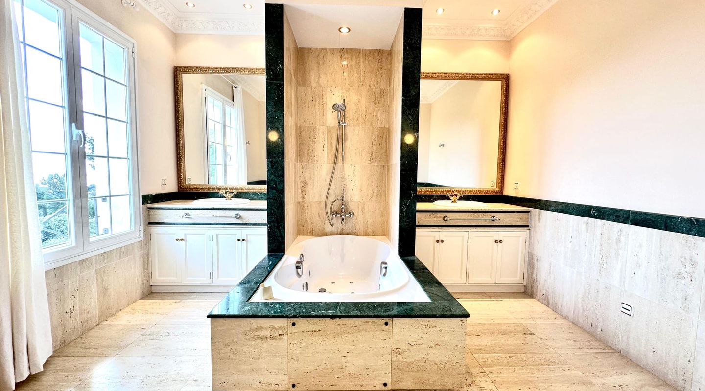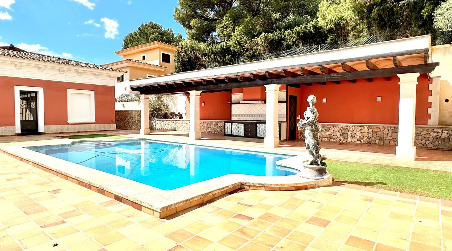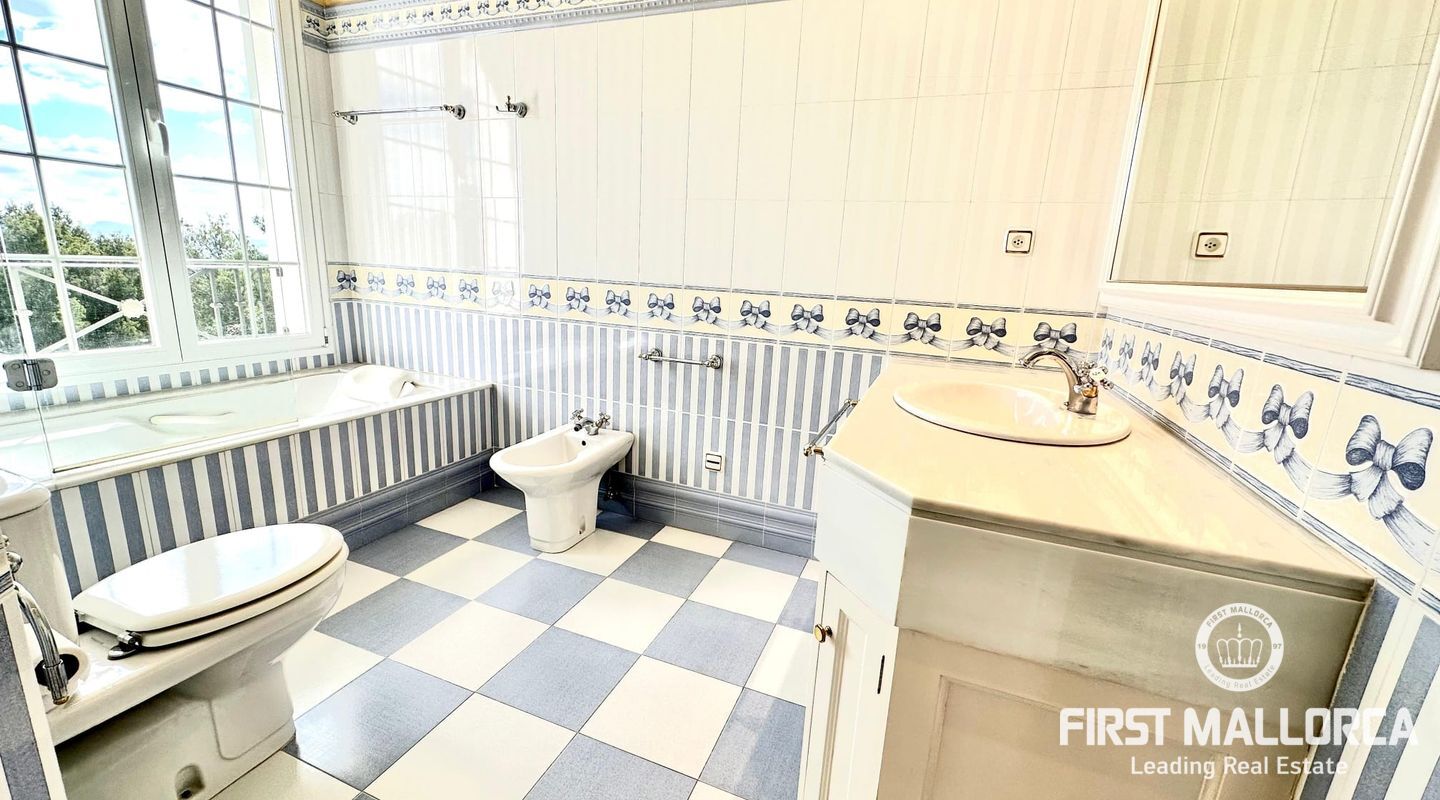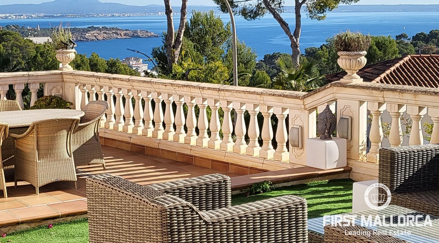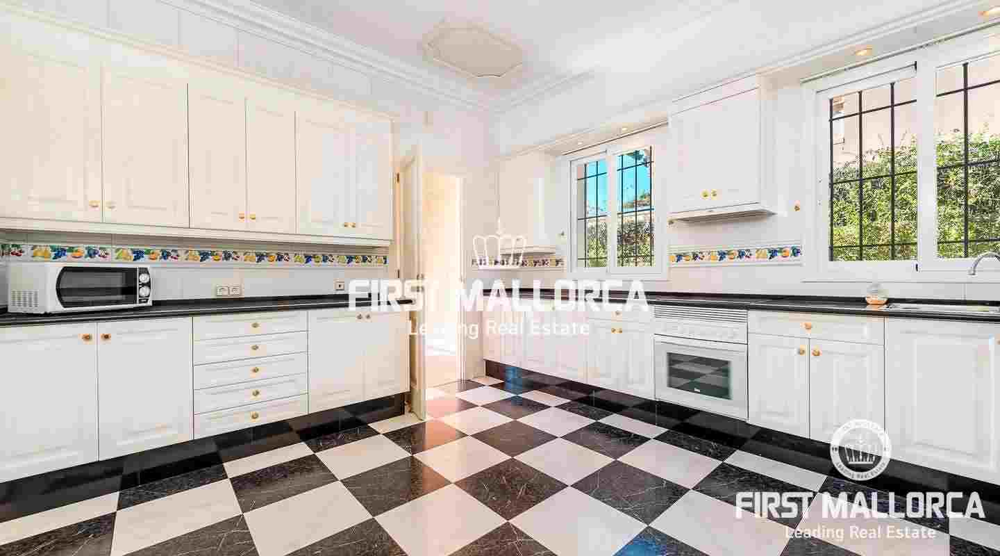 Esta espaciosa villa con un solar de 1.800 m² está situada en la prestigiosa zona de Bendinat al suroeste de la isla y dispone de 5 dormitorios y 4 baños, de los cuales 3 son en suite. Además, la villa tiene 2 grandes terrazas con vistas parciales al mar: una gran terraza con salida directa del salón y orientación sur, y otra con piscina y cocina exterior. La propiedad se encuentra en condiciones excepcionales y consta también de un garaje para 2 coches, calefacción central de gasoil, aire acondicionado, suelos de mármol, persianas automáticas, coladuría y sistema de alarma.