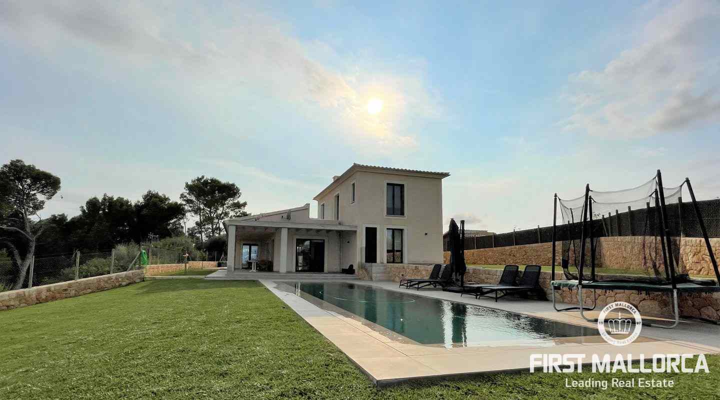 Esta impresionante casa de campo se encuentra en Muro, en el norte de la isla de Mallorca. En una parcela de aproximadamente 60.000 metros cuadrados en una posición elevada, ofrece fabulosas vistas del paisaje circundante. Un total de tres dormitorios, cuatro baños y un amplio y luminoso salón con cocina contigua y comedor integrado completan la oferta de espacio. Los materiales de alta calidad y el lujoso mobiliario no dejan nada que desear. Los ventanales del suelo al techo y un diseño luminoso proporcionan suficiente luz. La zona exterior ofrece una vista fabulosa, así como espacio suficiente para disfrutar del sol durante todo el día. La gran piscina proporciona la refrigeración necesaria. El aire acondicionado f/c y un garaje subterráneo privado también forman parte del equipamiento. El pueblo de Muro y la popular playa de arena de Playas de Muro están a sólo unos minutos en coche. Así como las instalaciones comerciales y todas las demás instalaciones para las necesidades diarias. No dude en ponerse en contacto con nuestro equipo de FIRST MALLORCA para obtener más información y una cita de visualización