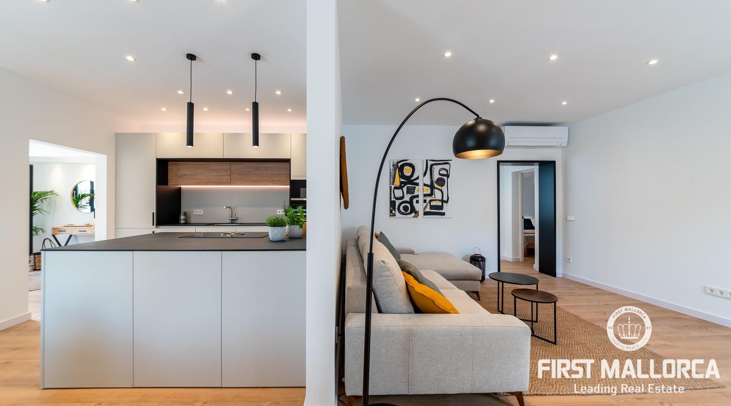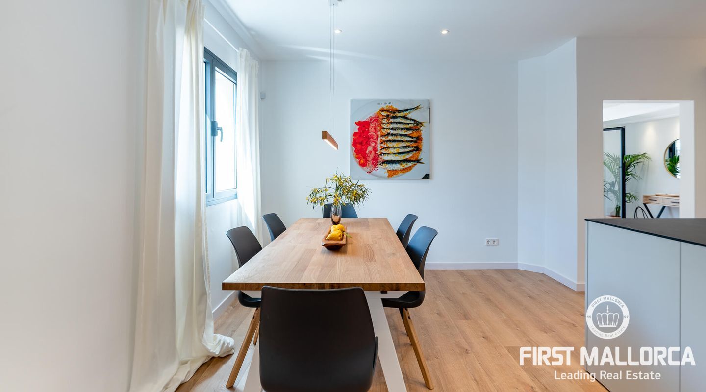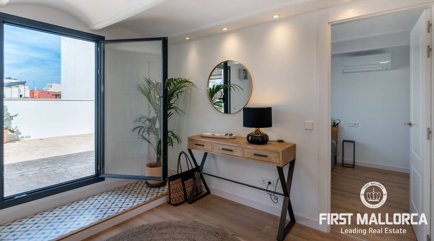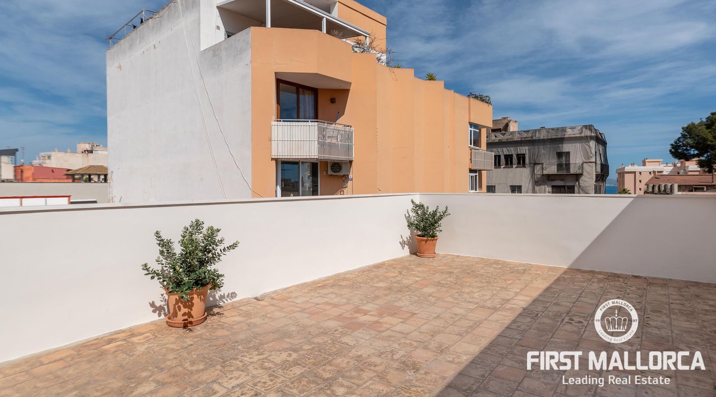 Este ático a estrenar, situado en una calle muy tranquila de El Terreno, acaba de ser completamente reformado. Está distribuido en 3 dormitorios y 3 baños (2 de ellos en Suite), una gran cocina abierta con isla, comedor y sala. La terraza privada está al mismo nivel y tiene una de chill out cubierta para disfrutar del buen tiempo de Mallorca. Pertenece a una pequeña comunidad de tan sólo 4 vecinos en total. Si está buscando una propeidad en El Terreno es una visita obligatoria.