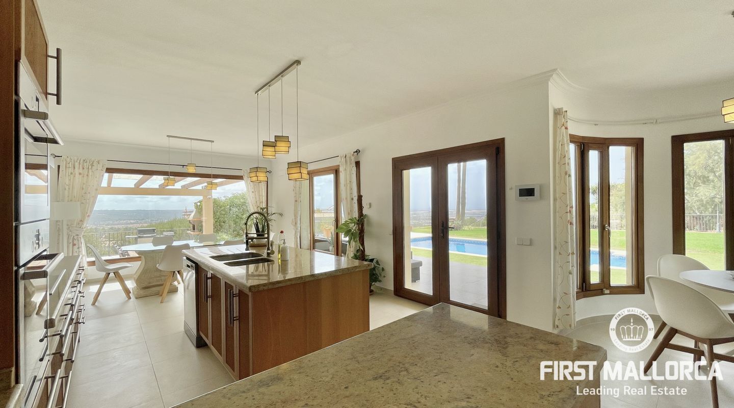 El exterior de la finca es un auténtico paraíso. Rodeado de numerosas palmeras y plantas mediterráneas, ofrece una sensación de vacaciones constante. La amplia piscina es perfecta para el relax, y múltiples zonas de terraza se distribuyen por toda la propiedad, permitiendo a cada uno encontrar su propio rincón de paraíso. Puntiró es una zona de villas atractiva en el interior de la isla y forma parte del municipio de Marratxí. Gracias a su excelente conexión con Palma, esta propiedad es ideal para corta estancia, garantizando tranquilidad, privacidad y unas vistas de ensueño.