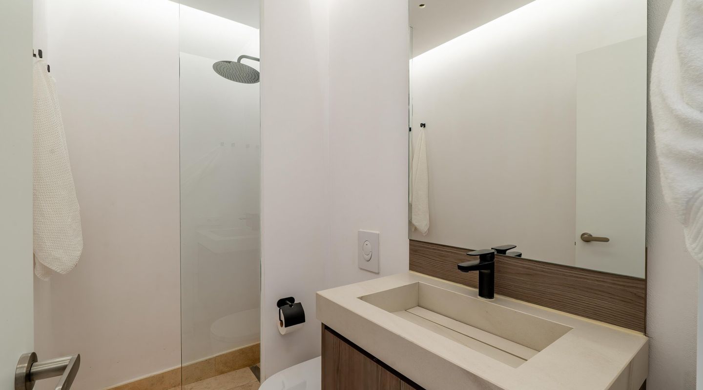 La propiedad ha sido totalmente renovada y tiene la siguiente distribución: un vestíbulo de entrada, salón-comedor con puertas a la soleada terraza, cocina de diseño con barra americana, 2 dormitorios y 2 baños, uno de ellos en suite. Otras características incluyen: aire acondicionado frío y calor, persianas, doble acristalamiento, 2 televisores montados en la pared, suelos de piedra, armarios empotrados y una plaza de aparcamiento.