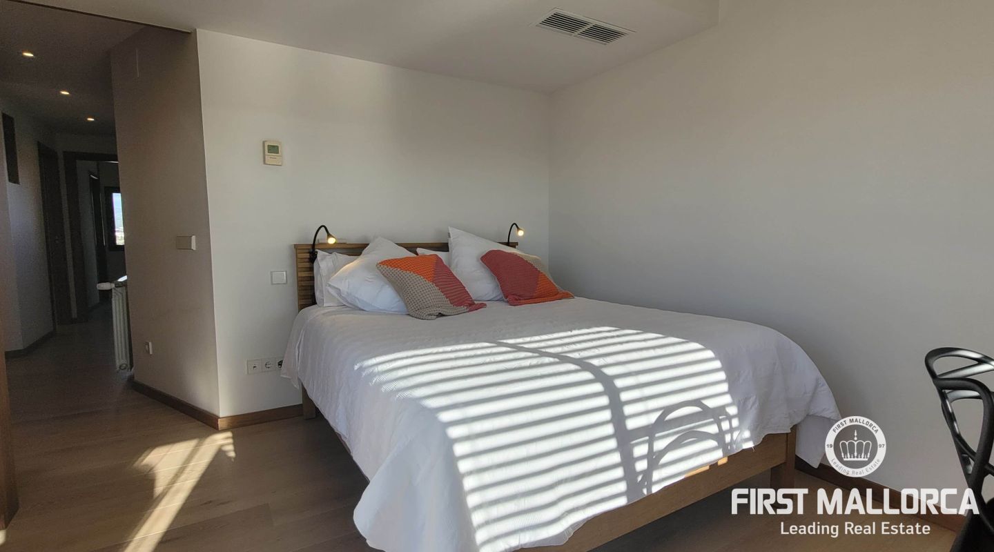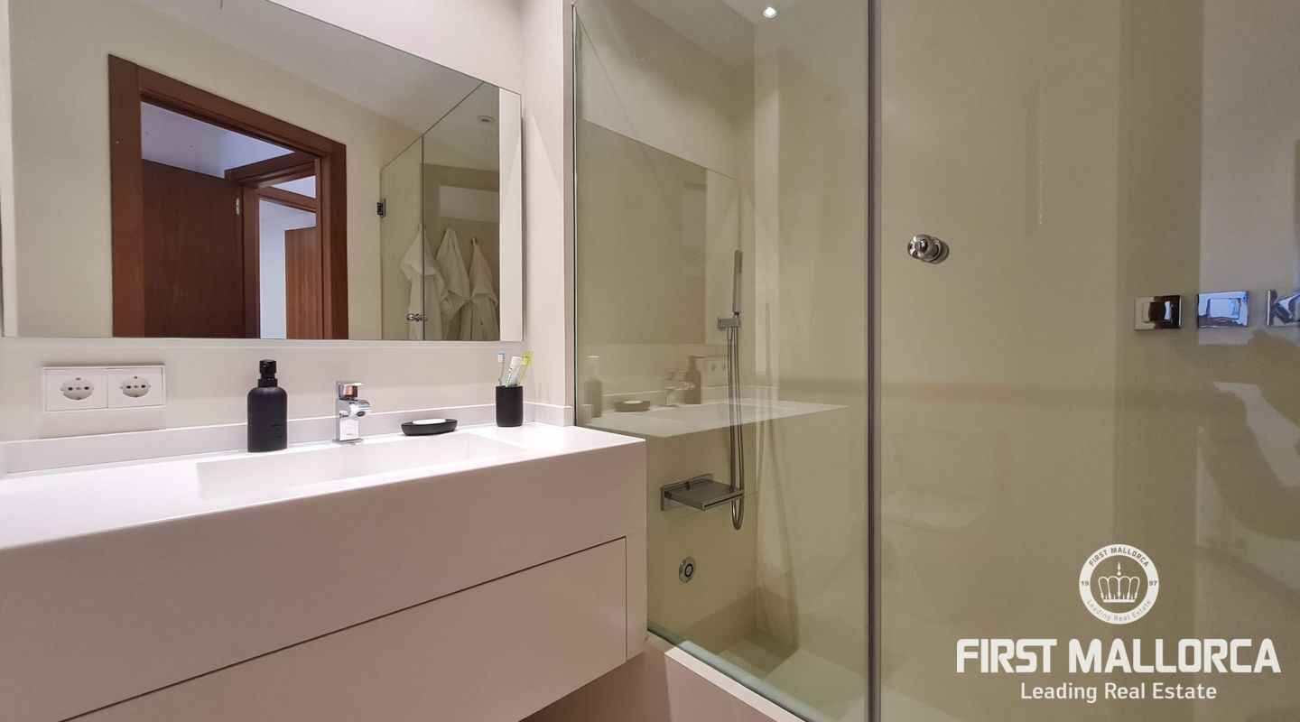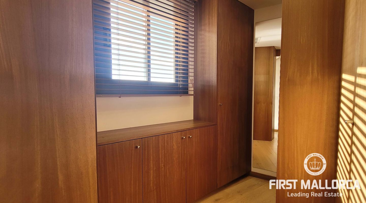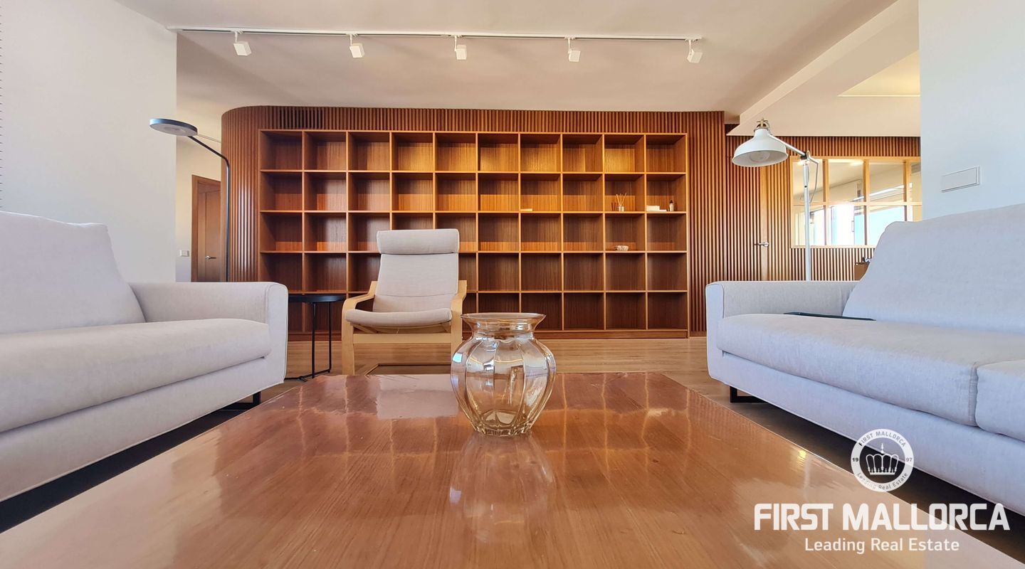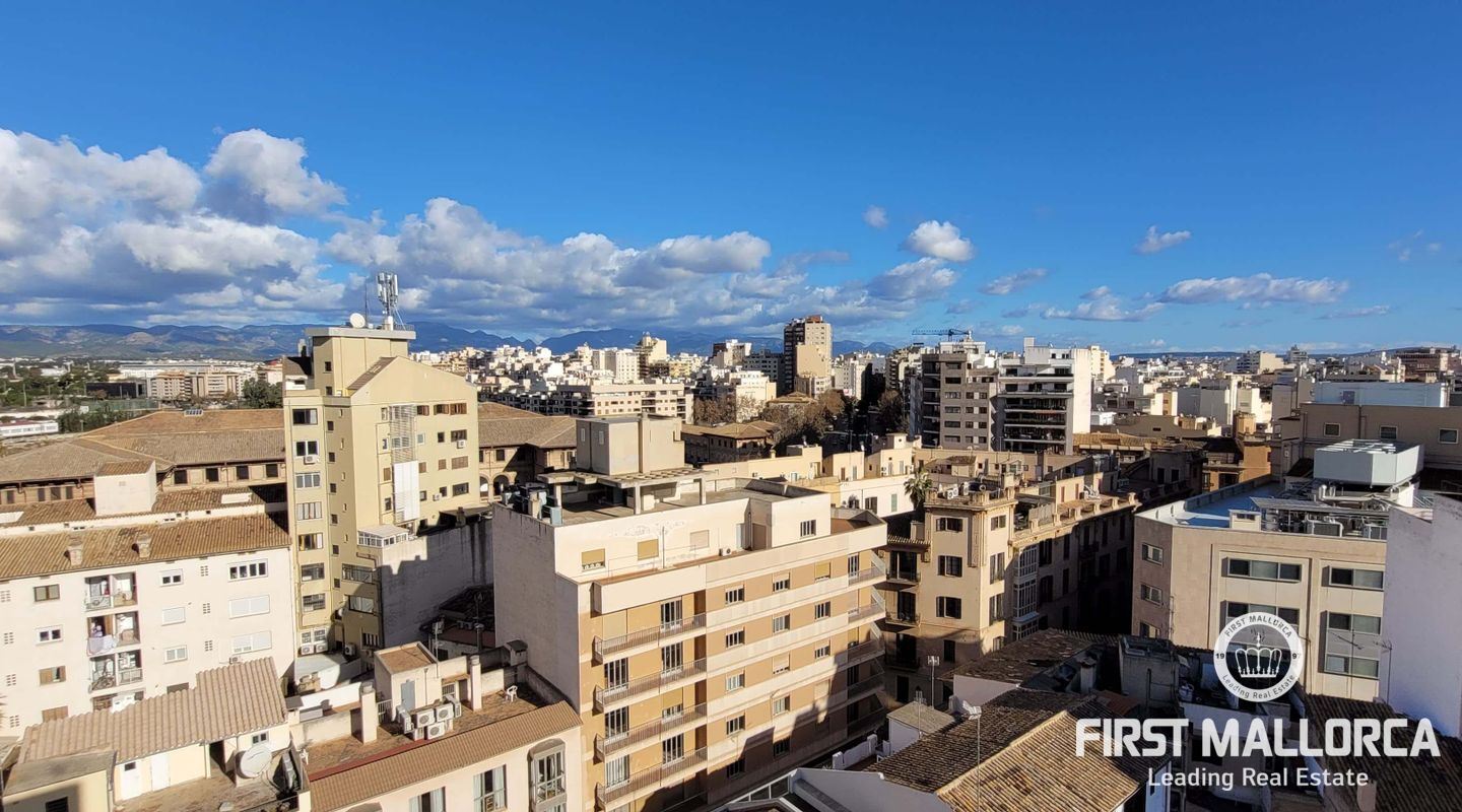 Este lujoso ático está situado en el corazón de Palma, a apenas escasos minutos a pié de la calle Jaime III, el paseo de Mallorca y la Rambla. La propiedad se caracteriza por su precioso y cuidado diseño, aparte de sus acabados de alta calidad. Goza de abundante luz natural que entra por sus amplios ventanales y al tratarse de la última planta, disfruta del privilegio de sus imponentes y despejadas vistas del casco antiguo, el mar y la sierra. El apartamento consta de un espacioso y luminoso salón-comedor, conectado a una amplia terraza con mesa y sillas, sofá y toldo. La cocina moderna proviso con electrodomésticos, posee una ventana doble que da a la bahía. Tiene tres dormitorios cómodos y con armarios empotrados de madera, de los cuales el principal es en suite, con vestidor propio, vistas a la catedral y terraza adyacente, ideal para disfrutar de una taza de café nada más al despertarse. Cabe destacar el suelo con parquet de madera natural, aíre acondicionado por conductos, descalificador de agua, calefacción y parking para un coche pequeño. La vivienda está totalmente equipada y se alquila a largo y corto plazo. Para más información no dude en contactar a su agente de First Mallorca.