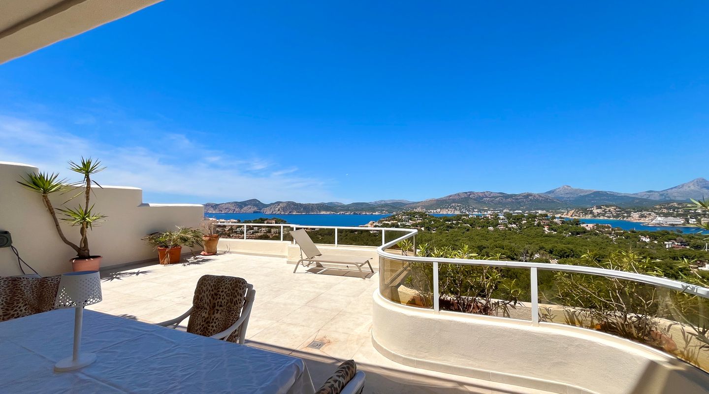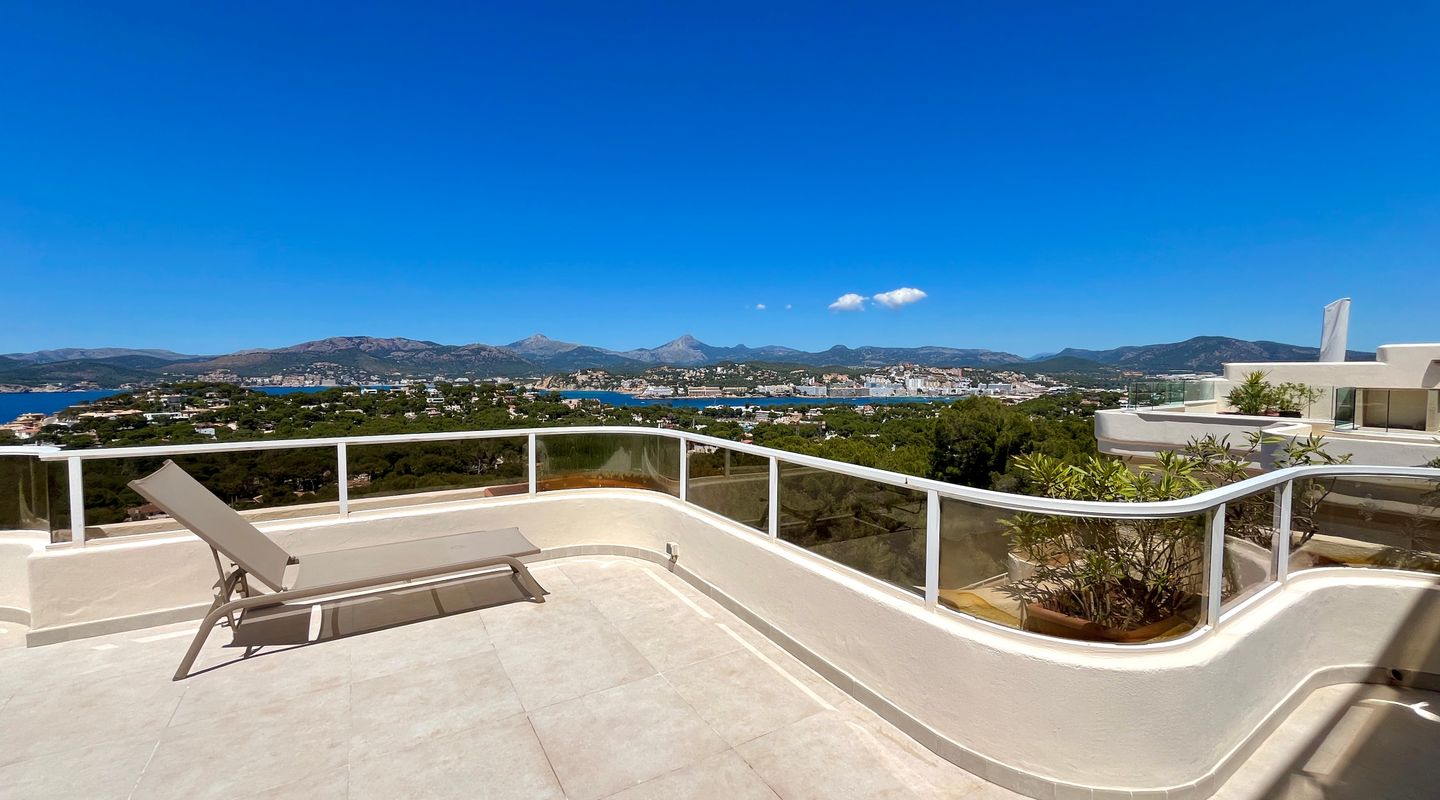 Apartamento encantador totalmente reformado en un complejo residencial en Santa Ponsa Nova. Con una gran terraza de 69 m2 con vistas espectaculares al mar, a la Sierra de Tramuntana y los atardeceres de ensueño!