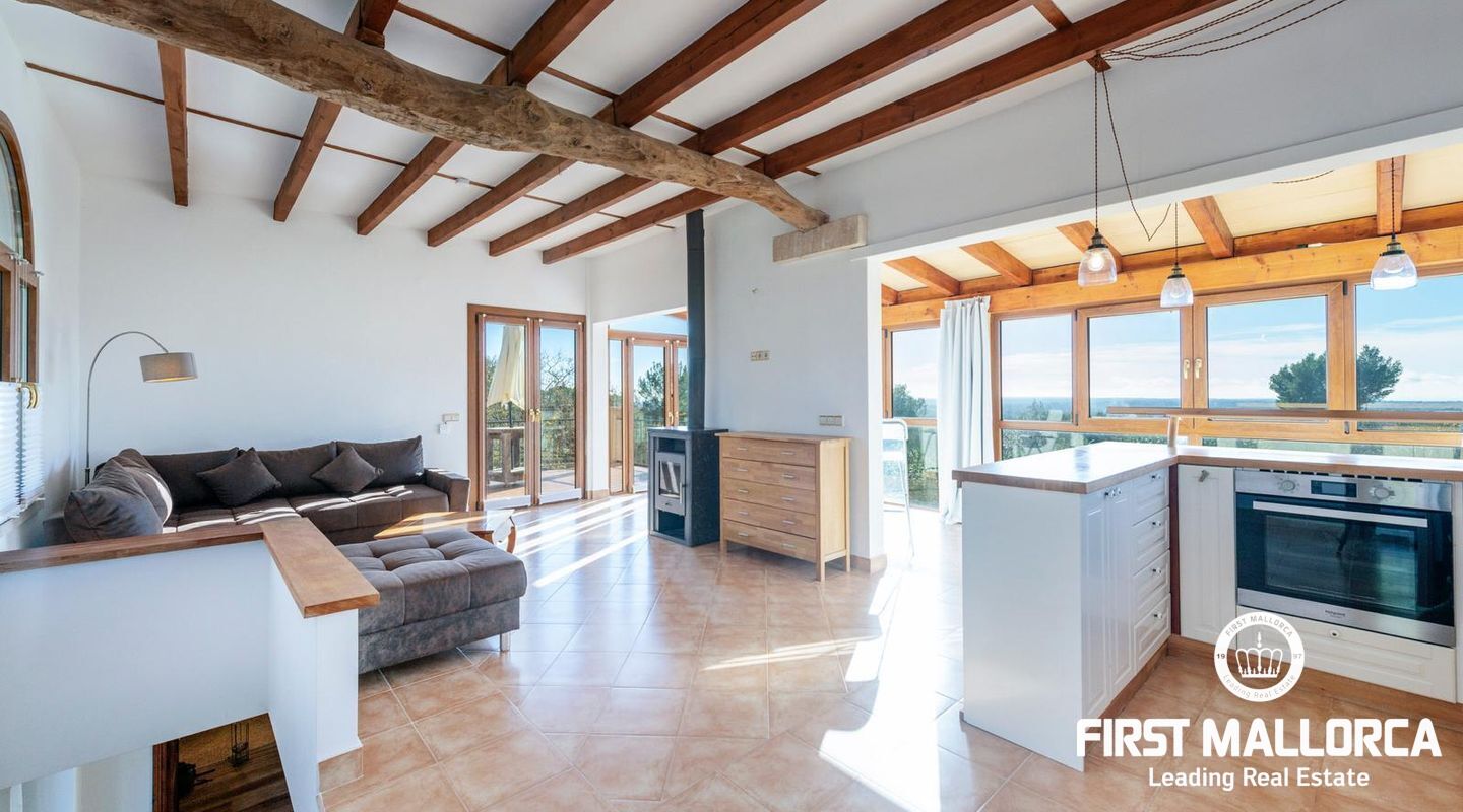 La finca ofrece dos plantas de vivienda. En la planta superior se encuentra un espacio diáfano que integra de manera armoniosa la cocina, el comedor y el salón. Este diseño aprovecha al máximo la posición elevada de la propiedad, ofreciendo impresionantes vistas panorámicas de 360 grados a las montañas circundantes y, en días despejados, incluso una vista lejana al mar. Este espacio espectacular crea una conexión perfecta con la belleza natural del entorno.
