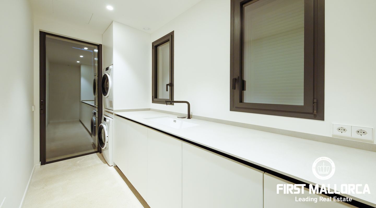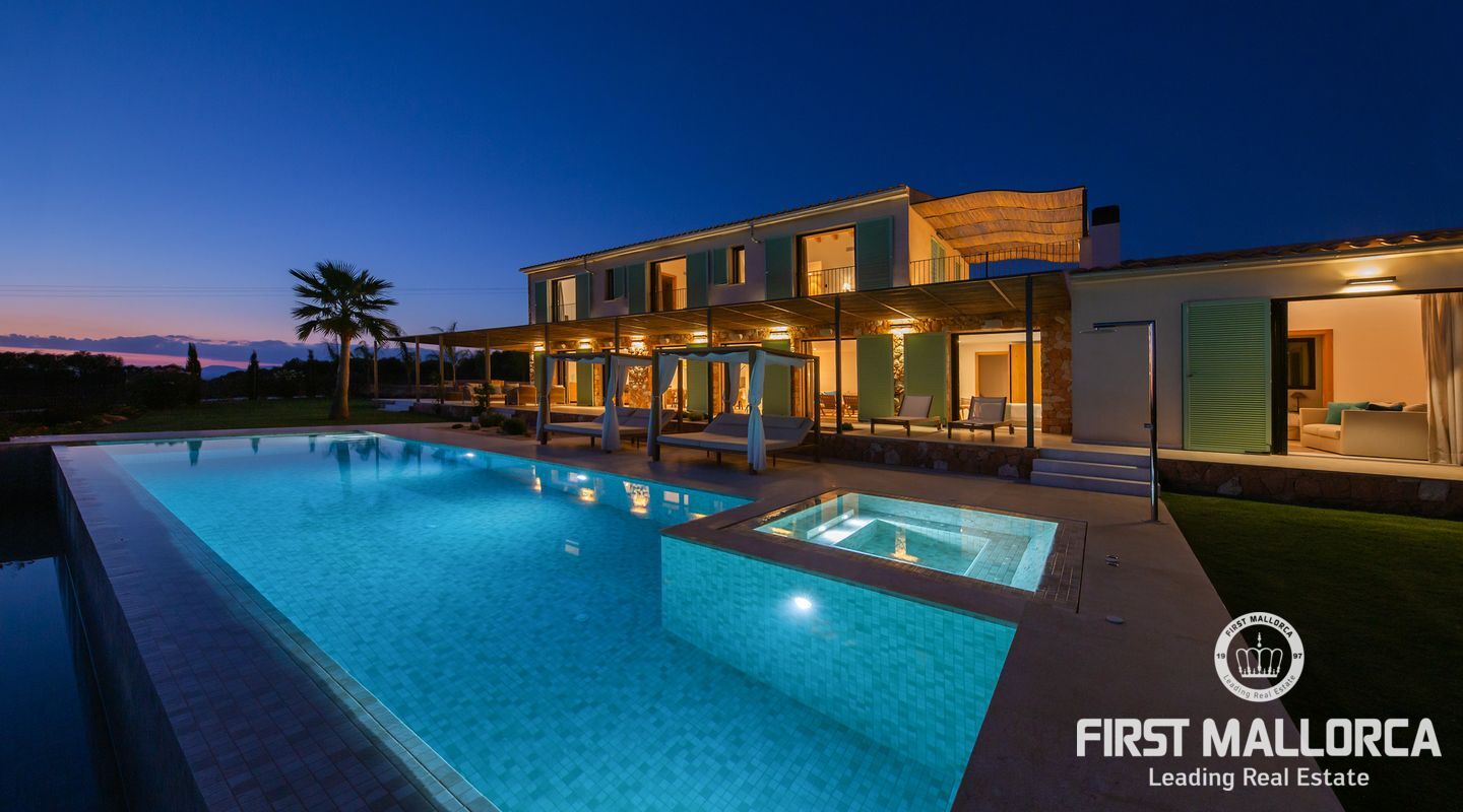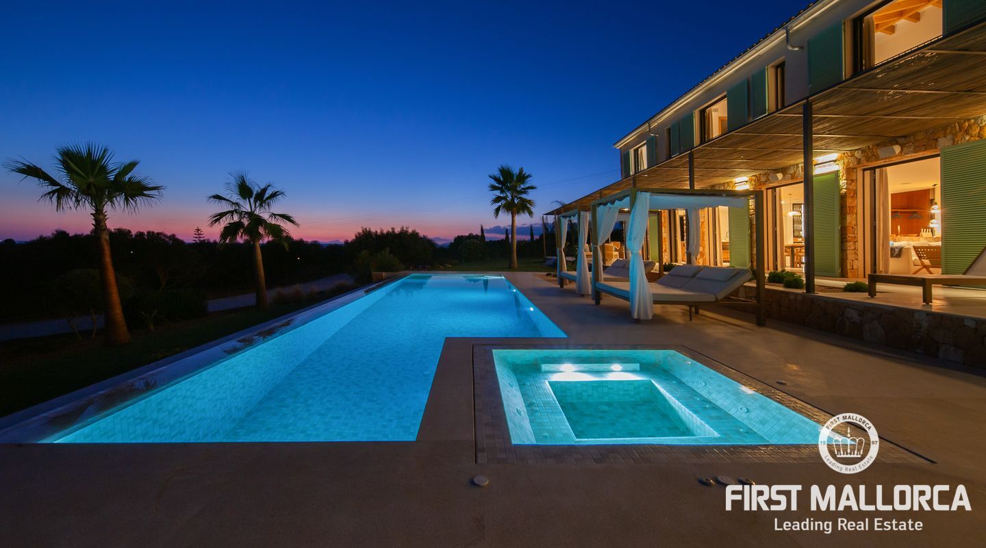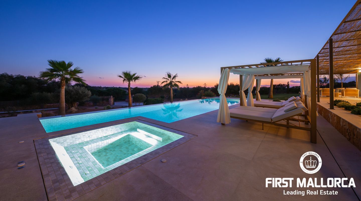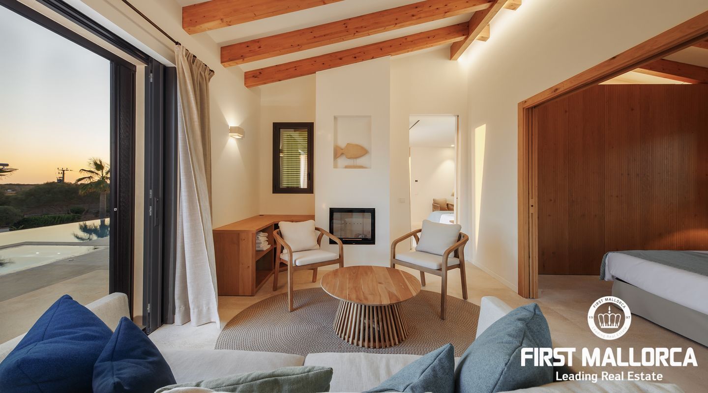 En Ses Salines se alza esta espectacular villa de nueva construcción sobre una amplia parcela de 14.090 m². Con 543 m² de elegantes espacios interiores, la vivienda combina diseño moderno, confort y privacidad. En la planta baja, un gran espacio abierto integra salón, comedor y cocina, junto con lavandería, dos porches cubiertos y un aseo de cortesía.
