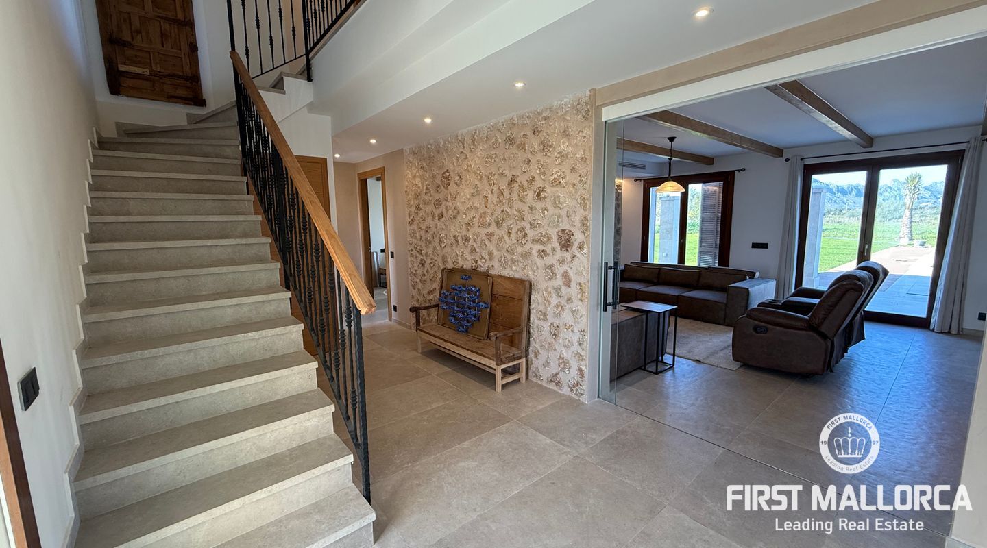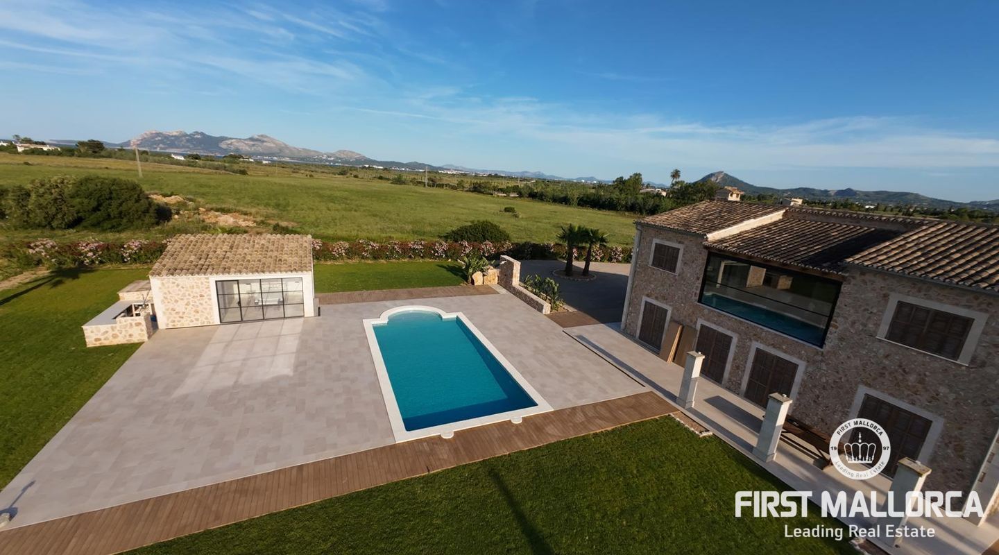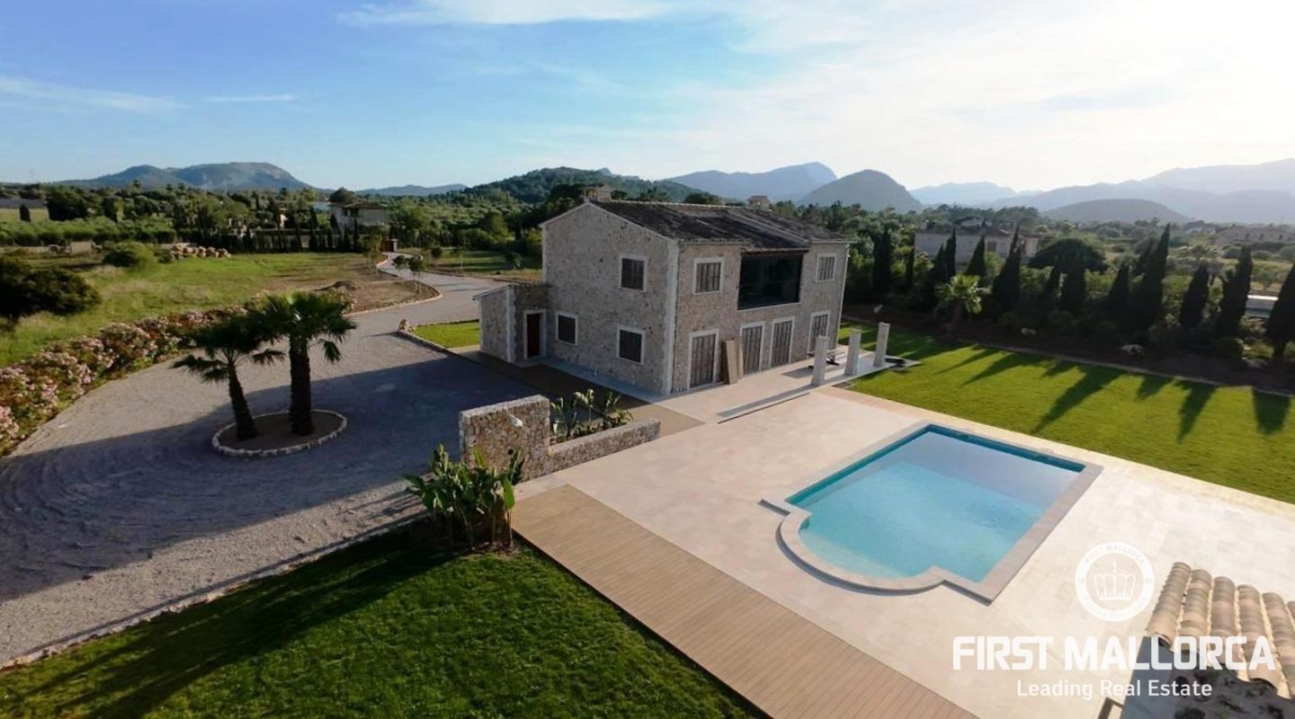 Ubicada en una extensa parcela de 62.000 m² en la codiciada zona de Puerto Pollença, esta impresionante propiedad de 393 m² combina el encanto de la arquitectura mallorquina con el confort moderno. Su fachada de piedra natural, los cuidados acabados interiores y la reciente renovación integral, que incluye calefacción por suelo radiante, la convierten en una joya única en el norte de Mallorca.