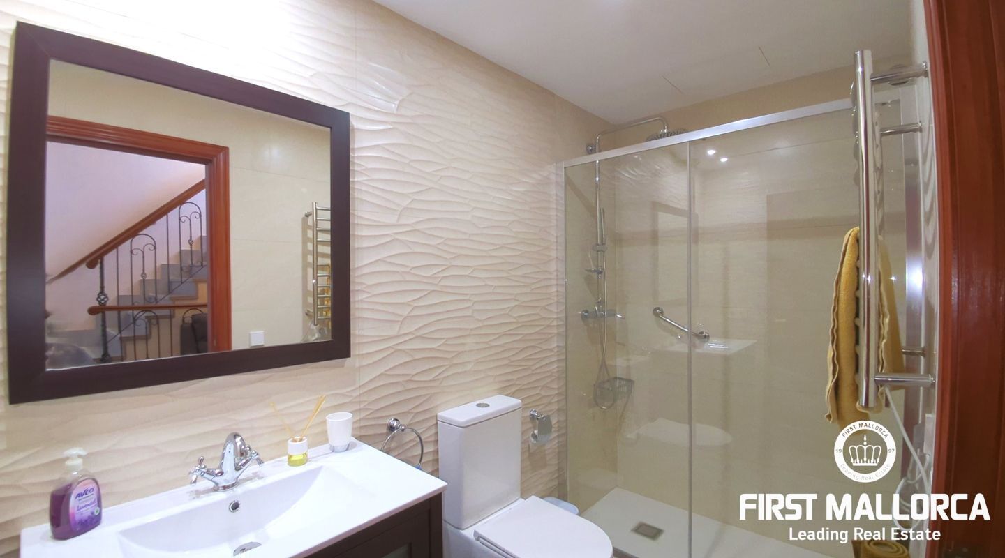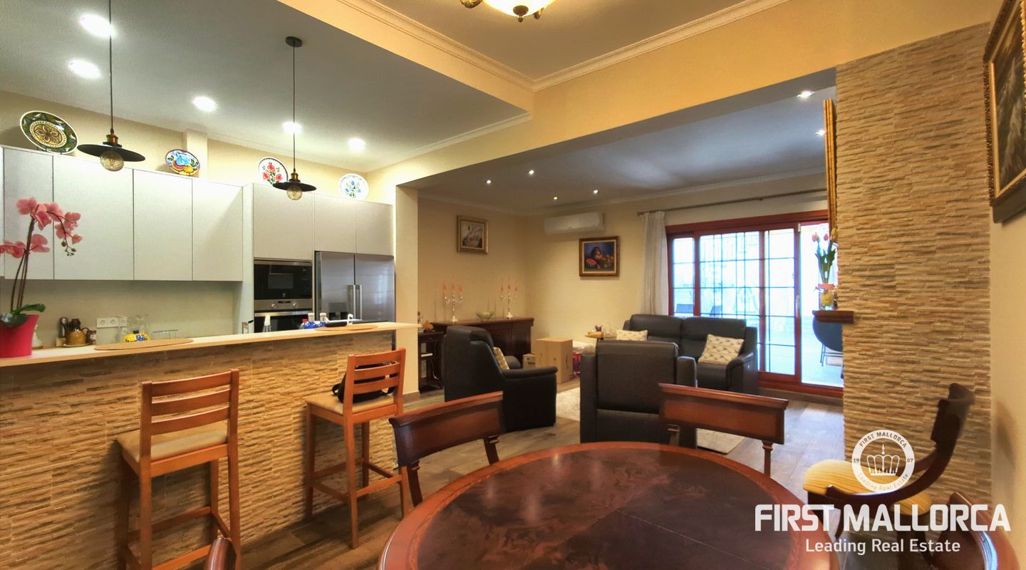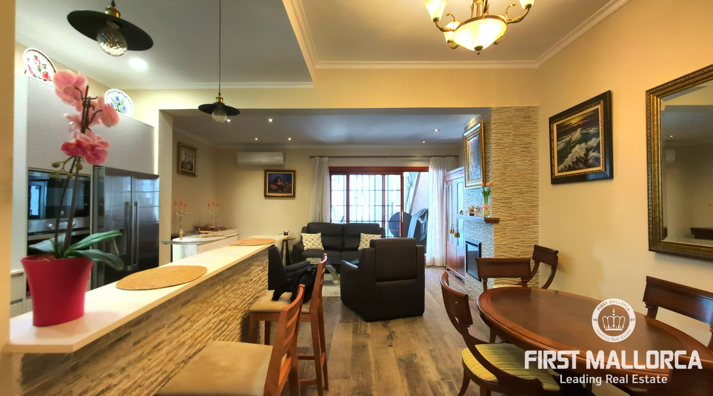 Esta casa de pueblo bien cuidada se encuentra en una calle tranquila, a pocos pasos de la encantadora zona peatonal que conduce directamente a la plaza principal (Plaza de Llucmajor), con fácil acceso a tiendas, cafés y todos los servicios del pueblo. La vivienda ofrece una distribución cómoda y funcional en varias plantas, con 3 amplios dormitorios y 3 baños modernos. El luminoso espacio de salón y cocina de planta abierta crea un ambiente acogedor para la vida diaria y para recibir visitas. En la parte trasera, un patio privado cuenta con una terraza cubierta y otra descubierta, ideal para relajarse o comer al aire libre durante todo el año.