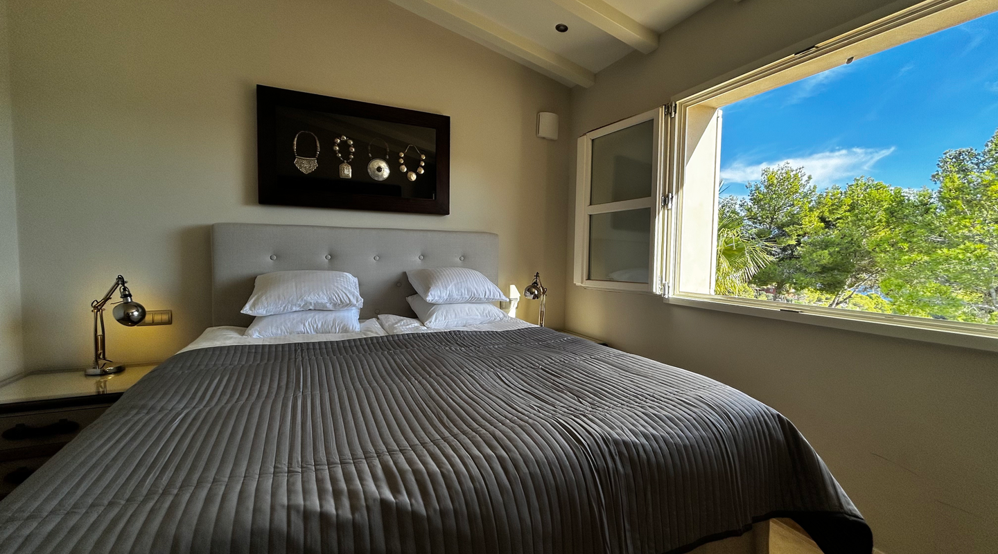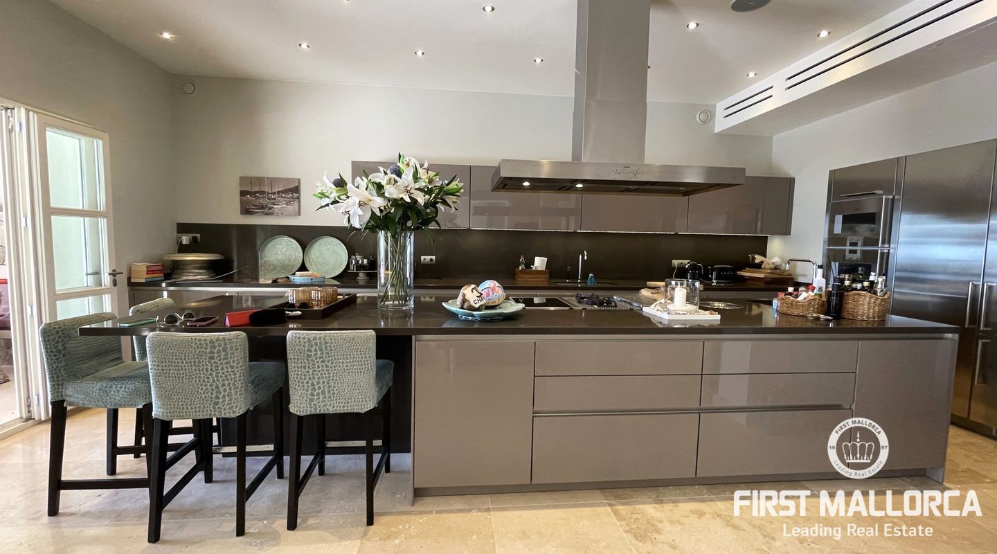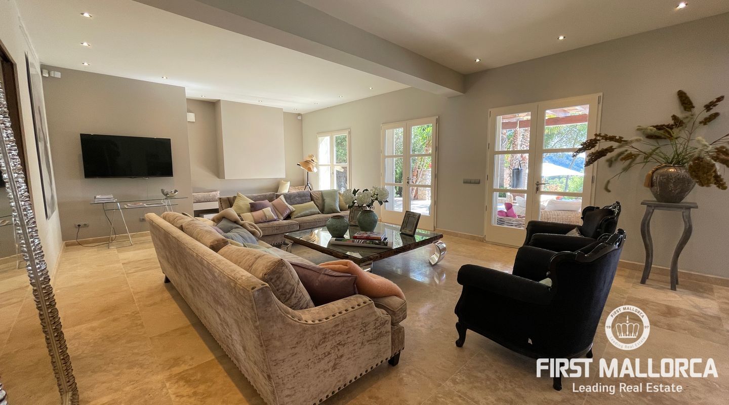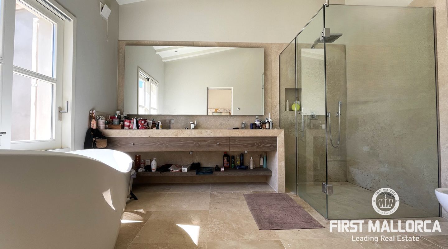 El interior destaca por sus techos altos, suelo radiante, aire acondicionado f/c y una acogedora chimenea, creando una atmósfera cálida en cualquier época del año. En la terraza bañada por el sol podrá disfrutar de total privacidad, una brillante piscina de agua salada y una zona de barbacoa ideal para largas veladas al aire libre.