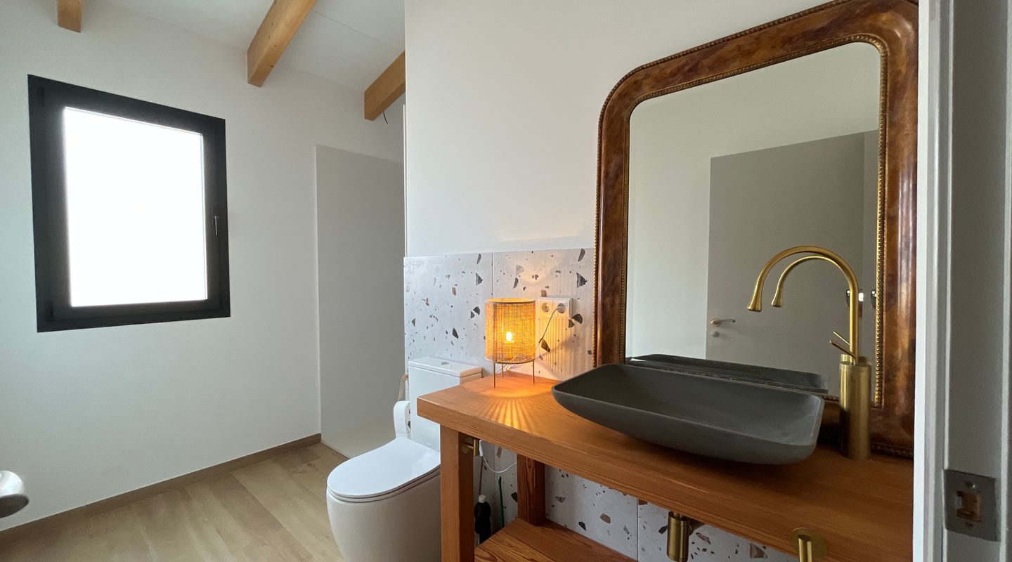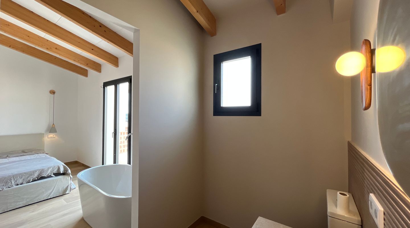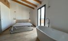 En la planta superior se ubican tres dormitorios: el principal con baño en suite, bañera integrada en el dormitorio y balcón privado con vistas a la piscina y la montaña; y dos dormitorios adicionales que comparten un baño completo.