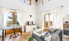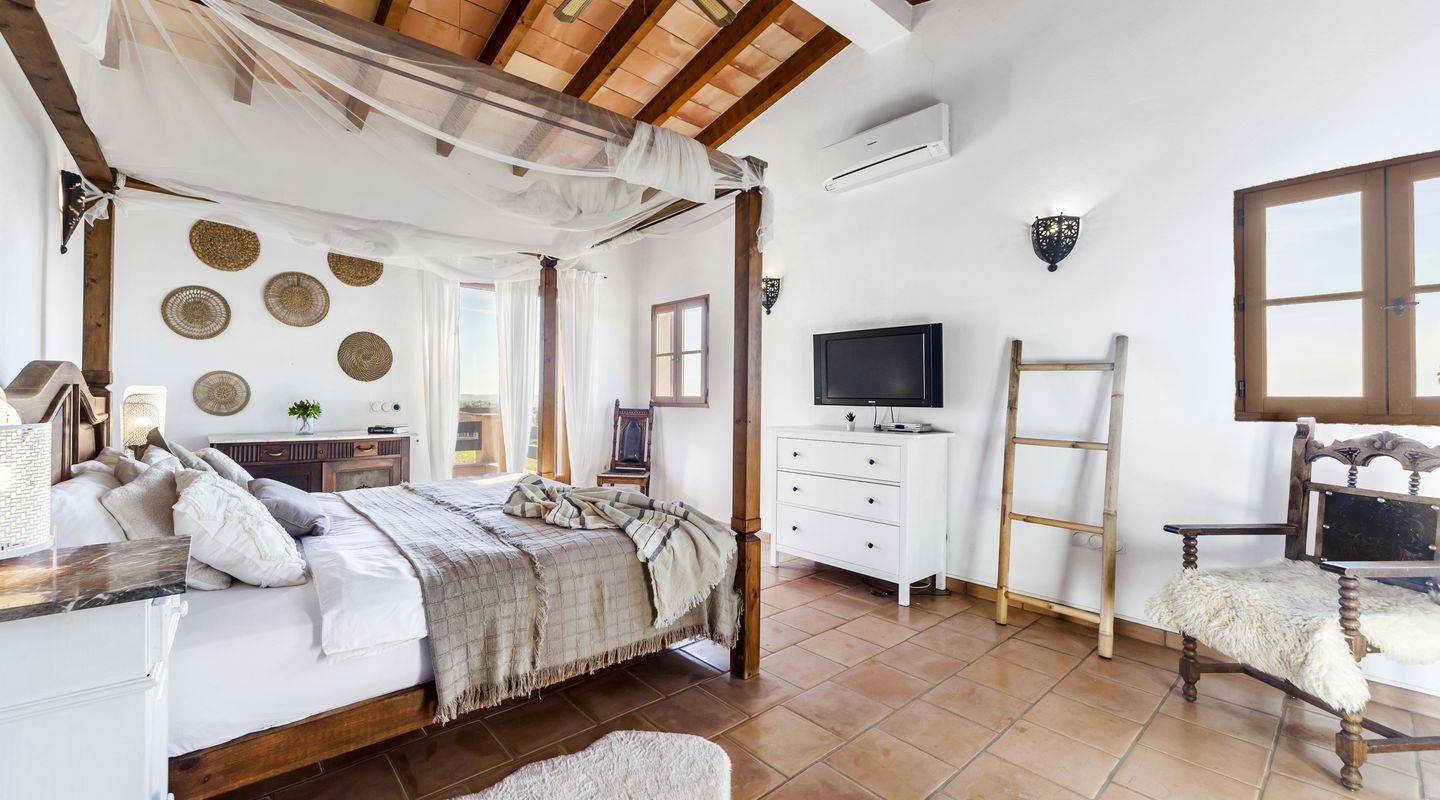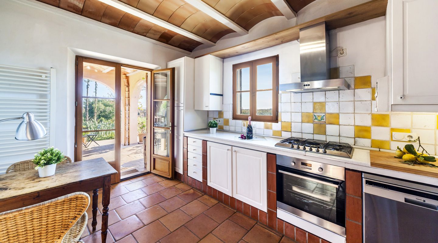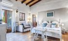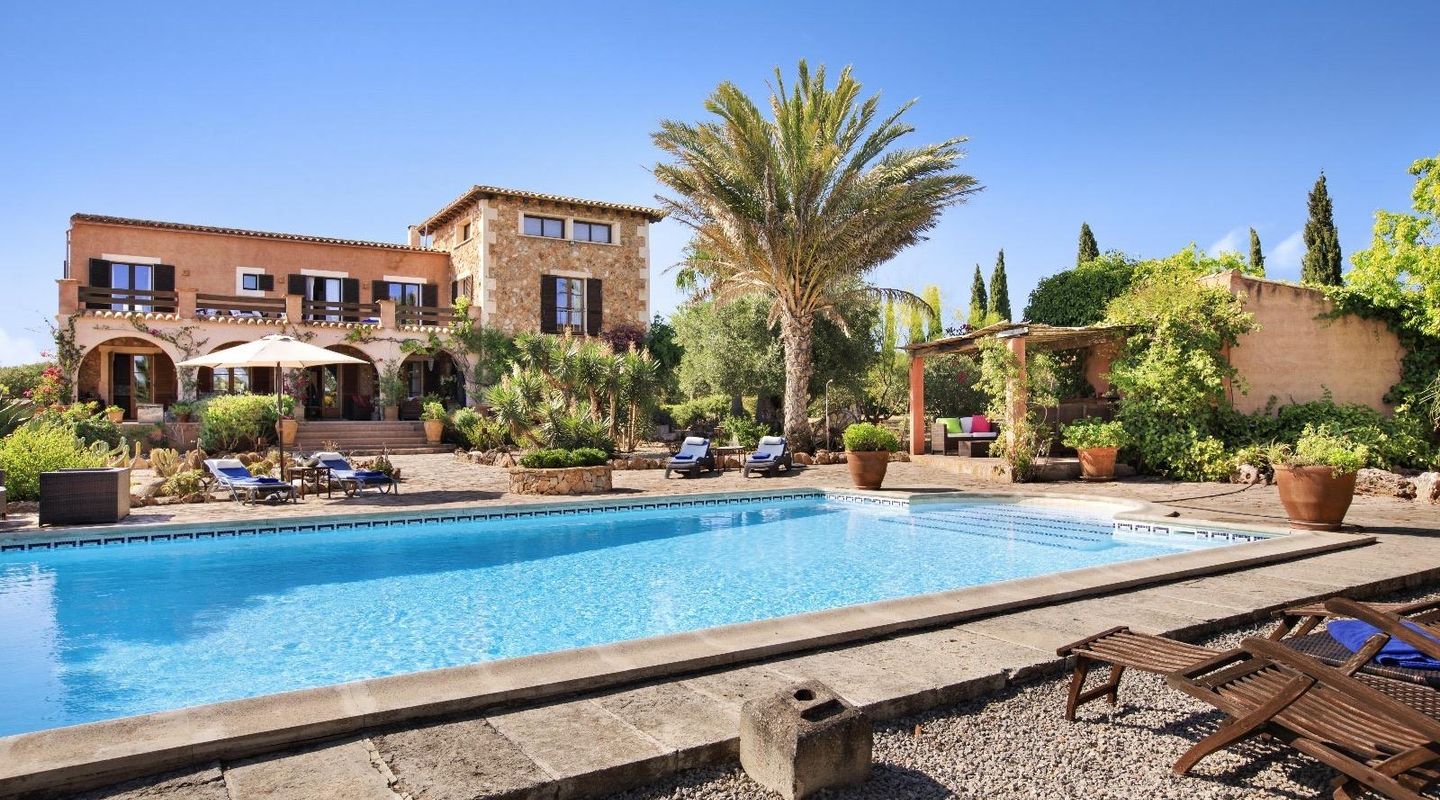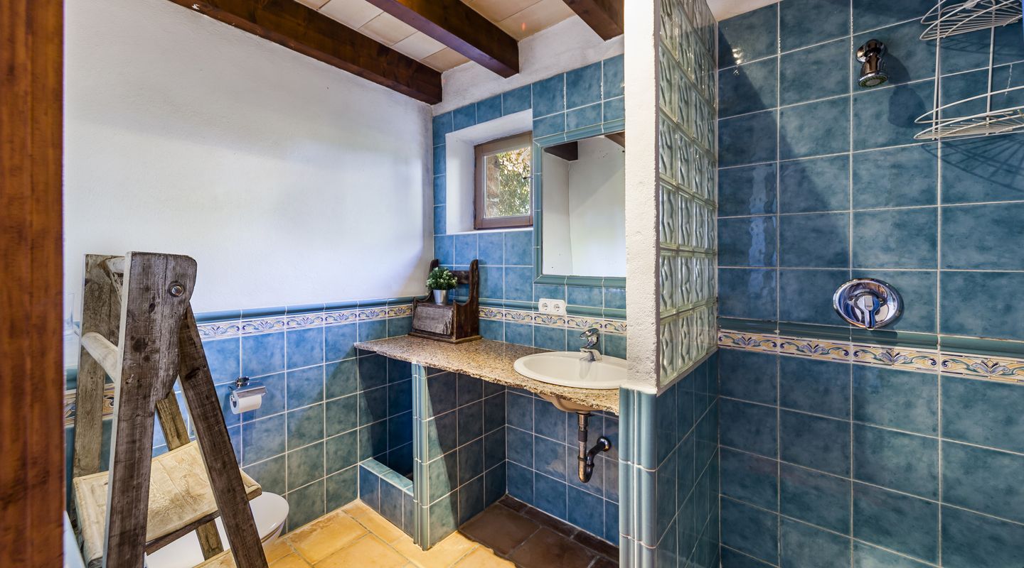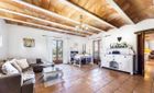 En el exterior, la finca invita a la relajación con una gran terraza y piscina privada, ideal para disfrutar del sol mallorquín. Impresionantes vistas panorámicas al paisaje rural mallorquín ofrecen una sensación constante de paz y conexión con la naturaleza. Además, el exuberante jardín mediterráneo, decorado con palmeras, buganvillas, cactus y adelfas, aporta color y frescura al entorno. Para los amantes de los animales, la propiedad dispone de una zona ecuestre con establos y la compañía de diversos animales que refuerzan su atmósfera auténticamente rural.