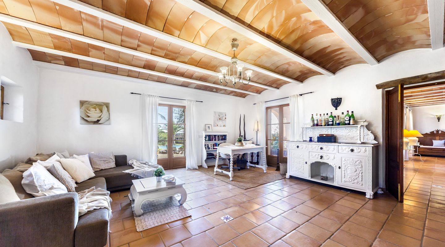 La finca, con una superficie construida de aproximadamente 500 m² sobre un extenso terreno de 30.000 m², ha sido cuidadosamente diseñada para transmitir un ambiente cálido y acogedor. Elementos como vigas vistas, suelos de piedra natural y detalles históricos aportan autenticidad y carácter a cada espacio, creando una experiencia de vida única con estilo mallorquín.