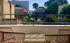 Ubicado en la tercera planta sin ascensor, el apartamento cuenta con un amplio y luminoso salón con cocina americana totalmente equipada, dos habitaciones dobles —una de ellas con baño en suite— y un segundo baño completo. El balcón ofrece vistas parciales al mar, mientras que el aire acondicionado con calefacción garantiza confort durante todo el año.