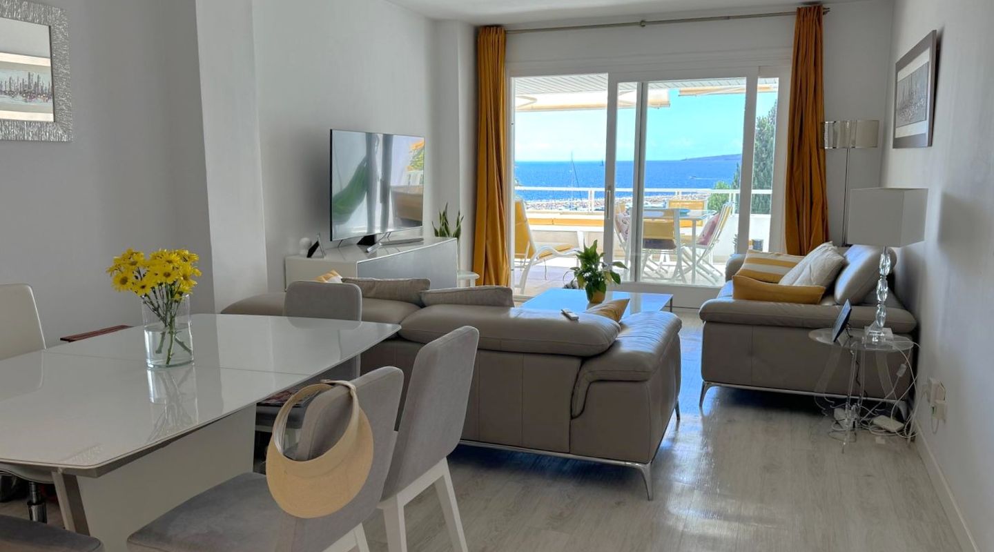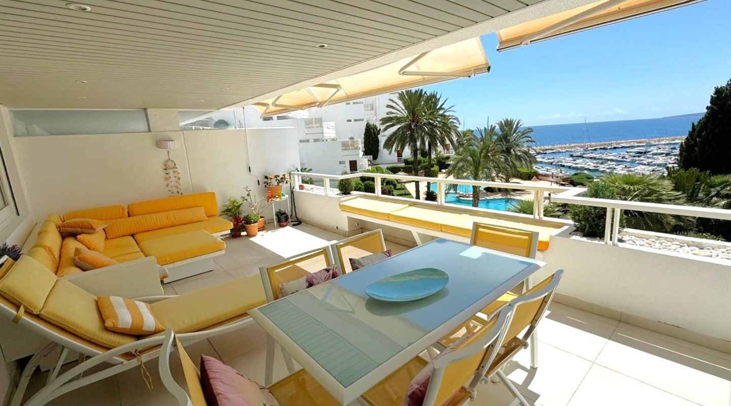 Disponible únicamente para alquiler de vivienda no habitual y segunda residencia – Puerto Portals Un apartamento luminoso y con estilo en una de las zonas residenciales más deseables de Puerto Portals. Dispone de 2 amplios dormitorios, 2 baños modernos, una cómoda zona de estar con vistas al mar, cocina totalmente equipada y una encantadora terraza privada perfecta para relajarse.