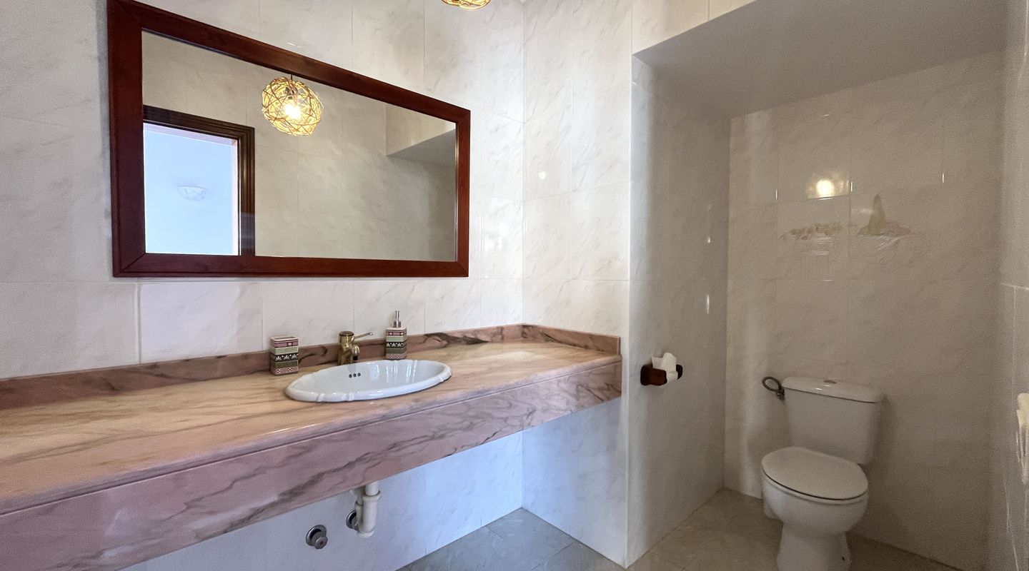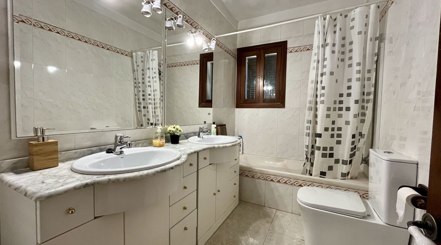 La planta baja, con entrada independiente, dispone de un amplio salón o sala de juegos, tres dormitorios y dos baños adicionales, ideal para invitados, familiares o incluso un alojamiento independiente.