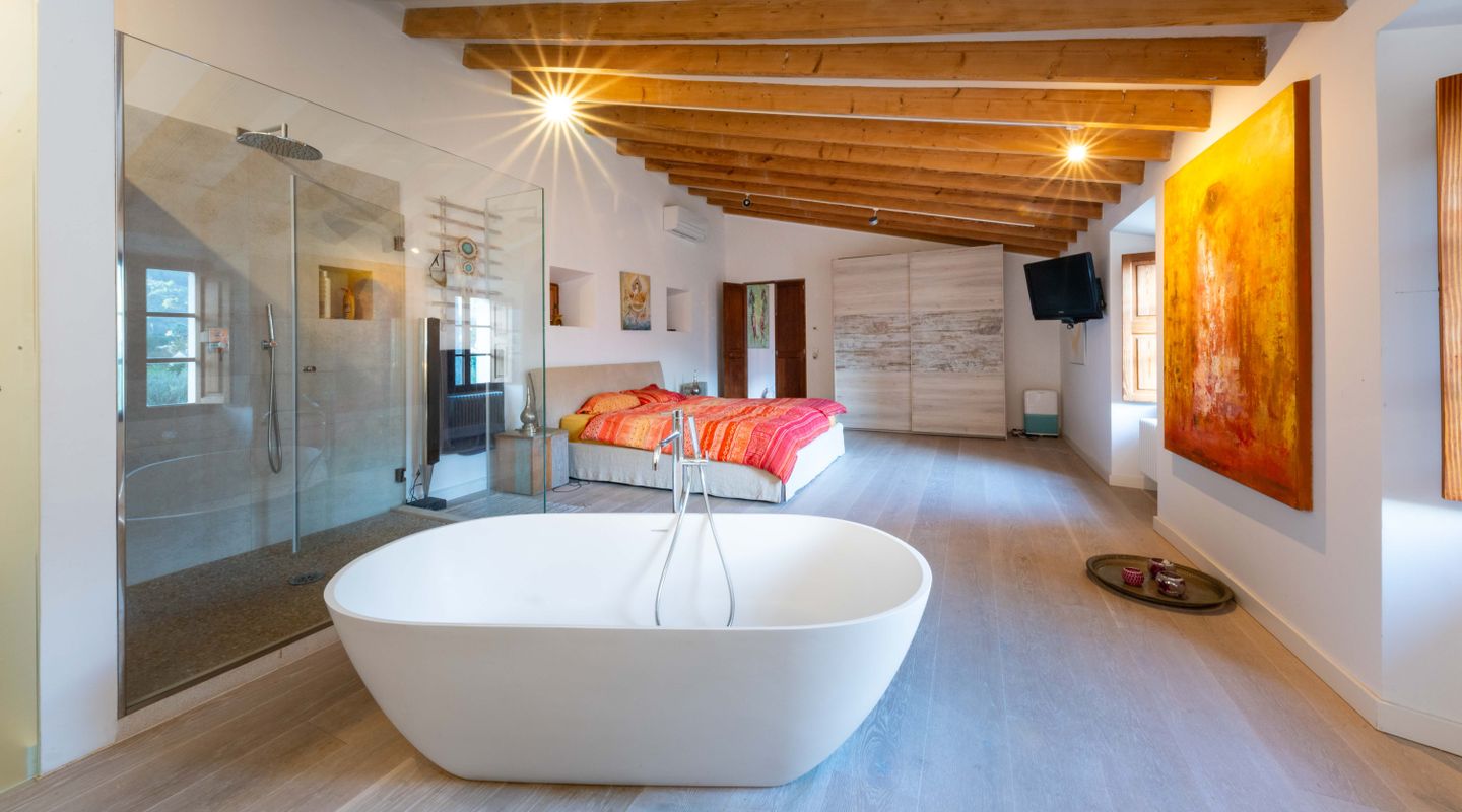 Equipada con calefacción, sauna y jacuzzi interior, Finca Ruberta permite disfrutar de la isla durante todo el año, ya sea para descansar tras un día de senderismo, recorrer los caminos de la Tramuntana o simplemente disfrutar de la tranquilidad de su entorno. Cada rincón invita a desconectar y vivir momentos únicos, combinando historia, naturaleza y confort de manera excepcional.