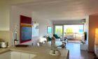 El apartamento destaca por su luminosidad y su amplia terraza con vistas panorámicas al mar, ideal para disfrutar de amaneceres inolvidables o cenas al aire libre. Dispone de dos dormitorios acogedores, dos baños renovados y una moderna cocina abierta completamente equipada, pensada para una vida relajada junto al mar.