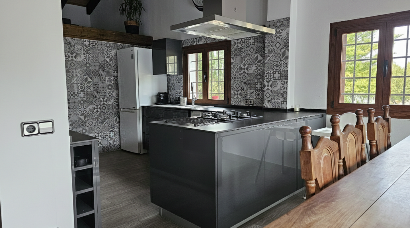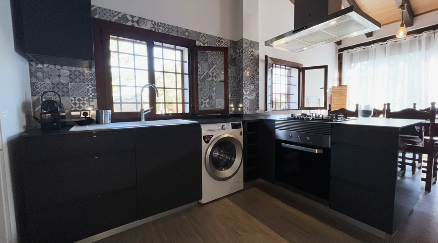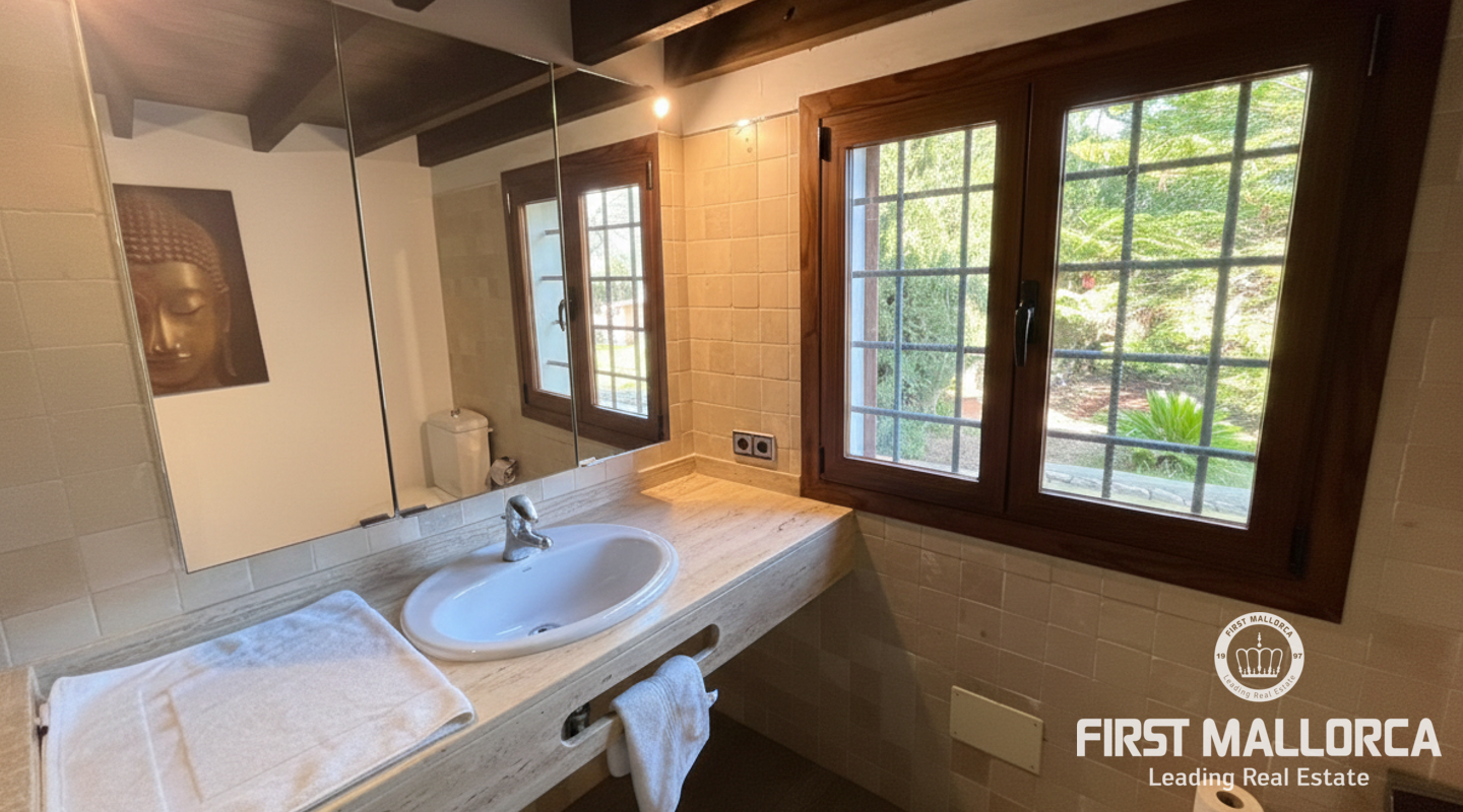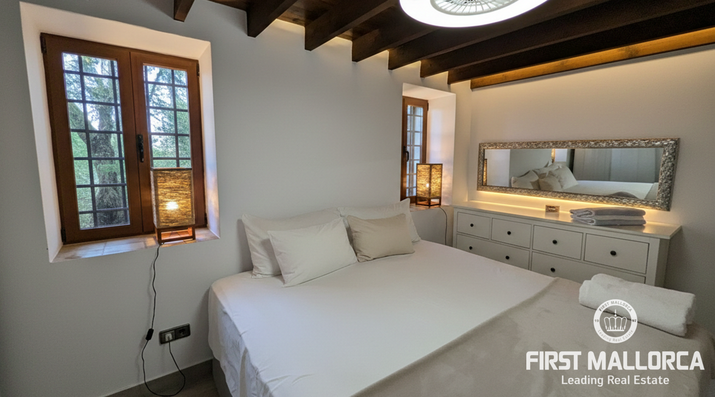 El interior ofrece un ambiente cálido y luminoso gracias a su cocina abierta al comedor, ideal para disfrutar de comidas con familia o amigos, y a la chimenea, que aporta un toque acogedor durante las noches. Desde el salón se accede al jardín y la piscina privada, el lugar perfecto para disfrutar del sol mallorquín y relajarse durante unas vacaciones inolvidables.