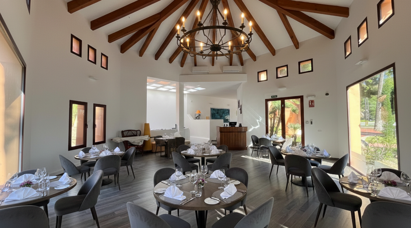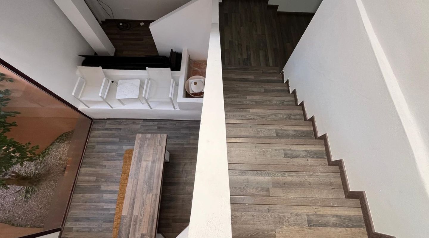 En la planta principal, un elegante recibidor da paso a un amplio hall de entrada, donde destaca una espectacular estructura arquitectónica que se convierte en el elemento central del local, aportando carácter y personalidad al espacio.