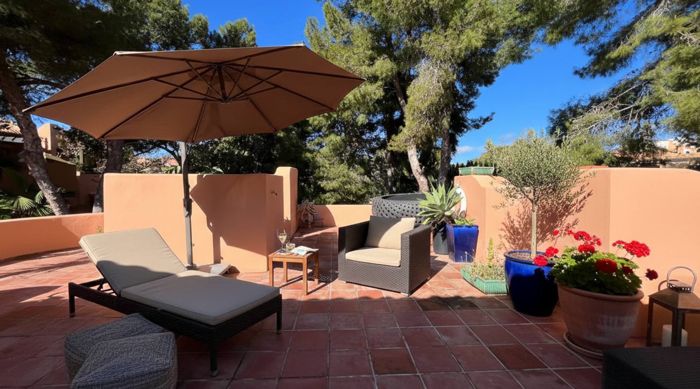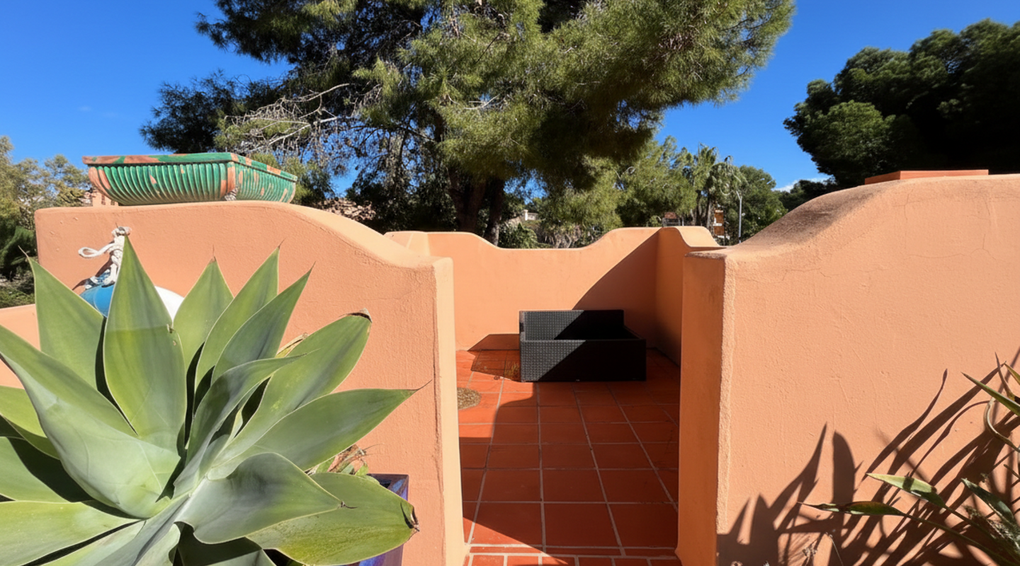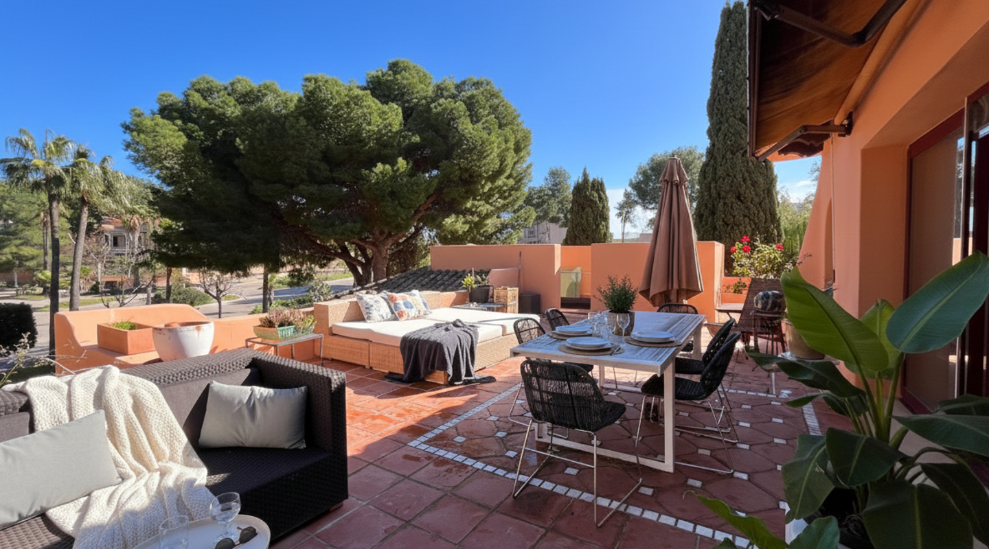 Planta superior: una habitación adicional y una amplia terraza con agradables vistas a la comunidad y a la calle.