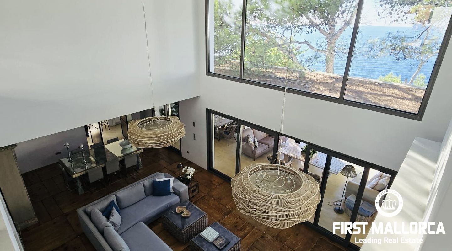 Las zonas de estar disfrutan de vistas panorámicas al mar, creando un ambiente luminoso y sereno. La villa dispone de piscina privada y amplias áreas exteriores ideales para relajarse o disfrutar de reuniones sociales, perfectas para el estilo de vida mediterráneo.