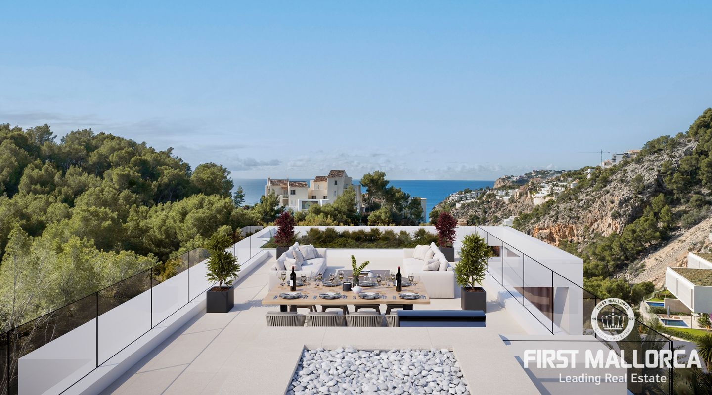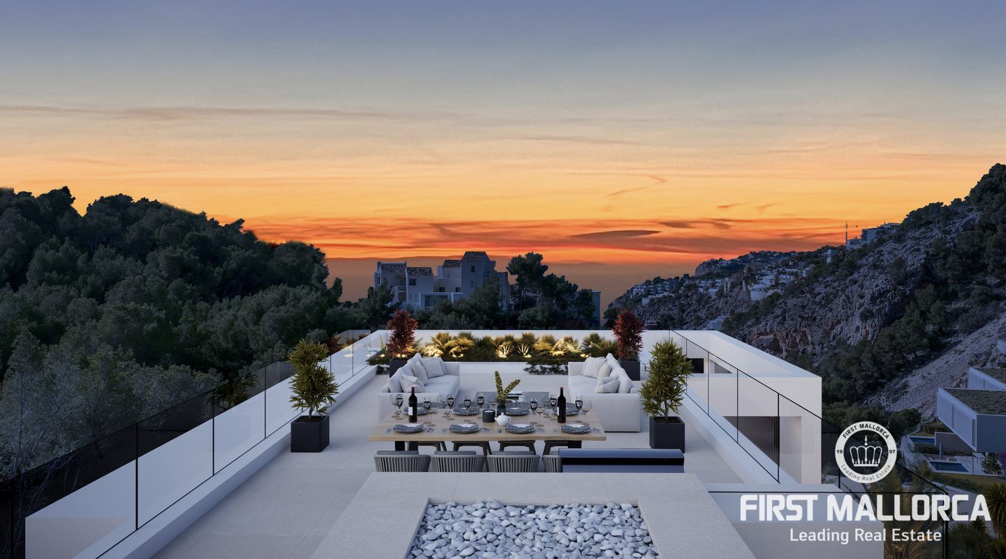 La villa estará orientada al oeste para que pueda disfrutar de las hermosas puestas de sol en Cala Llamp desde la terraza.