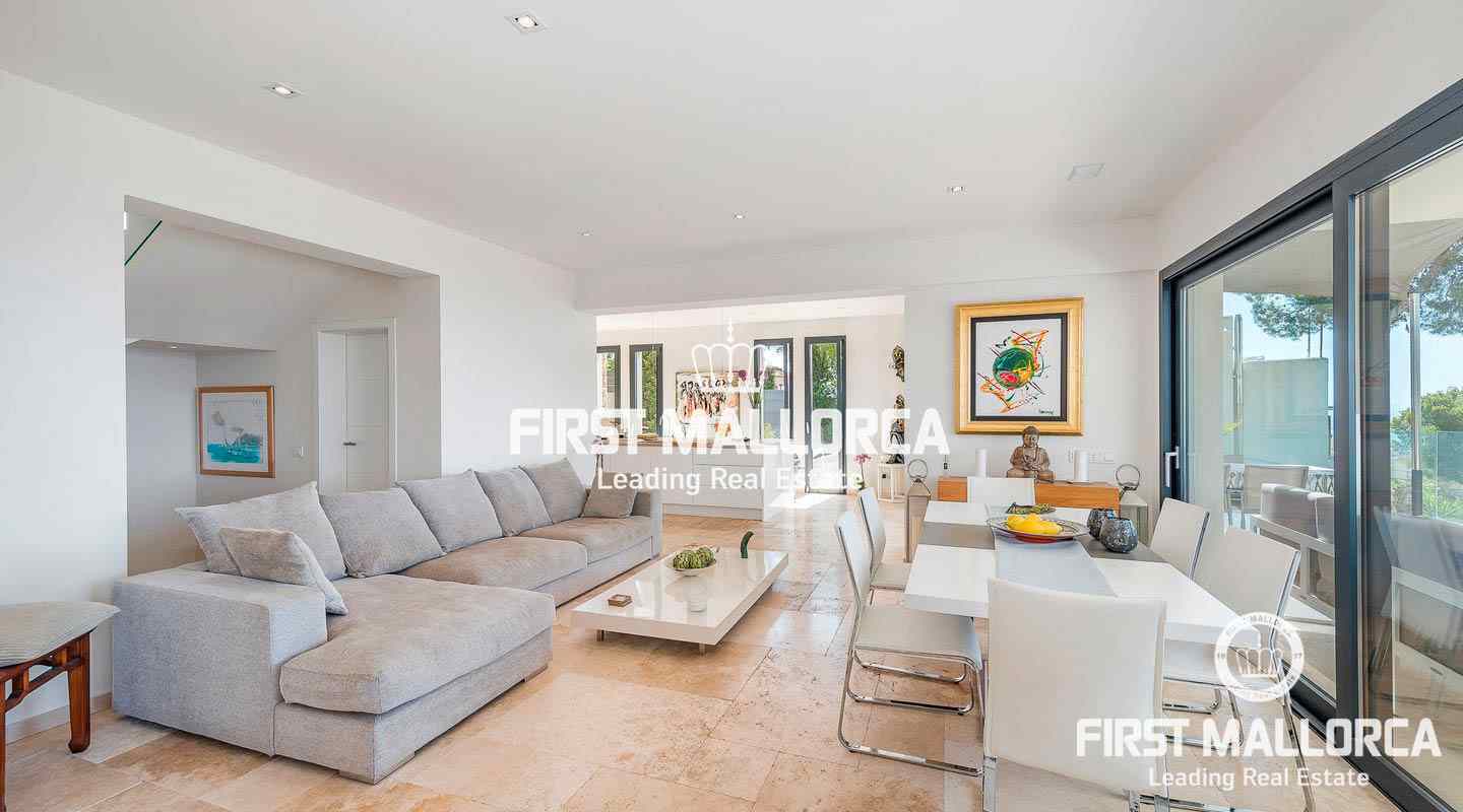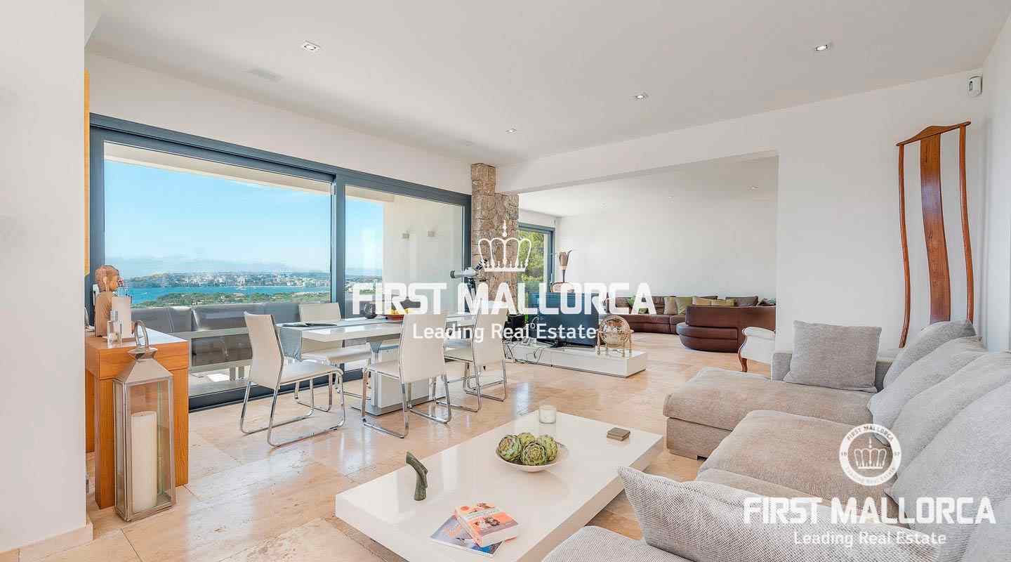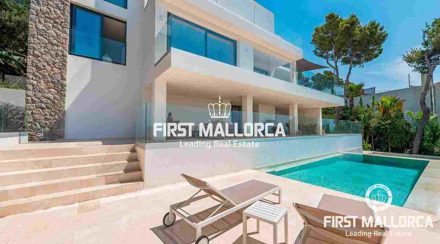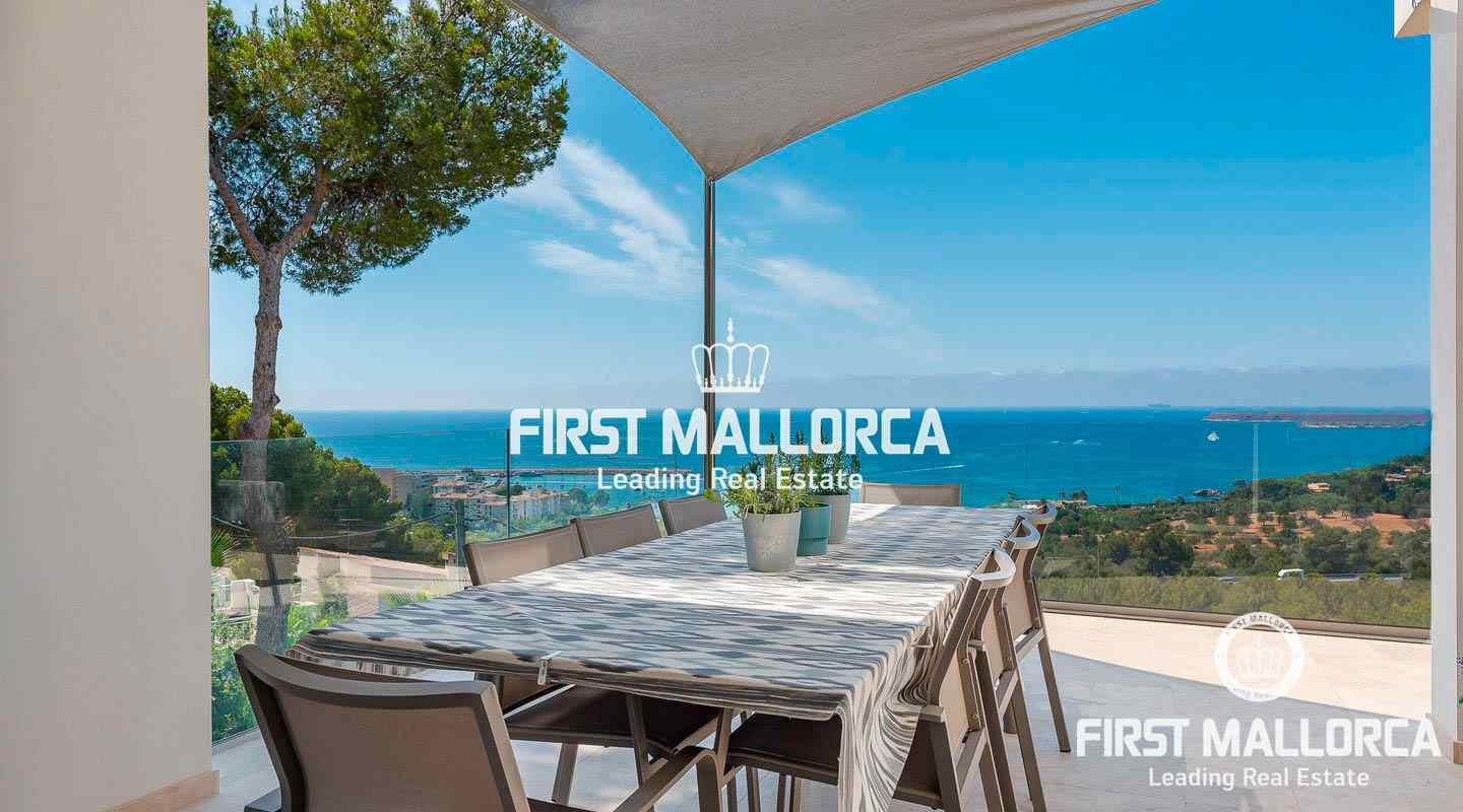 Esta atractiva villa contemporánea a estrenar disfruta de una elevada posición en Costa d'en Blanes con vistas panorámicas a la bahía de Palmanova y la marina de Puerto Portals. La propiedad ha sido cuidadosamente planificada para aprovechar al máximo las amplias terrazas que la rodean, su doble piscina y su generosa área exterior. Fluidas transiciones de espacios interiores y exteriores crean un ambiente muy armonioso y especial con rincones para descansar y desconectar.