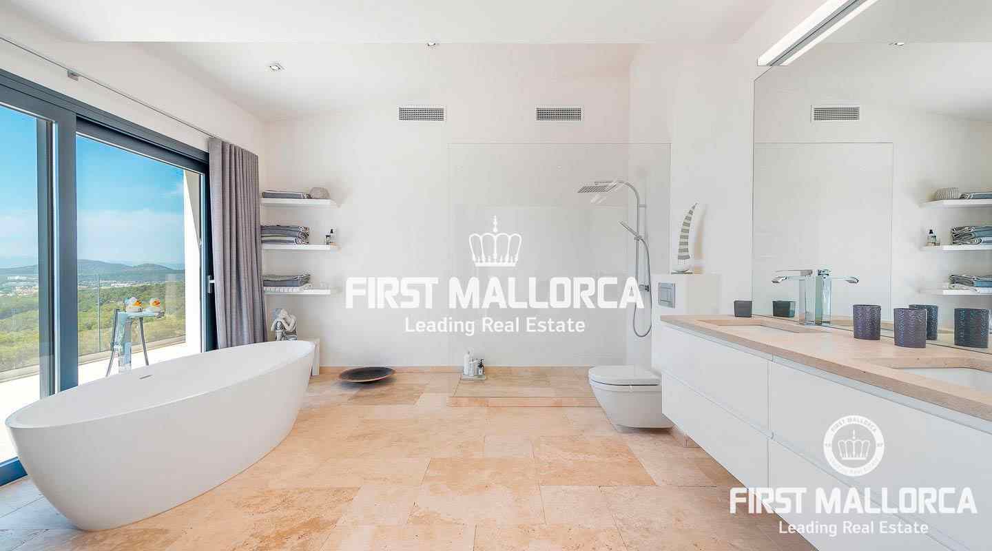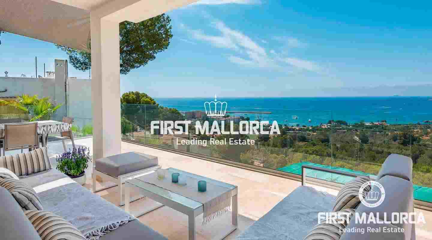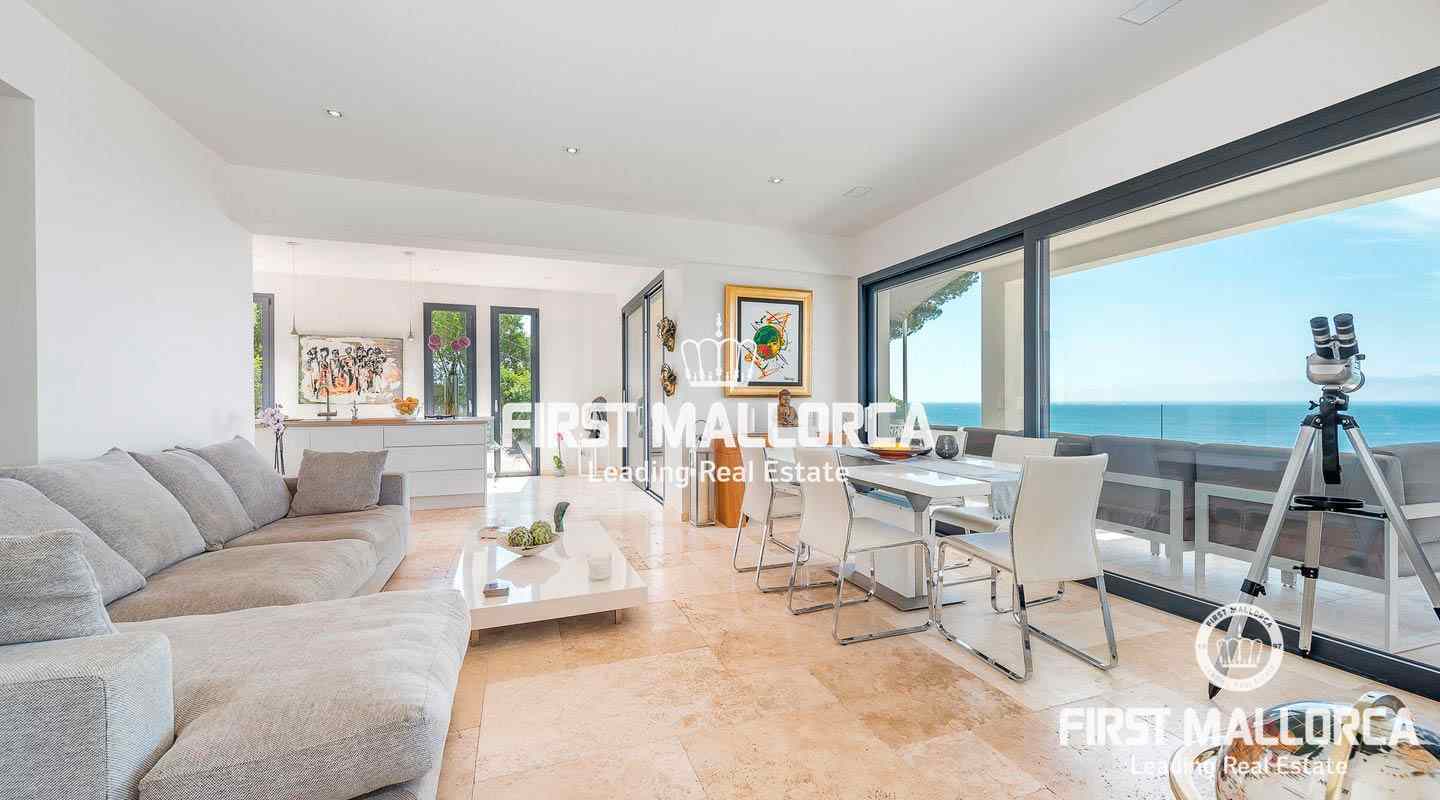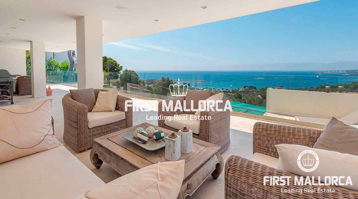 Esta atractiva villa contemporánea a estrenar disfruta de una elevada posición en Costa d'en Blanes con vistas panorámicas a la bahía de Palmanova y la marina de Puerto Portals. La propiedad ha sido cuidadosamente planificada para aprovechar al máximo las amplias terrazas que la rodean, su doble piscina y su generosa área exterior. Fluidas transiciones de espacios interiores y exteriores crean un ambiente muy armonioso y especial con rincones para descansar y desconectar.