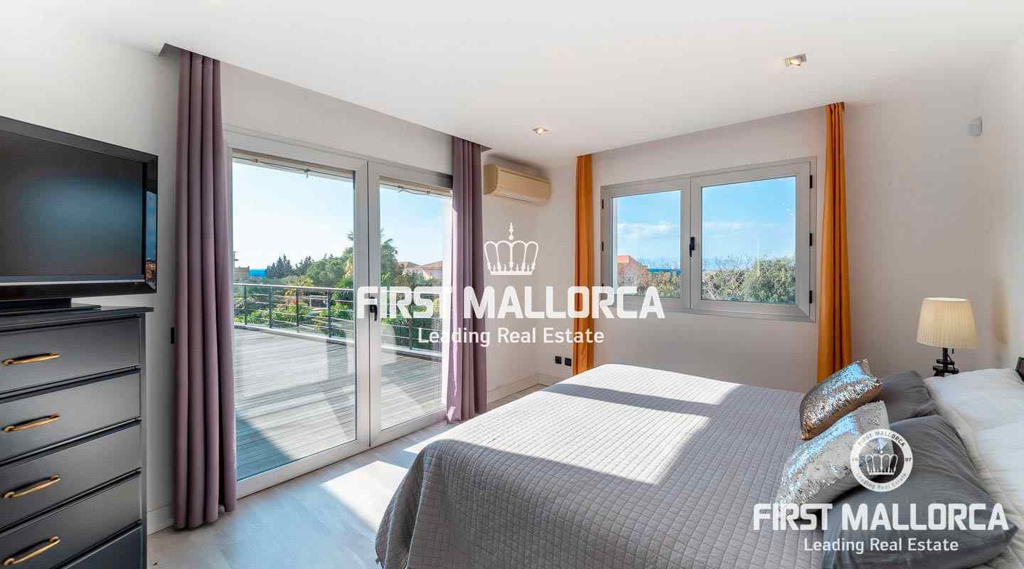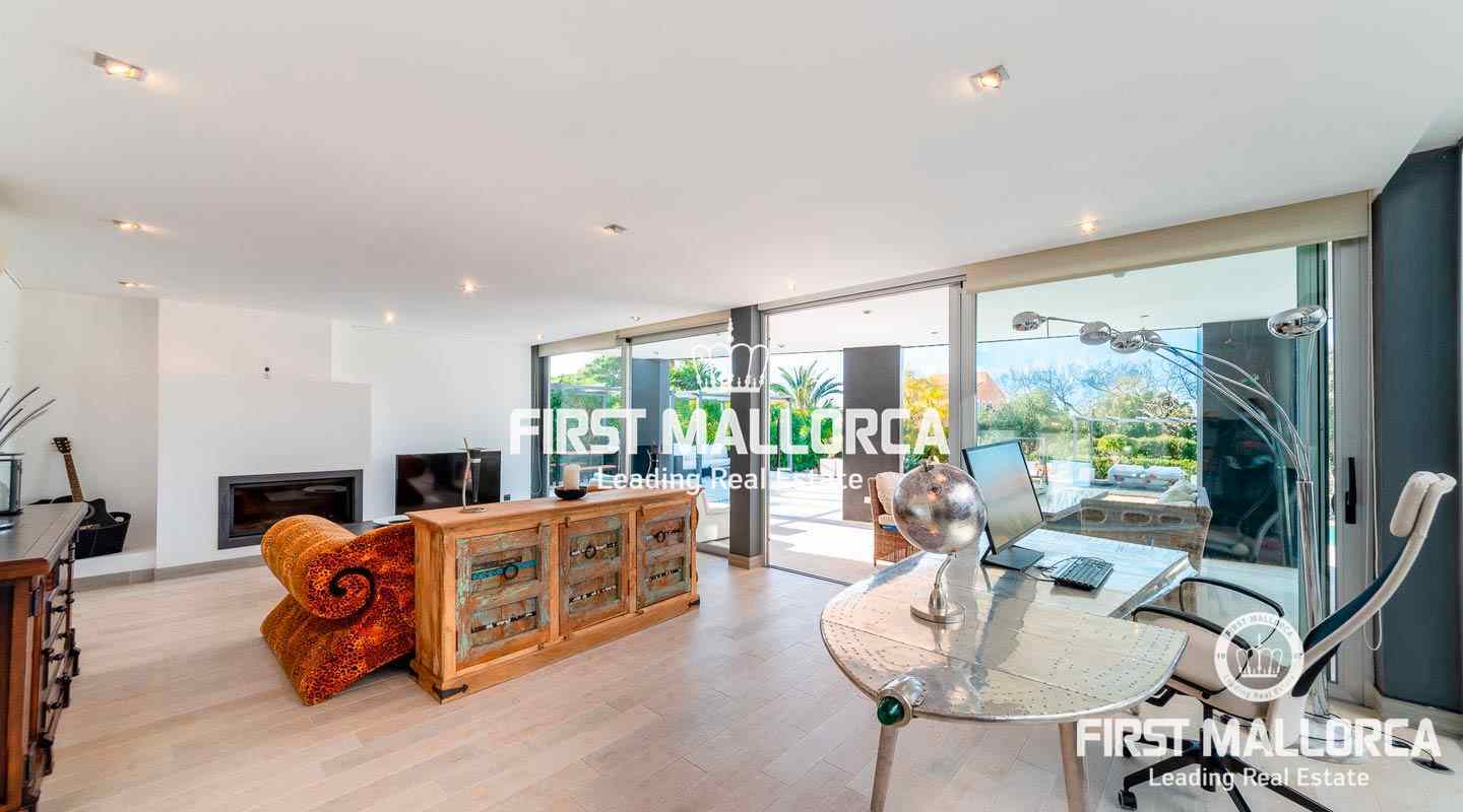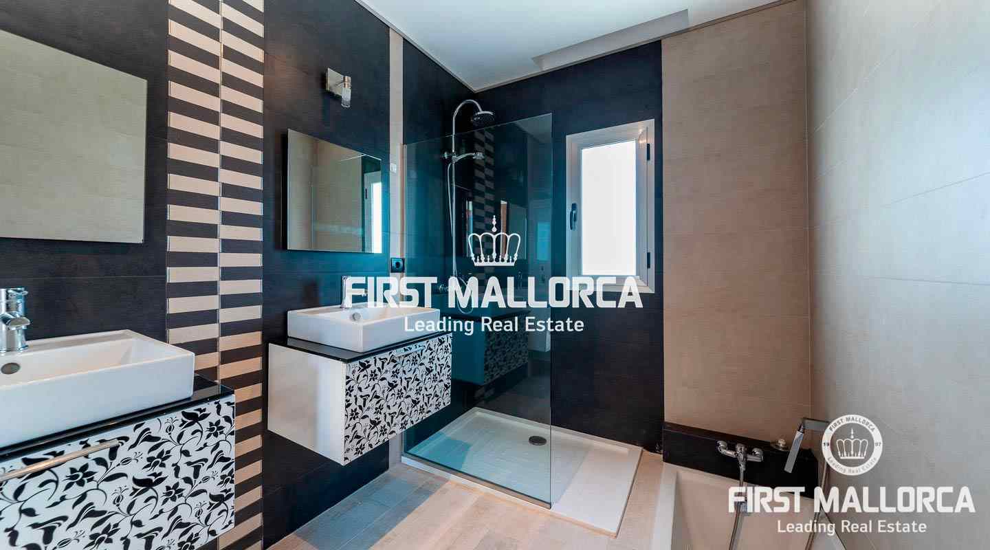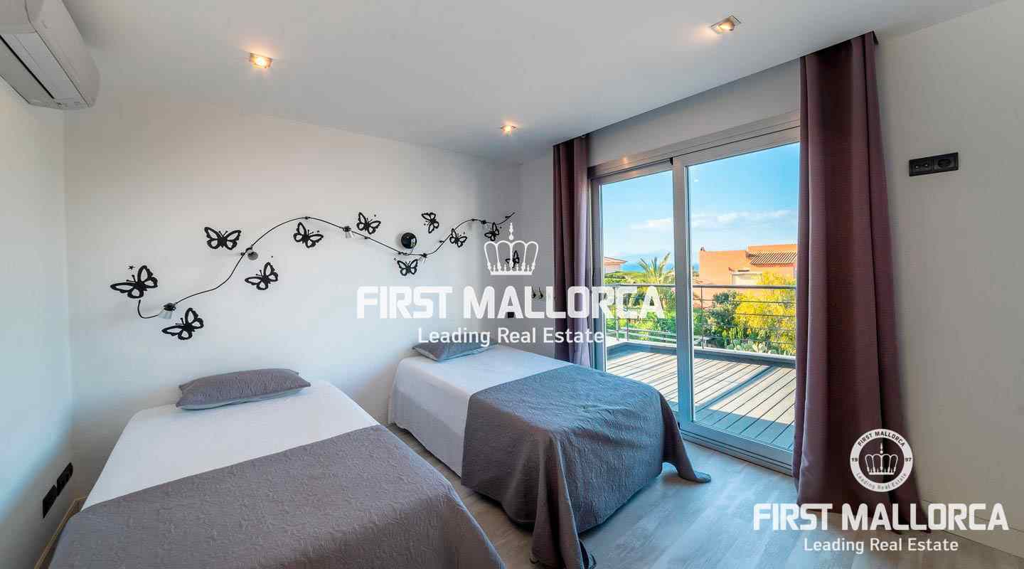 La planta baja consta de un salón abierto, separado del comedor y de la cocina americana por un patio acristalado. Además hay un dormitorio y un baño. La planta superior cuenta con el dormitorio principal con baño en suite y vestidor, otros 2 dormitorios y un baño. Todas las habitaciones tienen acceso a la terraza, que ofrece hermosas vistas panorámicas hasta la bahía de Palma.