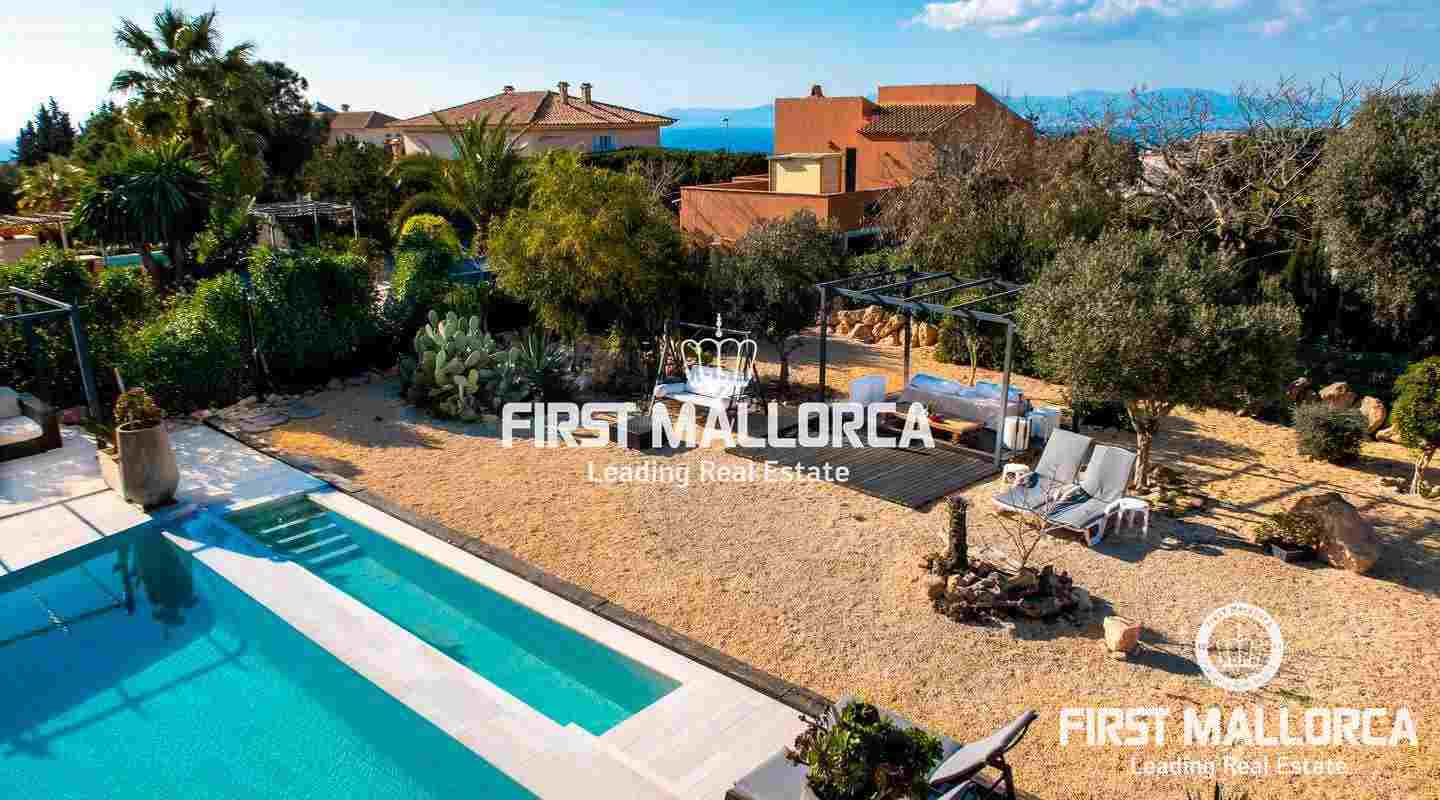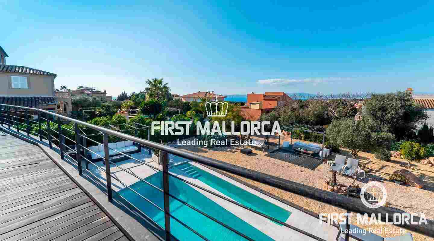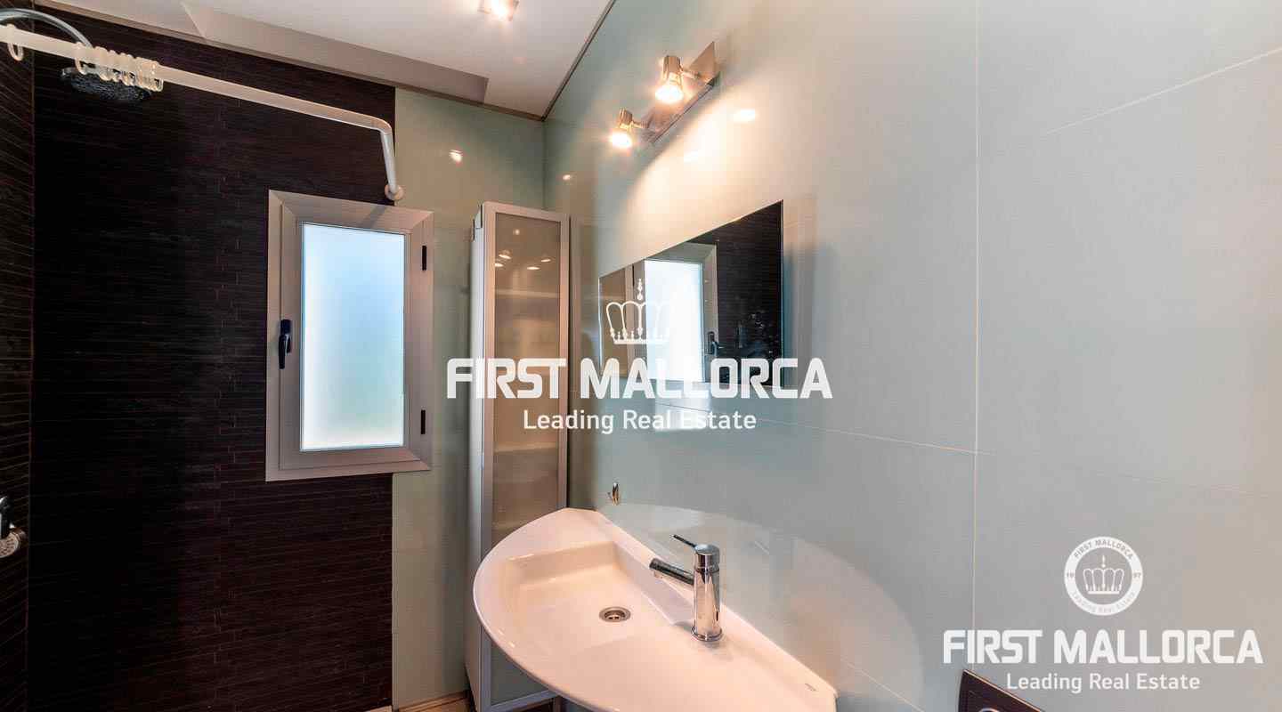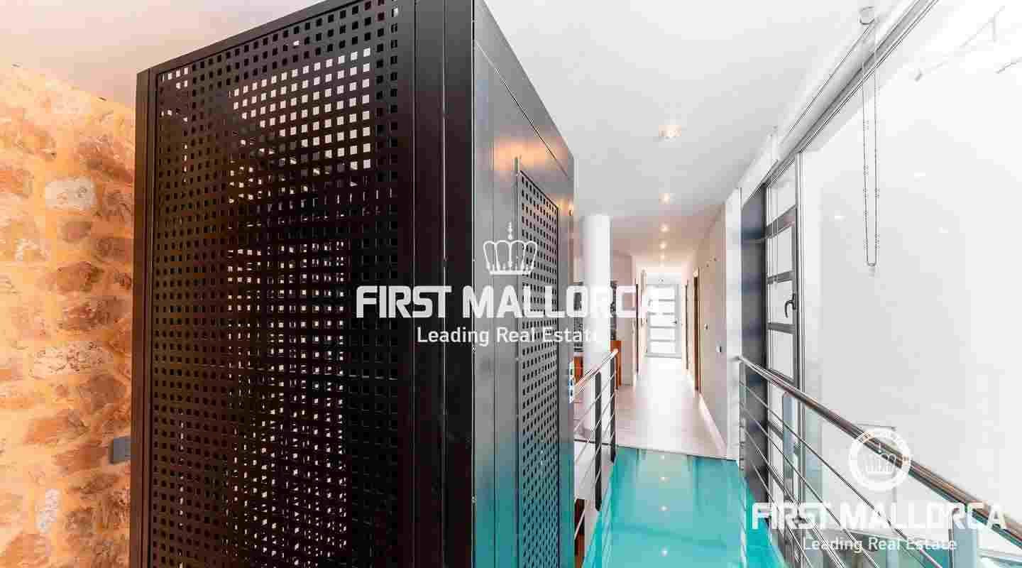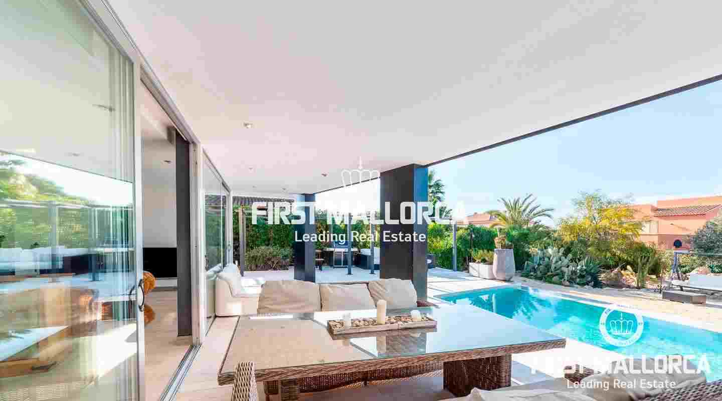 La planta baja consta de un salón abierto, separado del comedor y de la cocina americana por un patio acristalado. Además hay un dormitorio y un baño. La planta superior cuenta con el dormitorio principal con baño en suite y vestidor, otros 2 dormitorios y un baño. Todas las habitaciones tienen acceso a la terraza, que ofrece hermosas vistas panorámicas hasta la bahía de Palma.
