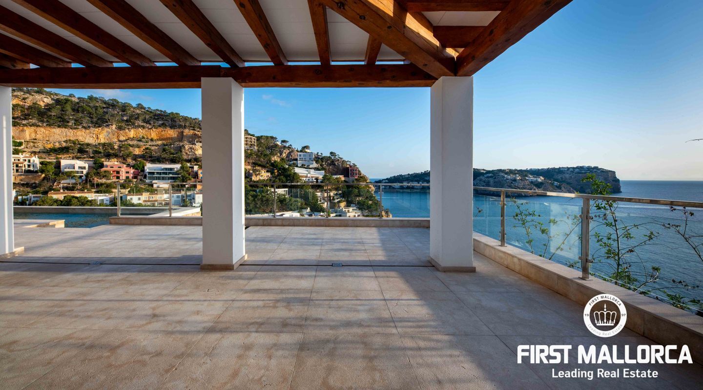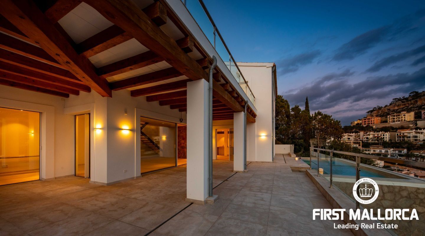 Esta villa de nueva construcción en Puerto de Andratx se encuentra en una ubicación muy privilegiada y tranquila en la Cala Moragues. Gracias a su orientación sur, la propiedad goza de mucho sol durante todo el día y de fantásticas vistas a la entrada del puerto y el mar.