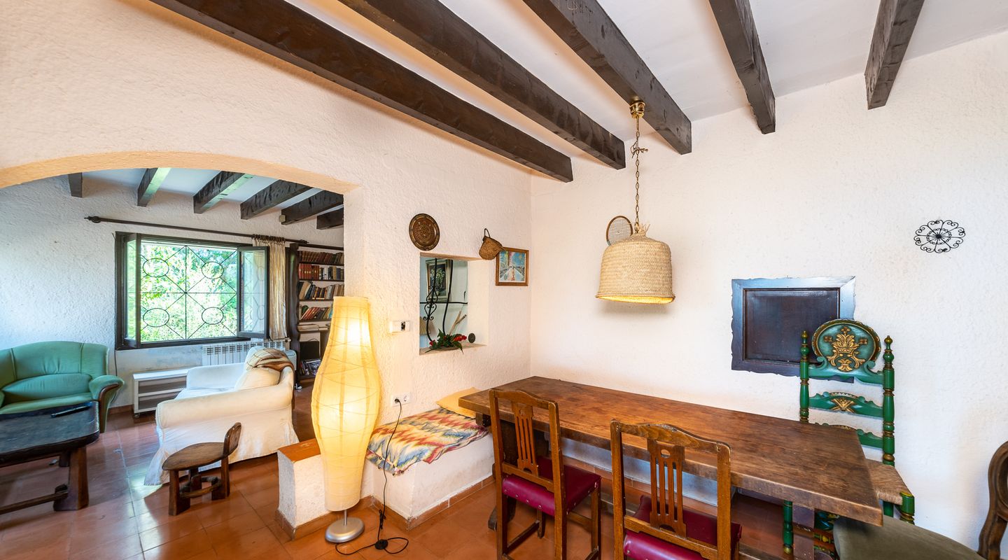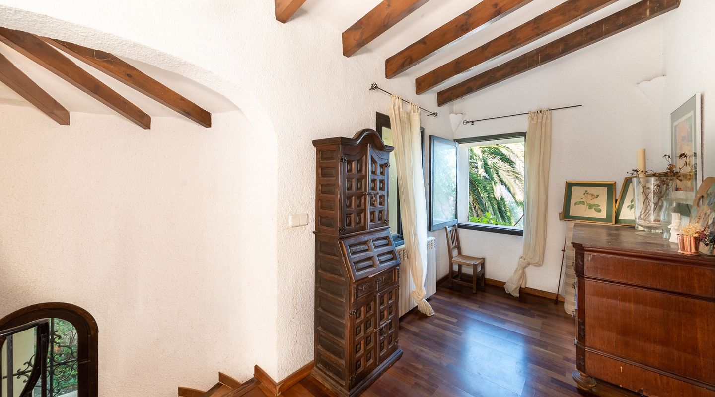 La superficie construida se distribuye, en 2 niveles, en salón con chimenea, comedor con acceso a terraza cubierta, cocina con acceso a terraza en la parte trasera de la casa, aseo de invitados, dormitorio, lavadero y trastero, en planta baja. En la primera planta se encuentra un dormitorio con baño en suite, conectado a otra habitación con chimenea que actualmente se utiliza como estudio, otra habitación con acceso a la terraza con vistas al mar, otro dormitorio y otro baño. La propiedad cuenta con varias terrazas, piscina y jardín natural. La casa está equipada con calefacción central de gasoil y tiene plaza de aparcamiento para tres coches.