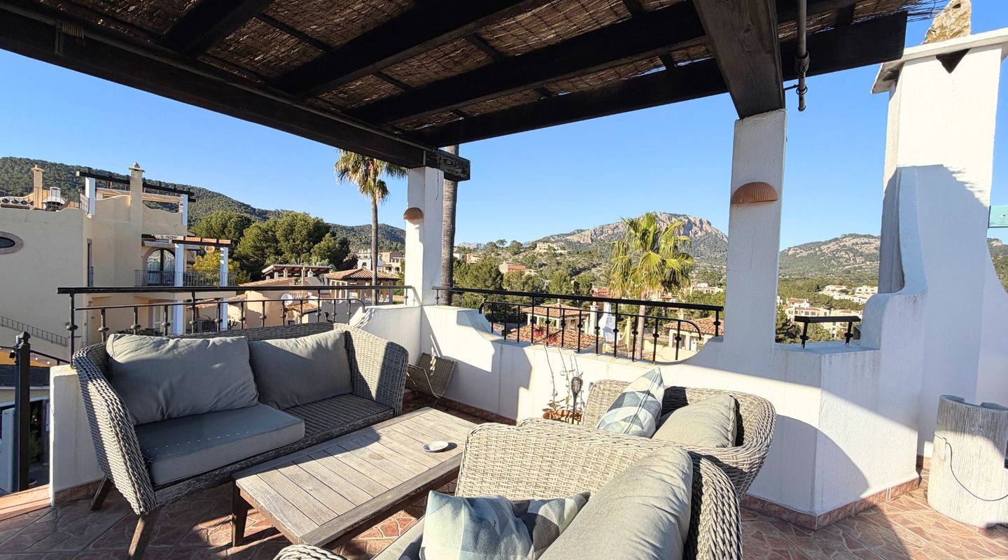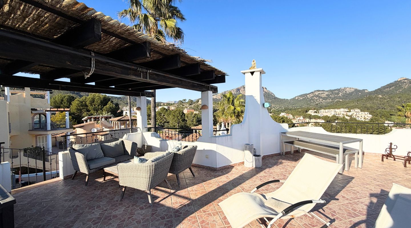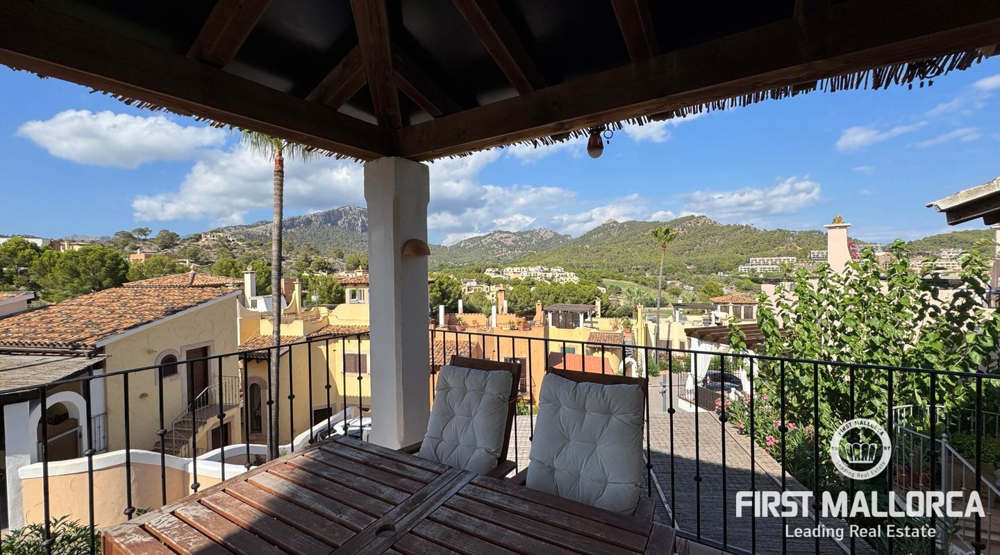 Esta casa de estilo mediterráneo se encuentra en una comunidad pequeña y tranquila justo en el campo de golf de Andratx y a poca distancia de la playa de Camp de Mar. La propiedad fue renovada recientemente con materiales de alta calidad, con elementos mediterráneos y un diseño moderno en una interacción armoniosa.