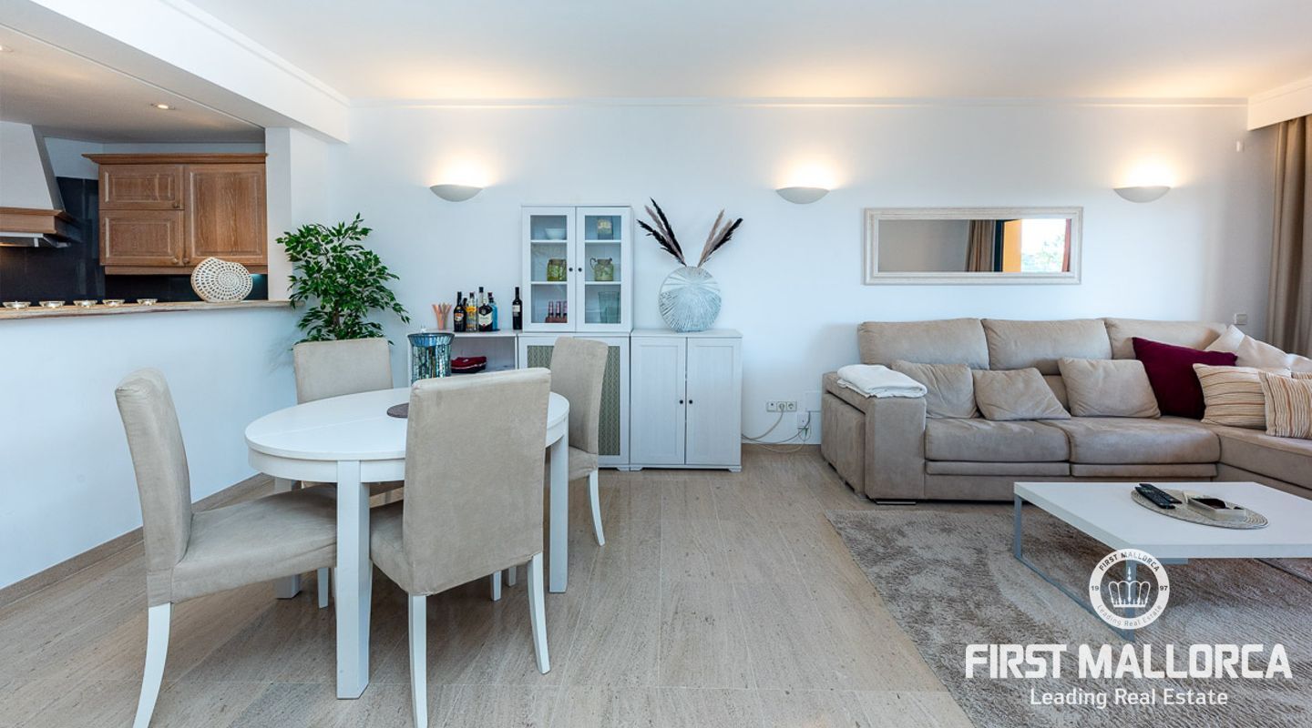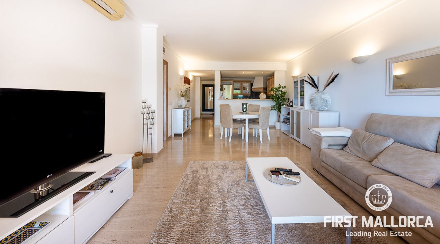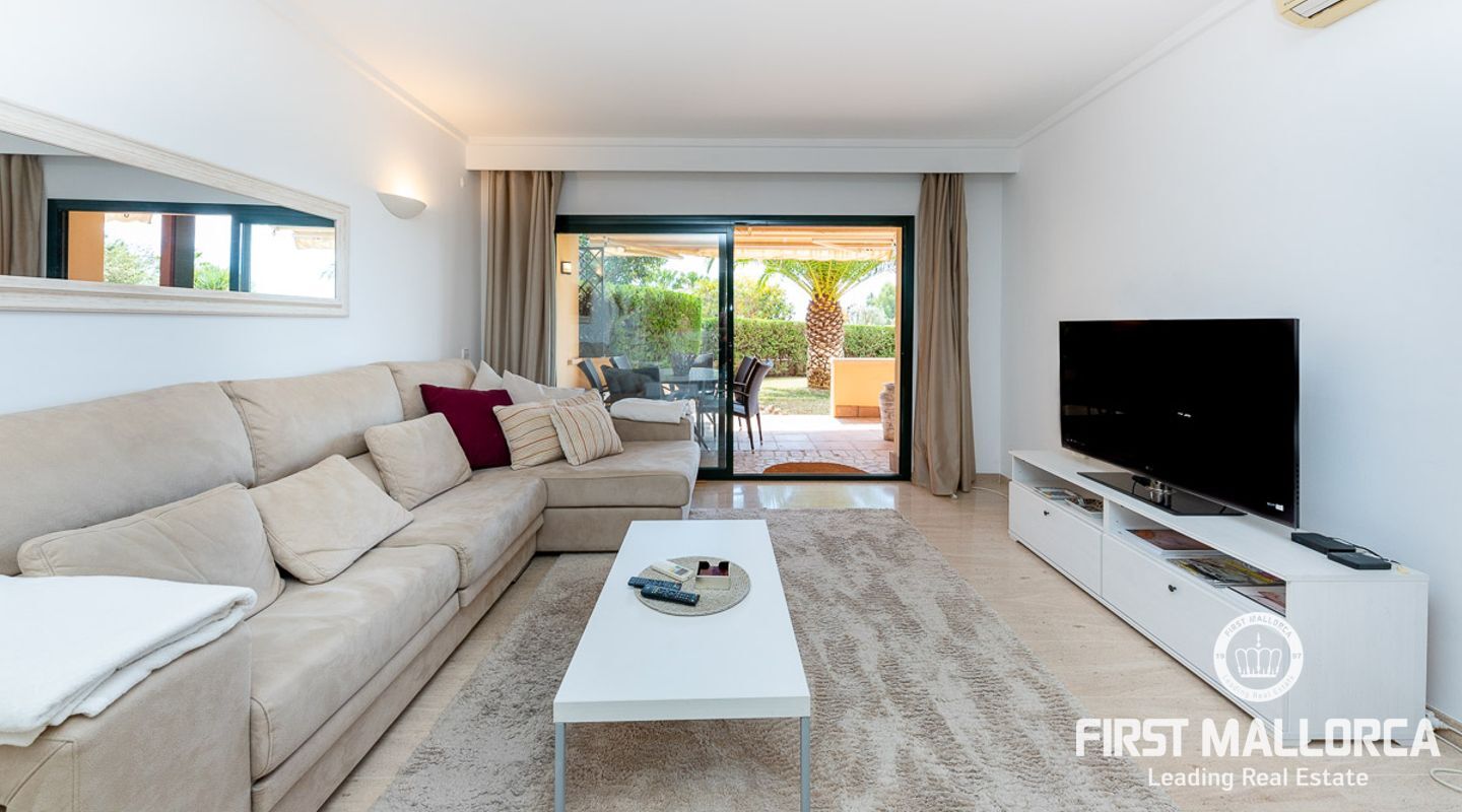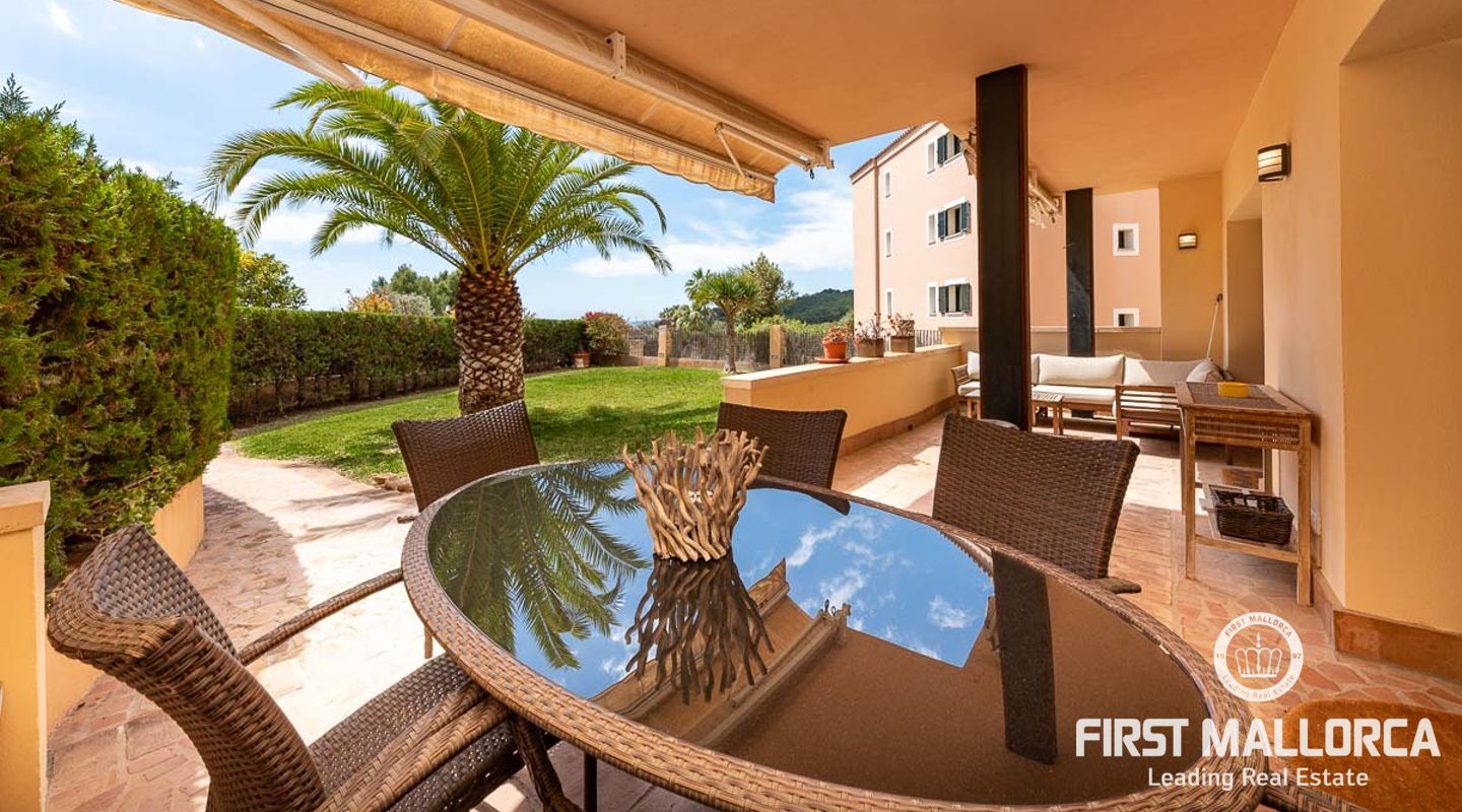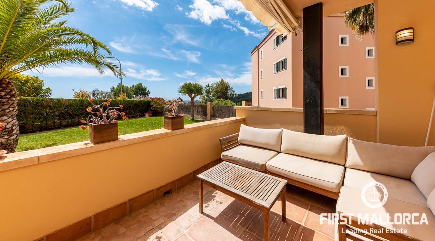 Este elegante apartamento ofrece un soleado jardín privado. Se encuentra en una exclusiva zona comunitaria con piscinas cubiertas y al aire libre y una sauna. La propiedad tiene un plan de piso ideal y tiene una hermosa sala de estar y comedor abierto con una cocina moderna de calidad, que está conectado directamente a la amplia terraza y jardín adyacente. Esto no sólo ofrece una maravillosa vista panorámica, sino también suficiente espacio para una zona de estar al aire libre, que le invita a disfrutar del estilo de vida mediterráneo al aire libre durante todo el año. La propiedad ofrece 2 dormitorios y 2 baños, también hay un lavadero y un aseo de invitados.