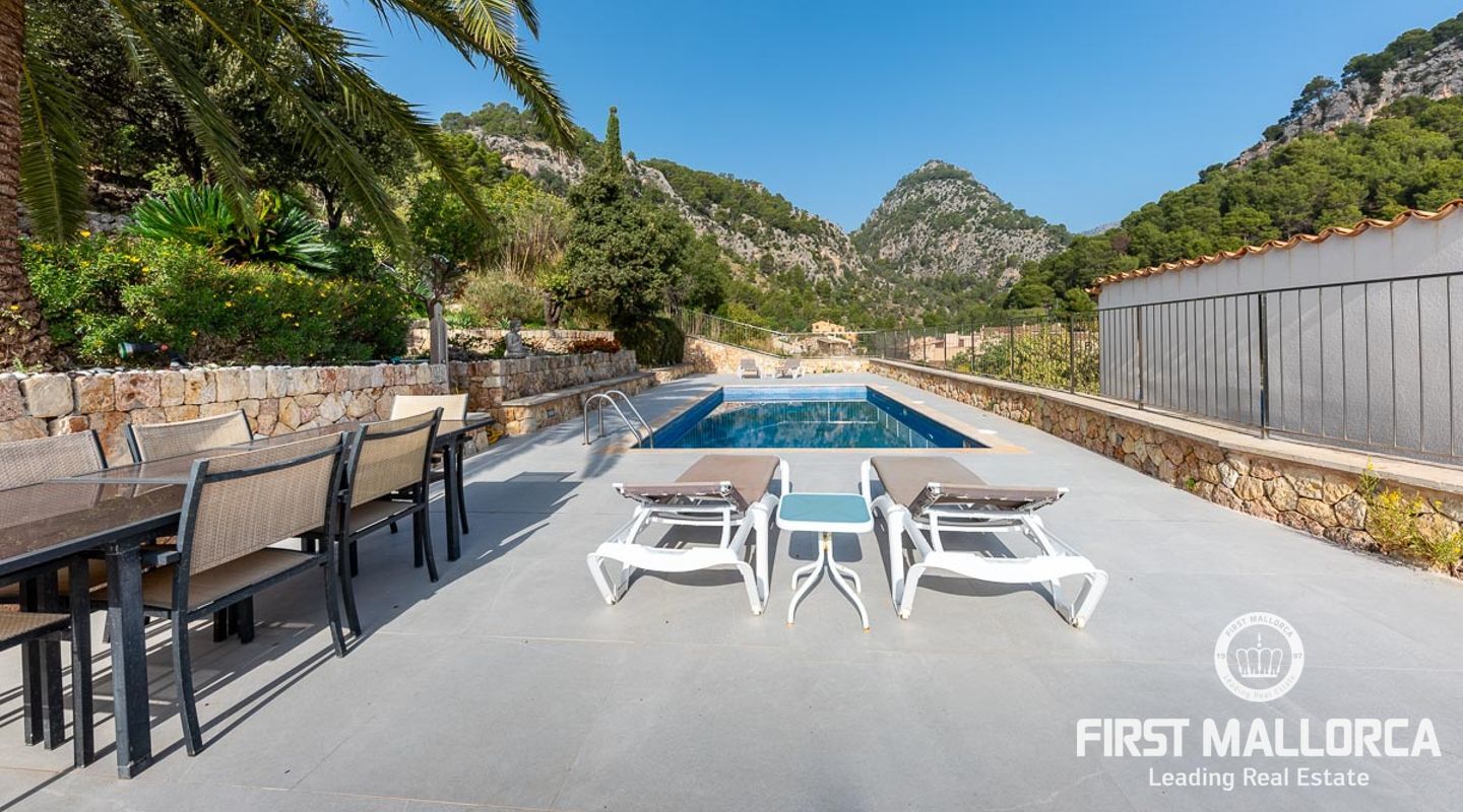 Esta hermosa casa tradicional se encuentra en el pequeño pueblo de Caimari, situado al pie de la sierra de Tramuntana. Reformada en 2008, la casa mantiene un marcado estilo Mallorquín sin por ello perder un ápice de modernidad en su interior y destaca por sus auténticas características originales, como su fachada de piedra. Ubicada en una parcela de 504m2, esta espectacular casa de 387m2 se distribuye en 5 dormitorios (4 dobles) y 3 baños. Se complementa con una cocina italiana totalmente equipada, salón, comedor, despacho, lavadero, trastero y un garaje con capacidad para 2 ó 3 vehículos. El aire acondicionado se encuentra en toda la casa. Lo más destacado de esta atractiva propiedad es su zona exterior que cuenta con una piscina privada y un comedor exterior con zona de barbacoa con vistas panorámicas abiertas a las montañas, proporcionando el escenario ideal para agradables veladas con la familia o los amigos. La propiedad también cuenta con una licencia para el alquiler vacacional lo que crea una excelente oportunidad de inversión. No dude en ponerse en contacto con nuestro equipo de FIRST MALLORCA para obtener más información y una cita para ver la propiedad.