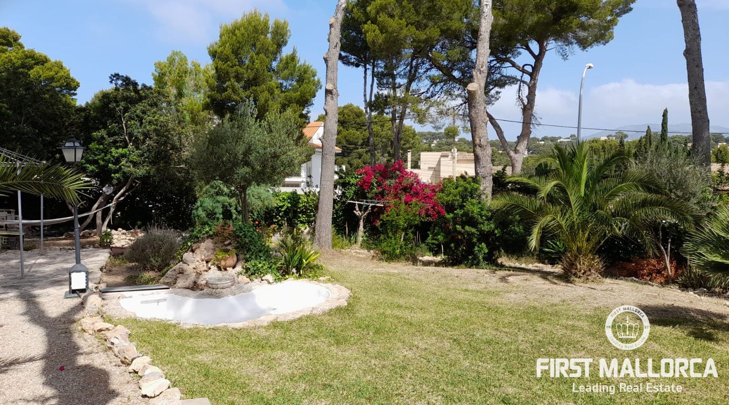 Esta hermosa villa en Santa Ponsa se distribuye en 2 niveles y ofrece 4 dormitorios, 3 baños, un luminoso salón-comedor y cocina moderna. En el exterior hay un amplio jardín con posibilidad de instalar una piscina.