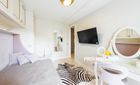 La propiedad consta de 4 dormitorios y 2 baños, el principal es en suite y el cuarto dormitorio tiene una cama individual incorporada en una unidad de pared hecha a mano que se despliega cuando sea necesario. La moderna cocina es de planta abierta con la sala de estar / comedor y muy práctico y los baños son de mármol con excelente mano de obra. Actualmente la terraza tiene protección de seguridad para niños, pero esto se puede quitar fácilmente.