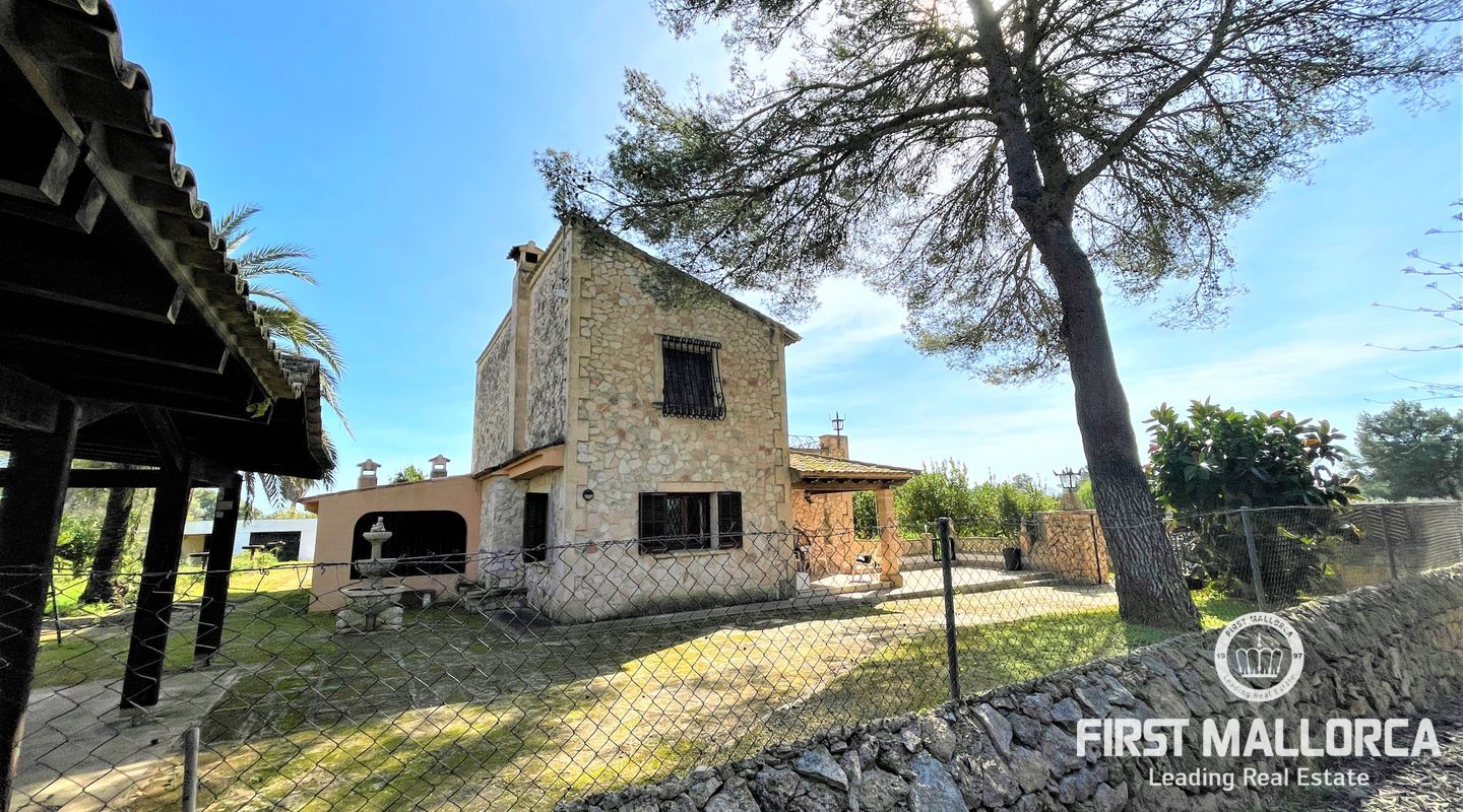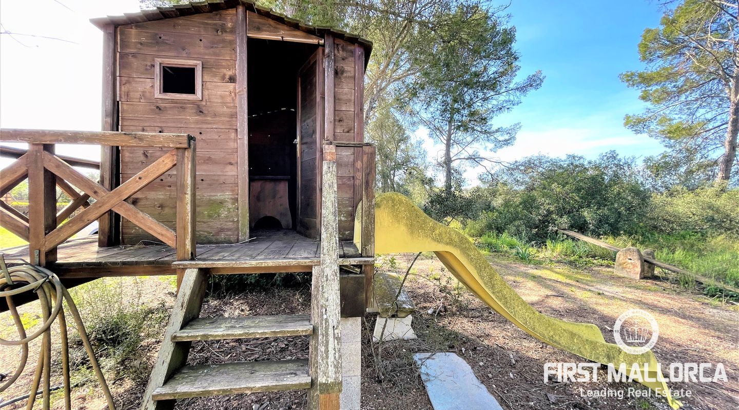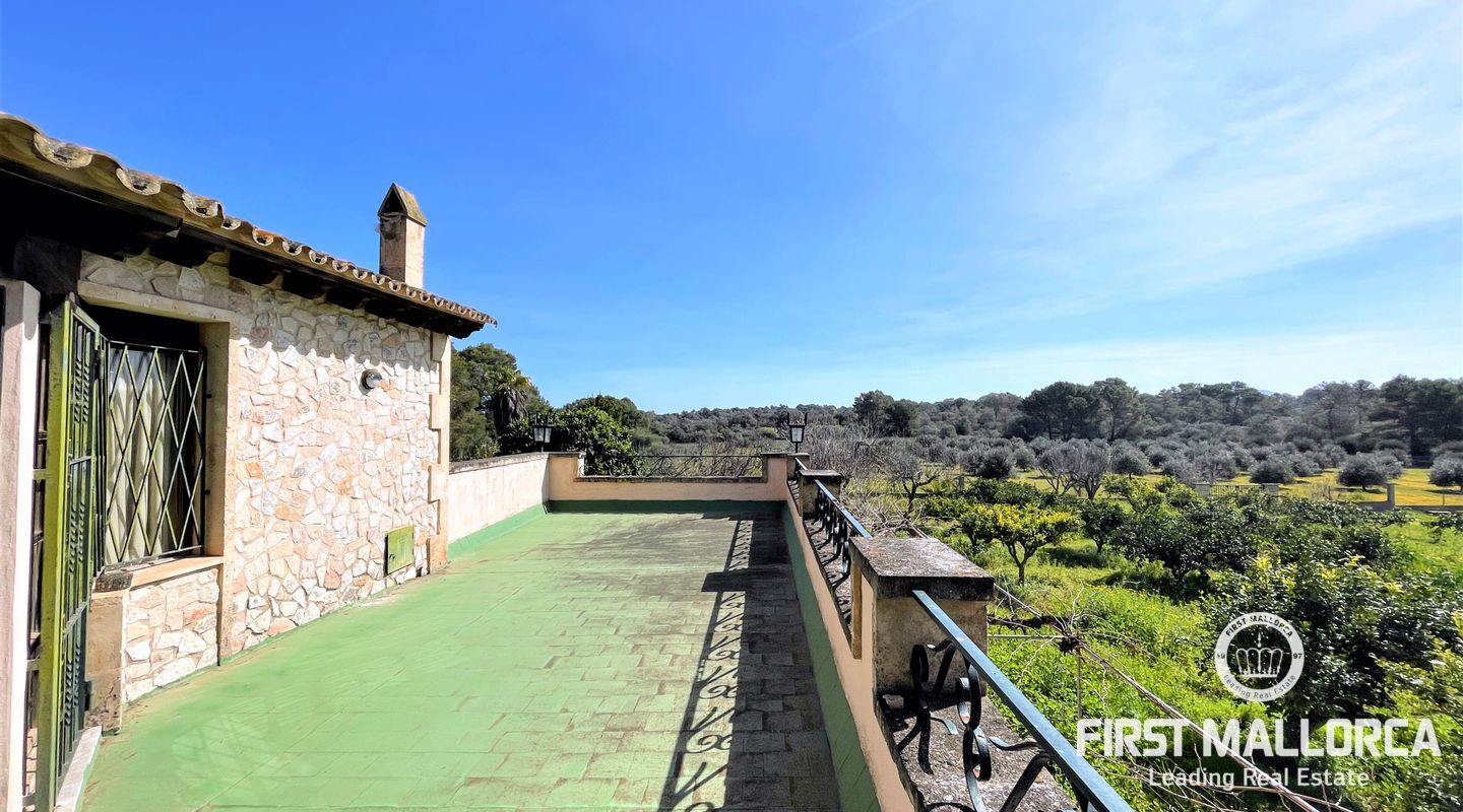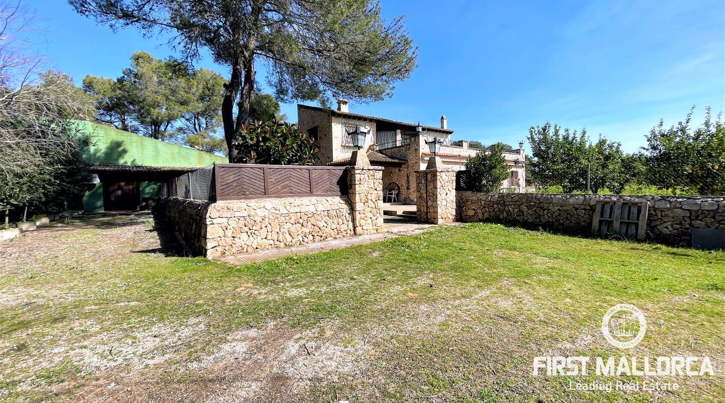 Encantadora finca rústica mallorquina toda forrada de piedra. La casa está situada al final de un camino rodeada de árboles y ofrece paz y tranquilidad. Con una parcela de 60.985m2 y 335m2 construidos, dispone de 4 dormitorios, 2 baños y un aseo (dormitorio principal con baño en suite y acceso a una gran terraza con vistas despejadas a parte de la finca), cocinas, barbacoas. Tiene varias construcciones exteriores aparte de la casa principal, safereig (que se puede utilizar como piscina), frontón, casita de madera para niños y una construcción exterior para animales. El agua se puede recoger del pozo y la electricidad es de Gesa Endesa. La finca tiene varias chimeneas y un amplio trastero. Toda la parcela está vallada con piedra y con varios árboles frutales, entre ellos olivos en producción. Calefacción central de gasoil. A sólo 20 minutos de Palma y cerca del campo de golf de Son Gual. No dude en contactar con FIRST MALLORCA para más información o para concertar una visita. Nuestro equipo está a su disposición en todo momento.