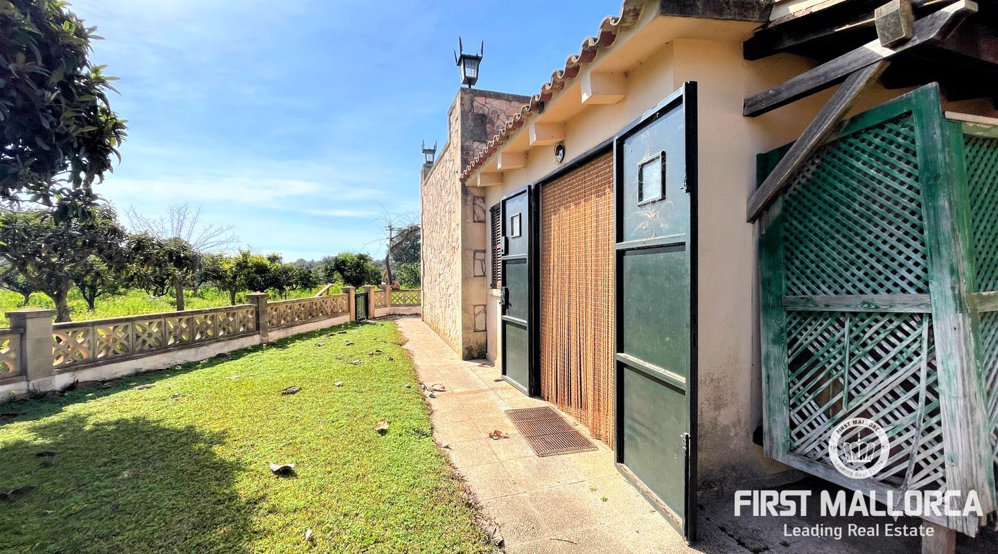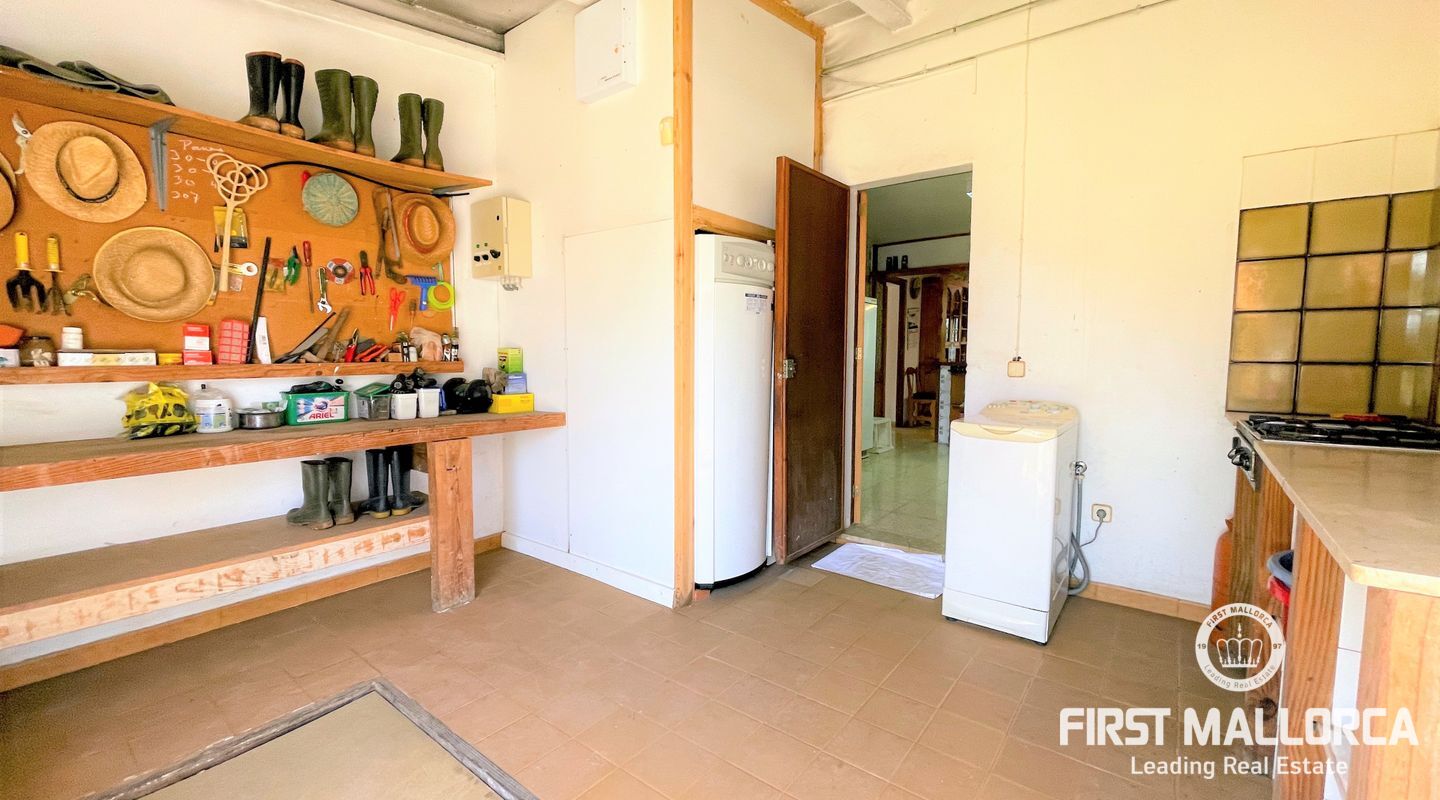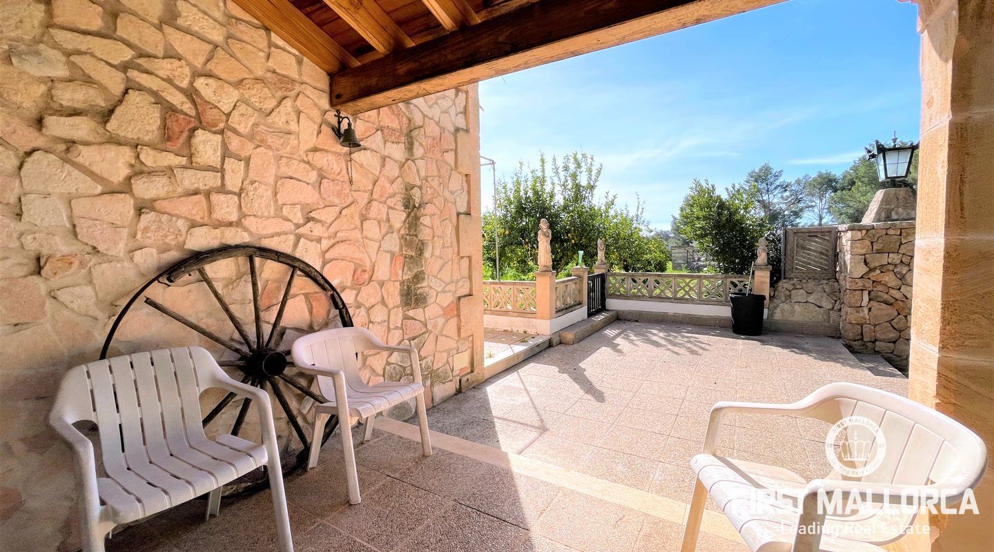 Encantadora finca rústica mallorquina toda forrada de piedra. La casa está situada al final de un camino rodeada de árboles y ofrece paz y tranquilidad. Con una parcela de 60.985m2 y 335m2 construidos, dispone de 4 dormitorios, 2 baños y un aseo (dormitorio principal con baño en suite y acceso a una gran terraza con vistas despejadas a parte de la finca), cocinas, barbacoas. Tiene varias construcciones exteriores aparte de la casa principal, safereig (que se puede utilizar como piscina), frontón, casita de madera para niños y una construcción exterior para animales. El agua se puede recoger del pozo y la electricidad es de Gesa Endesa. La finca tiene varias chimeneas y un amplio trastero. Toda la parcela está vallada con piedra y con varios árboles frutales, entre ellos olivos en producción. Calefacción central de gasoil. A sólo 20 minutos de Palma y cerca del campo de golf de Son Gual. No dude en contactar con FIRST MALLORCA para más información o para concertar una visita. Nuestro equipo está a su disposición en todo momento.