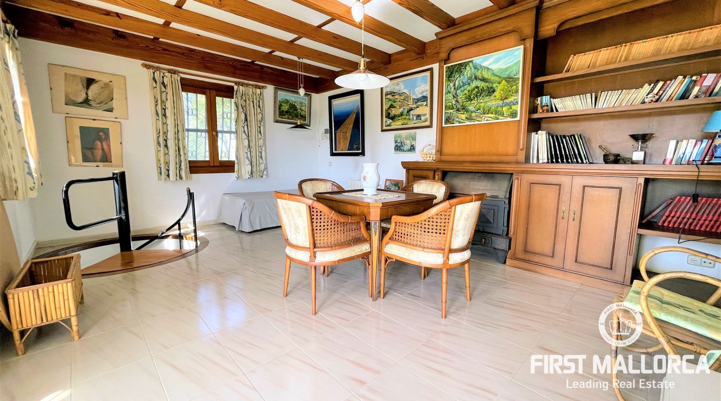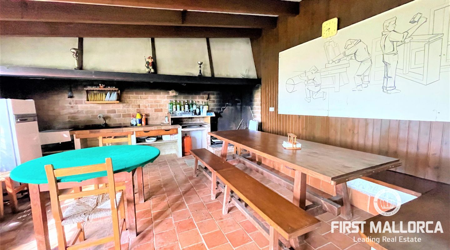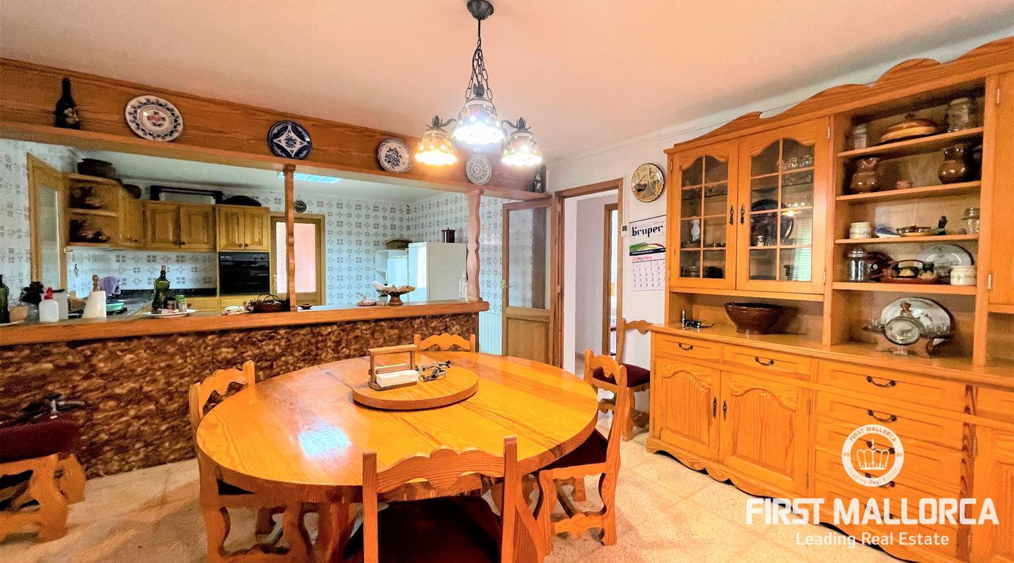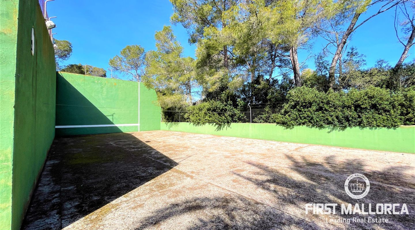 Encantadora finca rústica mallorquina toda forrada de piedra. La casa está situada al final de un camino rodeada de árboles y ofrece paz y tranquilidad. Con una parcela de 60.985m2 y 335m2 construidos, dispone de 4 dormitorios, 2 baños y un aseo (dormitorio principal con baño en suite y acceso a una gran terraza con vistas despejadas a parte de la finca), cocinas, barbacoas. Tiene varias construcciones exteriores aparte de la casa principal, safereig (que se puede utilizar como piscina), frontón, casita de madera para niños y una construcción exterior para animales. El agua se puede recoger del pozo y la electricidad es de Gesa Endesa. La finca tiene varias chimeneas y un amplio trastero. Toda la parcela está vallada con piedra y con varios árboles frutales, entre ellos olivos en producción. Calefacción central de gasoil. A sólo 20 minutos de Palma y cerca del campo de golf de Son Gual. No dude en contactar con FIRST MALLORCA para más información o para concertar una visita. Nuestro equipo está a su disposición en todo momento.