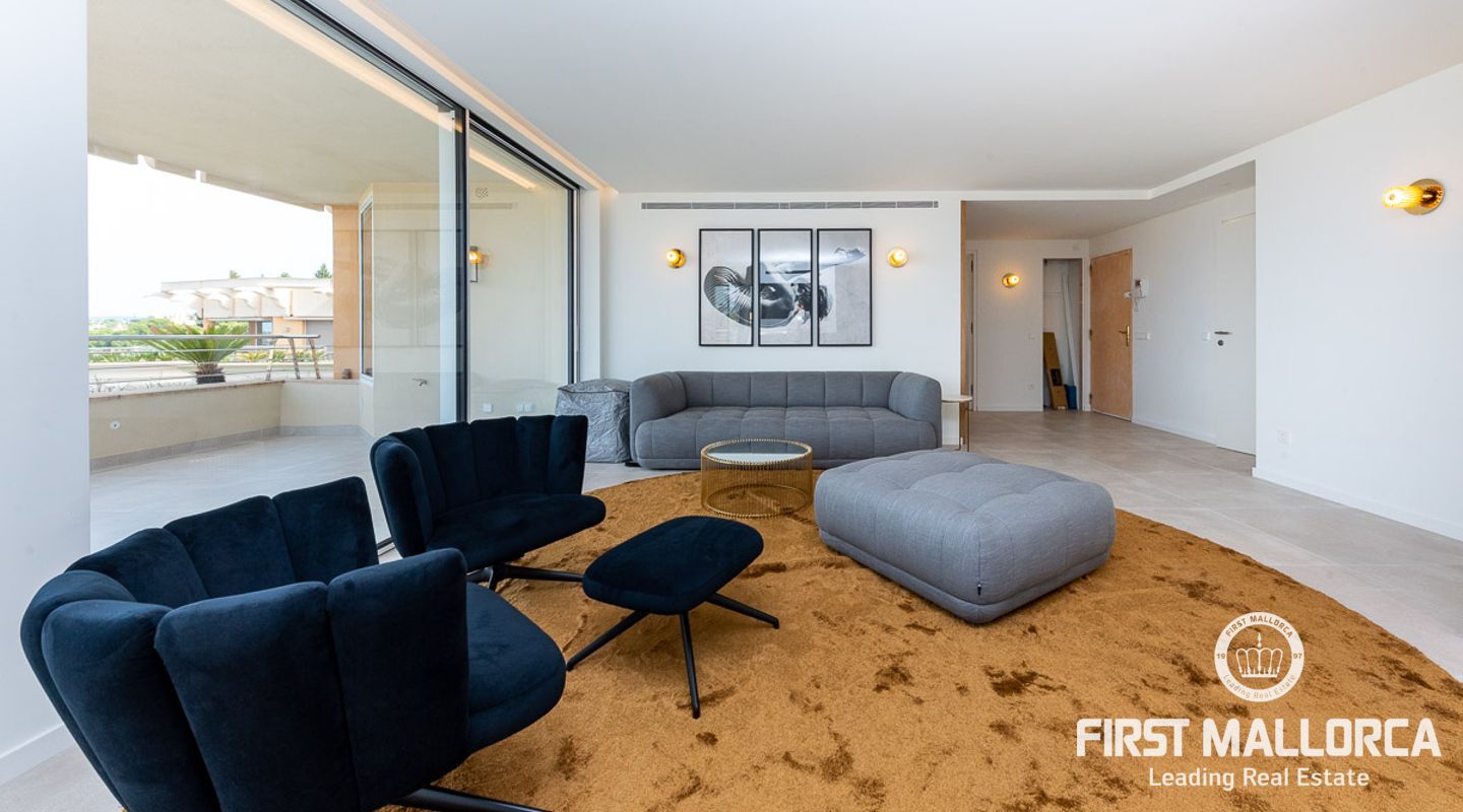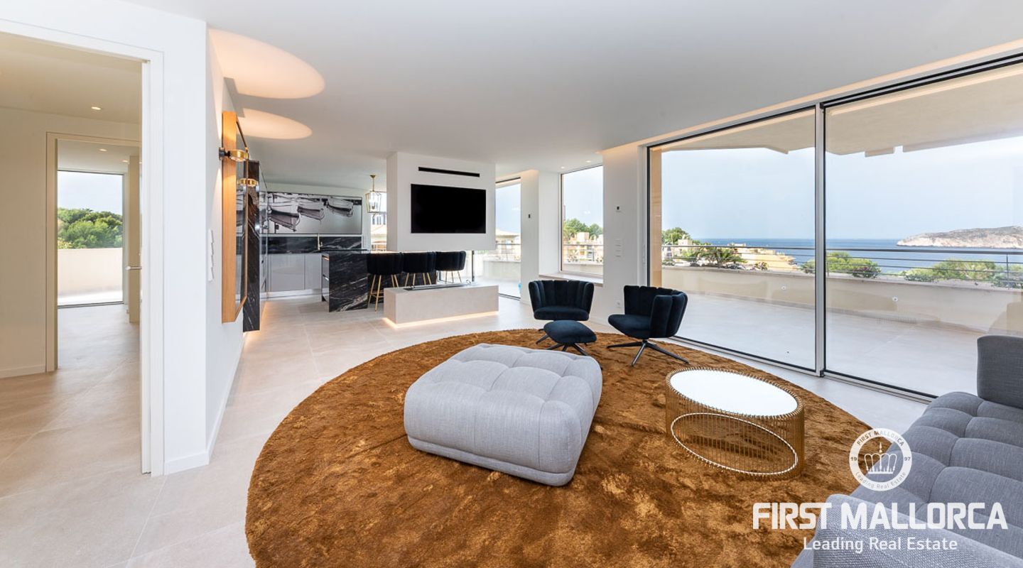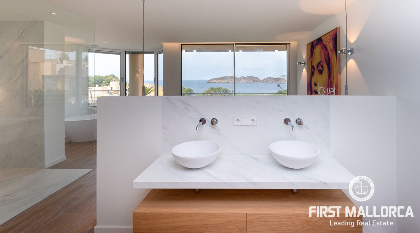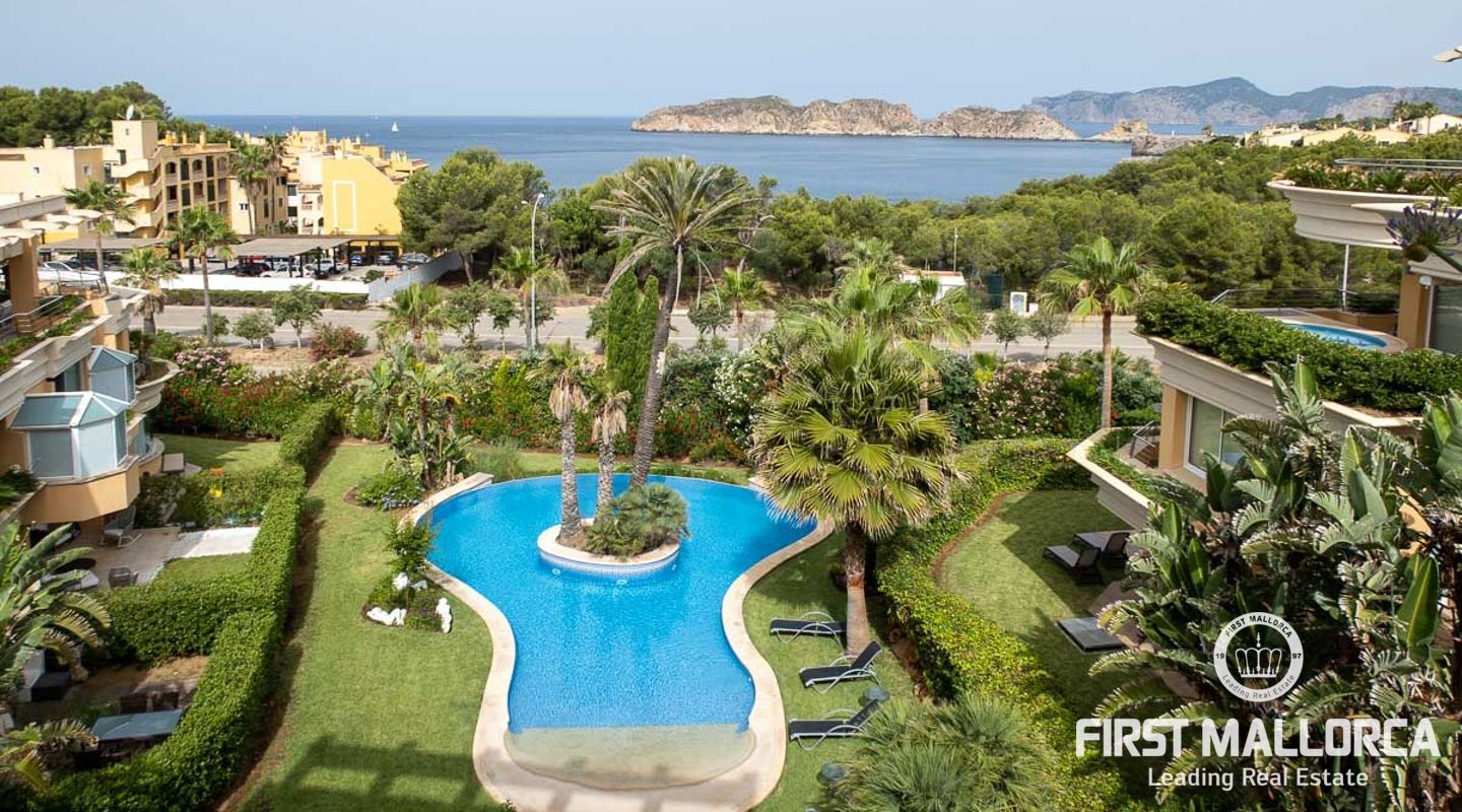 Este ático de alta calidad, llave en mano, idealmente situado en una comunidad cerrada, ofrece fantásticas vistas panorámicas de 180 grados sobre las islas Malgrat y el mar Mediterráneo. El salón-comedor abierto tiene una gran terraza cubierta, perfecta para comer al aire libre durante todo el año. La cocina abierta de alta calidad tiene una terraza adyacente orientada al este y está equipada con electrodomésticos de alta gama. La cocina abierta sólo está dividida por una parte de una chimenea de bioetanol abierta. La distribución de 157m2 consta de un total de tres dormitorios y dos baños. La suite principal con vistas al mar ofrece un vestidor y un amplio y moderno cuarto de baño. Un punto culminante especial de la propiedad es la gran terraza en la azotea de 144 m2 con una piscina privada de 30m2, una cocina de verano, zona de comedor y una zona chill out con chimenea. Hay dos plazas de aparcamiento subterráneo, que vienen con la propiedad. Calefacción por suelo radiante, aire acondicionado, lavadero independiente, totalmente amueblado.