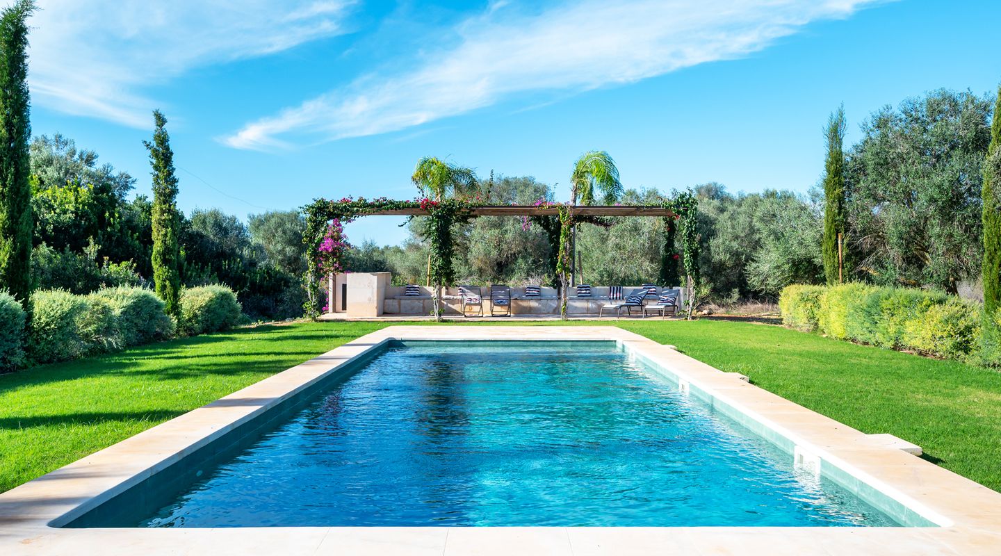 Por supuesto, cuenta con varias zonas de terraza y una piscina de acuerdo con las normas de construcción antiguas y, por tanto, de un tamaño excelente. Los dormitorios tienen sus propias terrazas y ofrecen magníficas vistas de Cabrera y del campo.